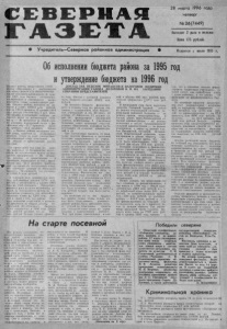 С Е В Е Р Н А Я • У чр ед и тел ь— С е в е р н а я р а й о н н а я адм и ни с трац и я 2 8 м а р т а 1 9 9 6 г о д а “ч е т в е р г № 2 6 ( 7 4 4 9 ) Выходит 2 раза в неделю Цена 175 рублей. Издается с июля 1935 г. 06 исполнении бюджета района за 1995 и утверждение бюджета на 1996 год Д О К Л А Д З А В . О Т Д Е Л О М Ф И Н А Н С О В И Н А Л О Г О В О Й П О Л И Т И К И А Д М И Н И С Т Р А Ц И И Р А Й О Н А Д О Л О Т О В О И В. В Н А З А С Е Д А Н И И С О Б Р А Н И Я П Р Е Д С Т А В И Т Е Л Е Й . Бю дж ет района представляет собой ф о р м у обр азо вания и р асходования д н н е и к н е ц е и ж 1 й н 9 ы 9 и 5 с х по с г р л о е н д д а и с т т е б в л ю ь д д н л ж о я е й т о в б л е а с с с п т о е и с ч т . е а н В в и л я я т л ф е с ч у я е п оквар тально и у т в е р ж д а л с я р он яж а. ен Б и ю е д м ж е г т ла р в а ый о а н д а ми ис н п и о с л т н р е а н ци п и о р а р с а д п й о о ходам в с у м м е 4 9 7 6 , 8 млн. р у б л е й , - или на 1 4 5 ,2 про цен та . К уровню 199 4 года доходы у в е л и ч и л и с ь в 2 , 4 рала. О с н о в ны м и источниками доходов л м я о юст т ь с я — ; - н а 4 л 0 о г пр н о а це д н о т б ов авл (. е в н о н б у щю ей с с т у о я ми в з м и е ч е д с о к х и о х д о л в и ) ц , —по 3 д 1 о . х 7 од п н р ыоц й ен н т а а л , ог н с а фло и г на прибыль — 16,2 процента . К р о м е н то ой го, д о в х б о юд , джп л е т а т е р жай и он з а а по с п т о у л п ь а з ю о т в а л н е и с е н е д р а м и , п л а т а за в о д у , го спошлина , лицензионный сб о р , земел ьны й лог . доходы от привати заци и , проч н и а е пл атеж и . З а прошедший год плац по д нщ а и е м к с о т в в в , ы о п за о п л р и н е с д е к н п л р юп и о ч я е т н б и о и й л е . ь м ш — н и а н 9 л с 6 о т г в а у п н р и а о с д и т ц о о м е х ч н у о . тов, д оходов от приватизации — 9 п че р с о к ц и е х нт л о и в ц , по - 9 до 1 х , 5 одн п о р г о о це н н а т л а о . га Н с аи ф б и о з л и ь - шже и т Я 1 з у а д н е и л м ьн а ыю й т в д е о с та п ц о и с и туп и л з ен о и бл й ас в т б н юог д о б ет ю В д 1 ж6 т е 6 е т 8 к а 5 у - , щ 5 е 7 м м2 л п н г р о . д о р у ц у е б н п л т л е а а й , н . и ч р т у о ет с с о я с т п а в ол л у я чнть соб с т в е н ны х до хо до в 5 1 7 9 м л н . р у бл е й , с ув е ли ч е н и ем к у ровню 199 5 года н а 1 9 , 8 про цен та . х б р о а и д в в о л а в е е , н тс н з я у а ю р и о с с с к т т л о юи п м о че о в н с с т и е ь е м , м г и д н с е а т л о п о П ч р г н р а о и е и к д н з а у о а м с й м д д а д е о т т о сниж е н и е п л а н а на 1294 м л н . лей в с в я зи с тем, что району р у б влен но рм а т и в отчислений в р а з м о с е т р а е 25 процентов от общ его о б ъ е м а по- ' с ту п л еня й . И з областного бю джет а будет н а пр а вл ено в 1996 году 2 3 6 2 3 млн, р у б л е й дотации , что на 6 9 3 7 млн, р у бл е й больше уровня п рош ло - го года. В м е с т е с до тацией доходная часть бю д ж е т а со ст а ви т 2 8 8 0 2 млн. р у б л е й . И з местн о го бю д ж е т а ф и н а н с и р у . ются в течение г о да все р а с х о д ы , свя з н а ы н х нь у ге чр с еж с д о е д н е и р й ж . а н А и е э м то в 2 с 8 е х ш б к ю о д л ж , е 2 т 5 д к о л в у . б о 1 в 6 . 17 ф б е и л б ь л д и ш о е т р е е к , ко 15 - д а е к т у с шки е р х с к с и а х пунктов, райбол ьниц а , 4 у ч а ст к овы х р б о о д л н ьн ог и о цы о , б р о а т з д о е в л ан к и у и л , ь п т о у жр ыа р , н а о я тд ч ел ас н т а ь , вц е и т й П с р т и а и н дц с ри о . с я т , а в 1 л 2 е с н е и л и ь с б к ю и х дже а т д а м и п н о и к ст в р а а р талам отделом фи н а н с ов и налоговой д п д в е о а с н т л ю в и и щ а т й х и и к х с н м и а е п т о з р ыт а а р п з е р в р б а и а н ш с т о х и и с о е т в д и а о о ю в т т в , р с а я д с п л е р о н е е т й е д ж . у н с Н у ым ч о а х р т п е с р р ж р и и е з л а е щни и и т е н б амю дж го е в т о а р я в т , об ч л то ас