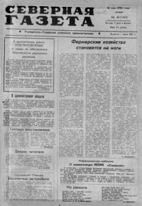 С ЕВ ЕР НА Я I ' Д З Е Т А У ч р е д и т е л ь — С е в е р н а я р а й о н н а я а д м и н и с т р а ц и я 16 мая 1996 года четверг № 4 0 ( 7 4 6 3 ) Выходит 2 раза в неделю Цена 175 рублей. И здается с июля 1935 г . В администрации района ПОСТАНОВЛЕНИЕ о мерах по обеспечению безопасности дорож н о го движения В ц е л я х о б е с п е ч е н и й безо п а сн о с т и Дорожного двнжез ео а Р^ ТОрИИ <^е* е р , л Г0 Рай о н а со гл асно ст. 2 3 Фе д е р а л ь н о г о З а к о н а Р Ф «О безо п а сн о с т и лоппжнпг« ж енн я» о т ¡ 1 5 .1 1 .9 6 г о д а № 1 9 6 -Ф з Г Дорожного двн- , п! ' р у к о в о д и т е л я м п р е д п р и я т и й и орг ан и зац ий всех форм со б ств енности о р г ан и зо в а т ь о б я з а т е л ь н о е п рове се н с п о р ^ ы Г с ^ Т т в . МеДЯЦЯНСК« х водителей тр а2. Н а ч а л ь н и к у Северного Р О В Д М а к а р о в у А М ин сп ек тору Р Г И по Северному району Черном у Ю И обе ™ ^ е Г " ,Р0ЛЬ ” "°мо“ й 3. 11 с л у ч а е н е вы п о л н ен ия н а с т о я щ е г о по стан о вл ен ия п р е д с т а в и т е л я м и ГАИ совместно с Р Т И п р ин им ать с " : ответе гоующне меры, вплоть д о л иш ен и я л иц ензи й и - право п е р е в о з к и г р у з о в и п ассажиров . 4. К о н т р о л ь ¡за и сп о л не ни ем п о с т ан о в л ен и я в о з л о ж и т ь на з а м е с т и т е л я г л а вы а д м и н ис тр ац ии М а л я р е в н ч а Г Д г З Ы Р Я Н О В . ^ _..___________ ____ г л а в а а дминистрации. В администрации области ^ ч и щ н ы х п р о г р а м м и ихЛ1р е ^ Ц ш ° Н лацни и н в е с т и ц и й г л а в а а д м и н и с т р ац и и обла сти и о К К > л инициативу (промышленных предпри яти й , м э р и и Н овосибирс ка о со зд ан и и новосибирской областной неком м ер ч еск о й о р г а н и зации «С нои рскии жи л ищ ны й сою з» . р * * * Чтобы с о х р а н и т ь л е с а о т огня н з ащ и т и т ь их от б о ле зн и и X “ ' пГЛаВа адм и и нс тр ац ии о б ла сти Виталий Петрович . 1у. а у т в е р д и л ком п л е к сн ы й план ‘мер о пр и яти й и с о с тав о б ластной м е ж в ед ом ств ен н о й комиссии по борьбе с лесн ы м и по- ЖариМИ, Н овоси бирс кому упр авл ен ию л е с а м и поручено п р ин я ть ме ры по св о е в р ем ен н о й подготовке имеющихс я наземных и а в и ационных с р е д с т в об н а р уж ен и я очагов в о з го р ан ия с р е дс т в связи и тушени я лесных п ож ар о в . Д л я этих целей г у б ер н ато р выделил у п р а в л ению сс уду в сум м е 1 5 0 миллионов р у б л е й . ' Теплица восстановлена В п р о ш л ы е годы теплица С ев ерной с р е д н ей ш к о лы сн а б ж а л а р а с с а д о й цветов и овощей многих ж и т е л ей с е л а . Но н ы н еш н я я зи м а о к а з а л а с ь не- благоп л у ч н о й : вышло из строя о т о п л ен ие , и тольк о к поздней в есне с помощью рай- к ом хоза с и с т е м а отоп лен ия бы л а в о сстано в л ен а . И с р а з у же к теп л и ц е ожи вил ас ь работа. П реподав атели Н. М. Д ен исю к и Г. М. С м е л о в а со своими питомцами посея ли с к о р о с п е л ы е с о р т а помидоров и ц в е тов. т а к что с е в е р я н е могут н а д е я т ь с я в ма е-июне приоб рес ти з д е с ь д л я своих к л у м б п одросшую р а с с а д у ц ве то в С. С ЕМ ЕНО ВА . Вопрос читателя Па как >м основании ж и т е л и с е л а С еверного, да н а в е рное. н всего рай он а , были лиш ены празд но в ан и я само | о с и е м о г о и радостного п р а з д н и к а — ] Мая? Эту дату Г " ' ! ; : ,;™т^ н я л - !,‘н м е ж д у н а р о д н ы й п р азд ни к ми- ра и т р у д а . Но все!г Р осси и его о тм е тил и , в том числе и я Н ч зо си б ир с к е , а .мы о с т а л и с ь в тени. Почему? Пусть нам о т в е т я т р у к о в о д с т в о с е л а или района. В ет е р а н войны и т р у д а В. Л. Ю Р Ь Е В Спрашивали? Отвечаем Бесплатные автомобили Н а одном и з 