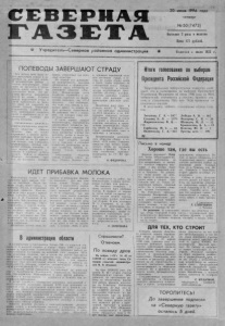 С Е В Е Р Н А Я Г А З Е Т А 20 июня 1996 года четверг № 5 0 ( 7 4 7 3 ) Выходит 2 раза в неделю Цена 175 рублей. Ф У ч р е д и т е л ь — С е в е р н а я р а й о н н а я а д м и н и с т р а ц и я # Издается с июля 1935 г. ПОЛЕВОДЫ З А В Е Р Ш А Ю Т СТРАДУ В с я до лгая зима бы ла по- Ьдготовятельным этапом к эк- | з д м е й а м на весенних до л ях . И механизаторы района с Р честью выдерживают исиы- ттание на прочность и лреда- -нность земле: несмотря на ¡ р з о а к п и о м зда флу р юонт в о е м сну , раз о в н е и рнуш л и и работу на пашне. Ра зры в а м е ж д у подготовкой почвы и севом практически не было, ; что ср а з у ж е ск аз а ло сь на т е м п а х страды. Полеводам -б л о о л с ь ь ш ми н ак с т си в а мал х ь о н з о яй с с о т к в рат у и д т а ь т с и р м о а к л и ь ни ы п м р , ибли о з с и о т б ь ен ин х о к д о л п я ' п о с е в а пшеницы, . р се н в о О н г р о у г ю ан з о и е б з м щ о л в е е а с д н т е н в л а о ьц п ы ро а « в к З е ц а л и в и о ет н п ы е о И л ь и ч а » . Они не только щсп е р н а и в я ил з и е с р ь но с вы п х ла к н у о л м ьту р р а , зм н е о и те» по б с о е л ял ьши е и , х че н м а 2 со 5 би п р р а о л ц и е с н ь пш е н р и в е о » на г ч е а к л т ь а н р о ы О п с ше е н н ь ию цы « л и и овса вполне пригодятся х > вяйст ву л с о с л у ж а т добрую с л у ж б у С е й ч а с в « З а в е т а х И ль ича» интенсивно идет се в на по следни х гектарах п сн а ыш Н е н е и к , п у е ло р т ь в в т ы е у д р й еы н . р н а ы з х д п о о к д а з с ы и л в а о ют маневренность, вы со к ую л о с ц и ь р и н я г о а о » н н . с е т и р ь з н а о ц г т и о р юуд о а б и щ х е п л с р е т о б в и о а з р в о о б « д ыР и о т а е с к Механи заторы этого хозяйст ва справ ились с с е - з щ о е н н н и ы ю м з з е а р д н а о н в и ы е х м п н о а р 1 а 0 з м7 , е 4 процента. Они понимают , л в ч о ь то л зя яе е т с о л с и т в а р в е е л с м я т я т ь , ь с т е о н м е е з з н е а а м се л я и юнн п о Но й з е. нН роые х б з , у а д б с е е ы т в в з а а кю к о т о т н о о ч р н е ы и н х . и то о же с и с л к о о с В числе первых отрядов .механизаторов, бл аго полу чн о ж за н в о ер н ша и зв в а ш т и ь х и п п о о с л е е в в н о у д ю о , в мА о О имени Калинина . З д е с ь все л б р ы у а ч б л и о и т т а ь т н ь а д , с о т б р ч р о т ыо е б н й ыы у в р х о о и р ж т о а ош й г , о е пп о о И его надо ожидать, потому что и зерновые, и с и ло сны е пшр о н н л о е н в о ы с х х т о ь з юяй б с о р т л а в ь з а ш м , е е щпр е и н п чы л е а мн н , о а в з о п е г а о к,чина. - А к ц п ¡черные общества « л Н х о а з ш а «П Р а ом д я и т н ь а » Л , е н « и Л н у а ч » » , то к ж о е в п в у е . юр о ь сн в и о е в х с н ен о п мн о юля з юм а ве с н р т у рш жа и д н л у а и , в и н л о а т л г е е а и тепло, чтобы надеяться на з л п а е о т л л о ин р о ы в о е т с к с н т о ы а л й в л а е н к к и т о е и л в о н с и о , го мП е р п х е р а о н е д д и о приятия « В о с х о д » , которые, з т а о к ч о и н л ч и ив св з о е е рн в о н в иы м е а , ни со е с р е д н о а т р у а р з М м . е е д щ л е е н н и н и ее си ид л е о т сны д е х л о к у л ь в колхо зе имени К . М а р к с а , где сев зерновых выполнен на 8 5 , 9 процента , а из 4 0 0 гектаров си ло сны х посеяно 223 ге к т а р а . Почти на таком жн де о е л ш ь е у ц н р ы и ов и н а е к н ц а в и х о о н д п е я р р т о н с ц я о е г н о т и но о з ме б мщ л о е т е с т т о ва ры и е ме о н д и новМ р . ем Г е о н р н ь о к о с г е о ю , т ко и зерновые, и си ло сны е . - Механи заторам н л о х о го з а об « щ V е I с I тв с а ъ е « з З д а р а я С к » о ц в и е и о т н о к е в о р » п д р и и ть д с е я т , ся ч е т щоб е ы н и е х мал п о ос п е о в т н р а у я пришла к ф инишу. Пока в этих хо зя й ст в а х зерновые ра змещены на 7 