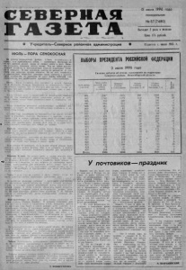 С Е В Е Р Н А T i ж ‘ З Ж ' Т Л Л ' / m MLmi Л Л ■ , ««< Ш Учредитель—С ев е р н а я районная адм и нис трац ия 15 июля 1 9 9 6 г о д а п о н е д е л ь н и к № 5 7 ( 7 4 8 0 ) Выходит 2 рада в неделю Цена 175 рублей. Издается с июля 1935 г. И Ю Л Ь - П О Р А СЕНОКОСНАЯ Нс успели зем л е д ел ьцы р айона з быть п е г евн ечил е - . ю с (раду, к ак приблизилась новая — сенокосн ая . Несмотря на то что прошли дожди, травы не спешат пойти в рост. Видимо, с к а з а л а с ь холодная погода весны. Тем не менее руководителей х о з я й с т в н механизаторов волнует подготовка техники к сенокосу. И они вплотную з а н я ты ее ремонтом. А д ля этого, как известно, нужны запчасти. Не во всех хозяй ствах н акционерных обществах запасные части имеются в достаточном количестве , но полеводы не ждут манны небесной, а по нозмржностн все ¡необходимое приобретают самостоятельно. Ь н ' з а . Когда готовился этот .материал к печати, бригада -М' J М р а з э в а .Леонида Федоровича из акционера >го общества 1 3 а р я » св ал ил а 50 —70 гекта ров ржи на сено, чтобы че- P'Xi дна-три дця перейти к скашиванию сеяных трав в рай »- не Чистого болота. Ил 'Хо обстоят д е ла с запчастями в весело-век >й бригаде. Поэт .«у гам планируют начать сенокосные работы не рань, im 11 1 июля, к ц'да будет укомплек тована и отправлена т е х ника на поля. Негде по-разн хиу решаются хозяй ственные проблемы Н а пример, в « З а р е * и з семи силосоуборочных комбайнов к р а боте готовы четыре. С 1989 года биазинцами иг приобретено ни одного гусоли- чного и колес-ног.-» трактора. Имеющиеся в наличии, соответственно три и четыре единицы, стоят иа-оа отсутствии р е з и ны («ки-ровцы»), у з л о в и агрегатов. Наконец, имеющаяся т е хника уж е давным-давно изжил а свой век, а ее прях дитсл ремонтировать ежегодно, ибо новую н е купишь, Б е р г у л ь . 11ил своды колхоза имени К а р л а Маркса н ллмым ходом недуг ремон т сеноуборочной 'техники. Мало и у них запчастей, но выход находят, пираясь на опыт и е в - и силы, Г . 4С механизаторами, занятыми на заготовке сенажа, адм и н и страция провела совещание но оплате труда и' организации работы на полях двух бригад и одного звена.- - Если погода не помешает, то в начал е второй декады июля нимеч« -ы здесь начать работы. Как и в посевную, в период сенокоса будет налаж ено бесплатное питание для тружеников полей. ВЫБОРЫ ПРЕЗИДЕНТА РОССИЙСКОЙ ФЕДЕРАЦИИ 3 июля 1 9 9 6 г о д а 1 Сводная т а б л иц а о б итогах голосования на территории Северного ра йо на Новосибирской области Число изби- Приняло Отдано Отдано ш ,Ns№ избцр. рателей, вне- участие голосов голосов участков сенных в голосовании Ел ьцину В Н, Зюганову F. А, Ä ä s в списки 1 8 0 4 2 3 8 7 1 6 1 3 4 8 0 1 0 0 8 8 3 8 0 5 1 7 4 0 1 1 7 9 3 1 0 7 9 8 5 8 8 0 6 2 5 3 2 2 8 2 9 1 9 0 4 8 0 7 2 2 4 2 1 3 2 2 1 8 5 6 8 0 8 2 6 5 2 2 5 7 7 1 3 3 12 8 0 9 6 5 61 21 3 8 2 8 1 0 3 2 8 2 3 8 111 1 1 4 12 8 1 1 1 2 5 1 0 7 4 0 6 6 1 8 1 2 4 2 3 3 8 5 10 9 2 6 4 12 8 1 3 2 7 6 2 2 1 5 0 1 6 4 4 8 1 4 4 0 8 3 0 4 9 8 1 8 7 18 8 1 5 129 106 2 8 7 3 8 1 6 1 2 9 1 0 2 3 0 6 9 2 8 1 7 3 0 9 2 5 2 6 6 171 10 8 1 8 1 3 2 1 1 2 3 9 * 6 7 6 8 1 9 2 7 0 214 4 3 163 8 8 2 0 2 3 7 2 1 0 3 4 1 6 9 5 8 21 2 81 2 5 8 2 6 2 1 9 8 8 2 2 2 3 3 2 1 7 3 8 171 8 8 2 3 4 5 2 3 8 4 1 3 3 2 1 5 3 3 8 2 4 7 0 6 7 2 6 3 2 9 8 2 5 2 5 8 1 9 4 4 8 1 3 5 9 Итого 8994 6890 1858 4631 315 Большие Кулики . На начало июля в , стадии рем ,нта находилась вся с н-¡¡косная и зе р н о у б о р о ч н а я 'т е х н и к а в АО «Н а ша 1’ дина» . К-днечмР. если бы в хо зяй ств е были деньги в д ч т-атбчч ",\ к о т ч е с т в е , то все вопросы по снабжению запча- ст ям з . необходимыми д ля ремонтных работ, можно было р е шать ш а р а г и .-лее. А п ; к а инженерная служба уповает, .на но-. ездку в ГГ« носи