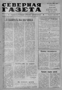 WW\ Г Г П Г О и Д С ! Е / hLJP SKâeJ? ЛПЛ » ш ¡ 7 IL Г А З Е Т А 22 июля 1996 года п он ед е ль н ик № 5 9 ( 7 4 8 2 ) Выходит 2 раза в неделю Цена 175 рублей. ® Учредитель— Северная районная администрация Издается с июля 1935 г . V-' Vy v У4,^/V^V/VAA/S/V^^Vy/V^V/V/V'-lWV\^i/V\A^lV^/,^^/VWV4^V,!^^V^^WWVV^^VWVWWVWV\/W wv\ЛЛАЛМЛАЛГ/Л' ..И ВЫБИРАТЬ МЫНАУЧИМСЯ С у д я пи в е ш у , мы все т л в е у и п : е о р д б ь а л в а н с « т о ш н т о л а й и тн а ы д и е м з » б и ' и н р и и а с з л т б и р и а р ц г а л и т а и е , н б е ора у м л е г П л р и е с з ь ид с е т н р т а а сти Р о с н с о и и в , ы а на горизонте выборы делу- . т у к а пи г рй о а в в о л о б е р лн г а и а с я н т о и в , по м то ес Н т е н о с в о т г о ь о си с в б а ыи м б р о о с ры с а м ы х близких к нам органов власти. лас З т а н к о и г н о Н о С в о о в с е и т б а ир д ск еп о у г о тат о о б в г « к о о О ва с в н а ы м б в о о у р « п а С р х о а в в е о л т р е с г н к а и о н я й о » в С о м и п б е у с и б т р н л и и о » и « В е д о м о с т я х Новосибирс- мп в к о у и > р т т пэ а и ь т с т о я с о в я б » с , л . а н с Пи т о м н п , о р г к о о а б т у ; С е т мо е в п е е о т р з а ь на д г к о е о в первом чтении. О смы сл е н и е каждого его п с д я у а нк я д т в е а с н т ь в п е р н в иын д е б е е о т р и о п в о к з о о д г б н д о е а з е н , з а а ч к к и о о т г н начнет действовать в полную си л И у т . а к , выборы депутатов пройдут на основе всеобщего равно го и прямого избира- тельи >го_ прдша . при тайном гол >с звании.' П ожал у й ! это жно д л о о м ж у ин и н з е т у е жх , е э к н т а о к-э с Мч Оита к е а т с д е ы б . я., избирателем многие го « Выборы проводятся по мажоритарной си стеме на с о т с а н в о и в т е ел е ь д с и т в н а ой и н з о б р п мр ыа те п л р ей ед » . в В о о е т ( п т о у н т ят —ие от <■н м о а с жит о е р л и ь т н а о рн н а о я с н б и и ц с р и т а п е т е м е . л а ь » н н . е ыт А й н с и л о ч к о е р ж го у н : г о г о о - д , и - н в о п д и р и и з н депутат. Вспомните не очень давнее: в районе, со здавало сь 5 0 из бирательных округо в, в которых избирался один депутат, ктгтрый и входил потом в с-..став районного С о в е т а , Т а к ли будет на сей раз, пока не известно, но принцип тот ж е , • Г c • V \ A . ^ . ' \ A Г - ' V V V / W ' % Л Л Л A Л / ^ Л Л Л ^ . ^ Л ^ Л ^ w ^ Л О б р а щ е н и е к родителям Н а с т у п и в ш и й н б к ы л е : а й г б о с о п е л о з ь о л ш н у ч о н п й о р й о у х р о о д о в и б к е т с н у т п ь а в а н л н в о ь е о в - , д ы , в р е к а х м н о г о з м е й . 5 и ю л я с . г в с е л е Ь и - а з а пр о и з о ше л ный с л у ч а й : л л ь н ч . и к Т р 1 о 3 е л д е е т т е Д й у е т д о к н н к у е у о п с л в а ч л а К о м с т с о а ь б е з п р и с м о т р а в з р о с л ы х н л ь а н и г л к у б о не к о м у м е м л е с т п е л . а Шв а к т о ь , в с к а А р я е д з м у г и л и н ь б и т е с а л т т ь р е а р ц — е и б я е т н р к С а а г е . и в ч е е р з ч н о и о в в ю а ш н и и р м я а с й я о о . б н е а с , п У о о б к т е о д д е е и н л т ы е о л б с ь л р н а у о п т а р в о л с и я м т ь р д о е д т и е т й е л е н й а н е р е к о а с х и д р у г и х в о д о е м а х б е з п р и с м о т р а в з р о с л ы х во и з б е ж а н и е н е с ч а с т н ы х с л у ч а е в . ли Н в о р бюаз л в л е ет э е т н о е в б ыуд бо ет ры , о , д е н с а ф ам и л и я ? В едь мы у ж е это п во р л о е х н од и и я ли с , к а И з а т ь т , ако в йы , бо с р по —з не выбор. З н ачит , до часа вн есения в бюллетень имени н ка а нд м и е д с а т т н а ого в с д а е м п о у у т п ат р ы авл о ен рг и а я д те о л л ь н н он о а б п о р л о ь в шо а д я ить и ся се д р е ь й е с з т н в а и я п бо р т е а д . выб А орн о а м я а к н а а мчипа н н ае и т я с , я р а с д в оы в д а в т и е жл е ь н н и о , я н к а а д н о ди о д б а р то ат в и . т С ь л с е я и статье 3 4 З 