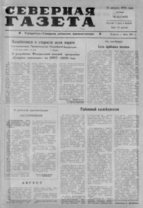 С Е В Е Р Н А Я Г А З Е Т А Учредитель— Северная районная администрация Ш 15 а в г у с т а 1996 года четверг № 6 6 ( 7 4 8 9 ) В ы х о д и т 2 ра за в неделю Цела 175 рублей . И з д а е т с я с июля 1935 г . На пастбищах Есть прибавка молока Позаботимся о старости всем миром Постановление Правительства Российской федерации от ш июля 1996 г. № 8 4 4 г . М о с к в а . О р азработке Ф е д ер а л ь н о й целевой программы « С т а рш е е поколение» на 1 9 9 7 —1 9 9 9 года В о исполнение У к а з а зидента ции от 13 Р и о ю сс н и я й с 1 к 9 о 9 й о г. Ф №е д е П 3 р 8 р а 3 е г « р О ам ф м е е де « р С а т л а ь р н шой е е цел п е о в к о о й лен п и р е о » на 1997 — 1999 годы. вительство Р о с с и й с к о й дерации постановляет ; П р Ф а е 1. Определить л ст е в н о ия со Р ц о и с а с л и ь й н с о к й о й защ Ф Мит е и ыд н е и р н с а т а ц е с и р е и государстве нны м н н гр а о а м м 1 м9 ф ы9 е 7 д — е « р С а 1 т л 9 а ь 9 р н 9 шой е г е од ц ып ел о е к в о з о а л й к ен аз и п ч р е и » о (далее именуется П р о гр ам м а ) . 2. Мини ст ерс тву с н и о й й ск з о а й щи Ф т е ы дер н а а ц се и л и ени с я о с в о м ц е и с Р а т л о н ь с о с Минист ерством ки Росси й ской Ф ед эк е о р н а о ц миии, т с М и е и р й н с с т и к в о с о т й м ер Ф с н т е а в д у о е к м р и а ц ф и и и и т н , е а х н н с и о Мч в е и с н к Р и о о с й с политики Р о с с и й с к о й Ф е д е р в а о ц о и х и ра , не Мни и я ни и стерс мтв е о д мицин зд ск р о а й иР( )Мышленности Р о с с ине кой с л Ф ц т ь и е в т и д а у , е р р РМы а о и ц с н и с Р и и и о с й , с т с с е к и М р о й с и й с т н к в и о о с й м те с р т с Фр т о в е и о д т м е е р л к а у ь Федерац ии , Минист ерством обороны сийской с т с т и е в р й е с с н т к в н о о ый м м Ф в Ф к е н д о е у м е д т р и е р а р т е ц е а н и т ц н о и и и м , и х , д Г с е . а о л М н с и у и Р Р д н т о о а и а с р р с с д к з е ор - а эп Р и о д с е с ми й и с о к л о о й гиче Ф с е к д о е г р о а ц и н и а, Комитетом Росси й ской д р т е р а р ц о а л и л о и ь ги н п и о о й и ст сл а с н у е ж д р а т б р и о т ф й и и з к а а з ц ц а и н и и я и , Ф т , о е с Фм д т е е е и Р о с с и и , Федеральной ц д ги и е мр о а и н л н ь о з н а й ыин м с т и л е у р ж е о с р б о г о в а й а н н а н Р м ыо и с м с и и м и и и , с г д ф п р р о е а у лнительной власти. н в ые м Ро со с в с и ет й о с мк о й приФе Пде р р а а в Э ц и к и т с и е п л , е ь р с т т с у н ск ч о о а й й ст в и Ф л е е а м д ст е и р о а р ц г с а и у н б и о ъ ; в ек и т с о п в ол Р н о и с т с е и л й ьразработать и представить в д П е р р а а в ц и и т и ел д ь о ст 1 во ав Р г о у с с с т и а й с к о 1 й 996Ф г е . концепцию Про гр аммы ; подготовить до 1 октября н с 1 к и 9 о е 9 й 6 в Ф г П . е р д и а е в р в и а н ц т е е и с л т и ь и с в т н в а у о с у т т а Р в н о е о с р в с ж л и е д й н е мноы м 3 . . пор М яд и к н е ис п т р ер о с е т к в т у П р о ф г и р н а а м н сов с н т Р и р и о й и с с с т в с к и е а о р т й й ь с с т к в о Ф п у й р е и д э е Фк п р о е о а н д ц д о е г и м р о и и а т ц к о и и в п и к р е е и д у МР см о и а с ектов федерального бюдж п е р т о а н р н и е а а е л 1 и с 9 р з 9 а е 7 ц д — и ст и в 1 , 9 П 9 н р 9 е о о г б г р о х а д о м ыд м и ым . ывых д д е л л я еПред седатель П равительства Росси й ской Ф ед е р а ц и и В . Ч Е Р Н О М Ы Р Д И Н шпе о р Л г и о е о т д м о о н н л е а о з к в ы а с , в е а г н ю д о а т д ж п а жи ор в е о о й т в но б в э о о т д л оты ь мм ск и о о г , л у х ь т о к р у п о о шС хв и и а б м л и и и р т ь н ь а с н я д е оя у б м с а т и л о , у й е ч т ив пы от о - отменным кл им а т ом , зато богата вся ч ес ким и родными к апризами , рые з а с т а в л я ю т . пережив к п а о р т т и ь отрудности в лю бое время года. жВо д т и, и вр н о ыд н е ч