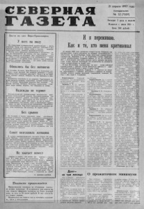 С Е В Е Р Н А Я Г А З Е Т А 21 апреля 1997 года понедельник № 32 ( 7 5 5 9 ) Выходит 2 раза в неделю Издается с июля 1935 г. Цена 380 рублей. Вести из сел: В е р х -К р а с н о я р к а У всех на виду Н а территории муниципальной администрации — шесть н д л е и е р б ч е л н в а ы е г е н о ь п к . о о л Вм у е и ч з н с д с ы е и х и , ес п п т о о ь м л д о и е га п н я у и т и а м т с а ые л м , о ' ь о р и б а е б с о и п т е а д ч юе е т т н с н т ж ыв е м а н , . с ове в т ыя и вл р я а я з мн П , о к ч то е м о у ез з з д а е щсь и т п е р н е ? де Д л а ьн п о о в т н о им м у , ат ч е т л о ьн о ы ни и у а в к е к р у е р н а ытн , ы с ч т т е о решают вопросы их бу д ущ е г о . Д л я соцработннков главное убить в с е б е равнодушие и не отсиживаться дом а , когда другим в это время очень тяжело и они нуждаются в чьей-то помощи . Одна беда — нет денег, чтобы помощь была дейс твенной, постоянной. Обошлись бы без митингов тоя В ли Б с о ь л ь с х ш о и д х ы К г у р л а и ж к д а а х н , . Н В о с в е о - в Н о и п к р о о л с ь ы с к с е во и диА л л и е с к ь се к евн е с о с о д н о м у — «Когда б у д ут денежные с р е д с т в а ? » . Е с л и б не эта проб- с р л т т е о и м Б в н а е о у , з к д с . в е ч ын и з е т в ж а а ю ь л е т а о в ж т с и р п т а ы з е ши л л и к о , а с о ь с б к о и а ш р н л л а а и т с з и ь д н о б ы р ы , ов к б ь о е е т з . ор У м о д и й р т у и б ч н о а г л ю о е в ющ т и у ю д з а а к ж б а а е 17-летни е. Временный карантин был наложен на дш а к ю о т лы л , ю д д е и тс с а о д о ы б , щ и а н , т н ер ад н е а я т. сь Б , о ч л т ь о ни с ц т а рад п а е н ре и п я ол н н е ен в а е . чныС . т р а Надежды не теряют В е р х к р а с н о я р с к о й администрации жилк омхо зом дав ал ся стомиллионный векс ель . Посудили-норядили п е т р а е м и вынесли решение: выдать насе лению денежную пенсацию за др ов а . П о л у ч и л о с ь по 2 4 4 тысячи* а к н о а мдо бы еще доплатить о^оло 160 ты сяч, да где их взять? л н н и ч я е я П , д о з р п з а о а о д в б к о а о а л т жн и н е а л е н и и д н з с о о в ь м с , е т с , к т ь а п н . к о о К . с а п м к Н я о т о г ь б л - у н д и д а е , у д с т я е з т ж д в ь е д ы с у к ь х у о н б д о о е и м п т т е ь е е н т и р р с з и я о е о в п т н , о — е л н р о п и а жр к х: е т о н о ш п . и р л я и ог в н о е ыд з Без срывов Н а больших и м алых переломах зимы способность местных к очегаров, электриков, са нтехников мобилизовать свои си лы , знания и опыт дала максимальный э ф ф е к т . Отопительный сезон прошел без сры вов , никому не чинив вреда. В о зм о ж н о , еще и п о т ом у , что все ремонт п н р ы и е работы си стемы отопления к водоснабжения сд еланы своевременно , своими силами . И это окупилось , так к а к от холодов не страдали . Совет возглавила женщина т во ат й В ов о с . р о В г с а т ы н а б в и о е з р а ыц в и ер о - х н о к н т р в о а е й с т н с с т о е в я с е р с н и с н и к о о е г о о н м и е м р е в о с ы п т б р н и и о р г я а о т л и и С е. о в Н п е а т р а е с д в 2 с о е 0 е д й а д т п е е п е л р у я се льского С о в е т а . Победу оде рж а л а Валентина Яковлевна Гн у т ов а , библиотекарь, во зглавлявш ая до этого женсовет. Д в е хлопотные должности на общественных н а ча л а х , как вы понимаете, несо вместимы , поэтому женсовет скоро придется возглавить кому-то др у г ом у . Не хватает невест «Любовь и см е р т ь — две жи зни , две о с н о в ы » ,— ск а з а л поэт. И с этим нельзя не с о гл а с и т ь с я . К а к обстоят дела в этом плане у в е р х кр а с н оя р ц е в ? Е с л и в прошлые годы влюбленные пары оформили свои отношения иод марш М ендель сон а и теперь к этих молодых с ем ь ях явились на свет 