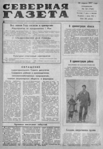 С Е В Е Р Н А Я Г А З Е Т А 2 8 апреля 1997 года понедельник № 3 4 (7561) Вы ходи т 2 раза в неделю Издается с июля 1935 г . Цена 380 рублей. Под знаком Года согласия и примирения Мероприятия по празднованию I М а я 1 . 0 5 . в 11 ч а с о в —праздничный концерт на п н л и о е щ х а у д д и о ж в е с р т а в й е ц н е н н о т й р е . са В мо п д р е о я г т р е а л м ьнм о е с : т в и ы сту Р п Д л К е и у ч а щ и х с я де т с к ой музы кальной шк о лы . 1 .0 5 , в 2 2 ч а с а — народное гуляни е на пло щади с участ и ем вокально-инструментального а ст н о с Д в а о м б с б р е л о л я а п . о р ж ай а о л н о н в о а г т о ь н Д а ом пр а аз к д у н л и ь ч т н у ы р ы е , м е га р р о м п р он и и я тия с ч и сты м и помыслами и до брым с е рд цем . О П Р А З Д Н О В А Н И И Д Н Я П О Б Е Д Ы С беды, ц е в л о ьюисп п о о л д н го ен то и в е ки У к и а з п а ро П в р е е д з е и н д и е я н т Д а ня Р Ф П о о т м 0 7 и р . И е . н и 9 я 6 ) г и . №по ст 1 а 5 н 3 о 7 вл « е О ния Д н е об с л о а гл дм а с и и н я ис и тра п ц р и и и Л« 7 4 4 от 2 8 . 1 2 . 9 6 « О со здании к ом и сс и и по проведению Г о д а со гл а си я и п р им и р ения» : в н е о т г 1 а о . в О се е т л т д е ь е р с л о а у н в е о к т в у а л д ь о с т о у в 3 р м 0 ы е . 0 с , т 4 а н . д 9 о м 7 и с н с п и п л с р т а е р н з а и и ц р д и о и и в у а м т о С ь м е в е с р о и представить н а утверждени е в администрацию района мероприятия но празднов анию Д ня Победы в р айцентре. 2 . Г л а в а м се л ь с ки х администраций: тер 2 а . 1 но . в О р В г О ан В и , з о п в р а а т з ь дн 8 и —чн 9 ых м а м я ер ч о е п с р т и в я о т в и ан й ие вев ш к о л а х , к л у б а х , библиотеках. р ки и 2 , 3 т . о . 2 р р . а О и с П т я п д х р о . е и л л о в а ж е м с е т н и а н д ы в м е и п н о н и р а с я т д п р о о а к д ц в и п е и а д м о р м я а т с й н т о в и н е к а н и н , ы п о х р б и е н л т я и е т с р ь д у б ыо ч т а ы с в т . и с е оо в тв п е о т д с г т о в т и о и вк с е н и ап п р р а о в в л е е д н е и н я и ми и Д н св я ое П й об р е а Культурно-спортивные мероприятия 7 . 0 5 — лег к о ат летич ес к ая э с т аф е т а среди ш к о . не Победы в В е ли к ой Отечест венной войне, льников ( см еш а н н а я ) . 7 . 0 5 , — интеллектуальная игра-викторина сре- 9 . 0 5 , в 2 2 ч а с а — народное гуляни е на пло- ди с р ед ни х ш к о л , по священная -52-й годовщи- щади . О Б Р А Щ Е Н И Е территориального С ов е та депутатов Северного района к руководителям сельскохозяйственных предприятий, членам акционерных обществ и фермерам Д е п у т а т ы н ве о р го ног С о о в р е а т й а он д а еп т в е у р т п а р р т и о е т д в о д р в и е а р л С и ь е и в р б е о а с щр е о а н б юн а е т м с , я - з п е к о м о л л е в е в с д ые е м х л ь р в ц а а а б мм о , , т х л о к е б о всем , кто вы р ащ ив ает зерно и корма д л я животноводства, кто о с т а л с я верен н елегкому, н д о у Н р с ы т о о с н с л е и ь ш й н с н я к е я о о г б о п х о о к с д р е и е в м с н т о а ь м я я у нс к т т а р в м а у . пания буд ет не и з лег ки х . шИ з е - г з о а с д н о е ж га д е м й но и ги р е ан и о з в в а ы с па н в е см о гл и в достаточном д ч е ест с в м е о г п л о и дн з я а т п ь а с з т я и б с и ь ; Н д е о к б о в р л е о и з качественными сем ен ам и . Из- г з о а и н з е - д з о а с т о а т т с к у а т , ств а ия ч а з щ ап е ас н в ы с е х частей д л я тракторов и льс к ох о зя й ст в ен ны х машин с н е е х в в н а е м з и д к е а , р в а н . б п а о о т л к а н о т о т ь й о . р г о К о й то т п в о р н м е о у д с с т т и ои т ж т е е с м е пщ и е е ч м ен б а т о и е л е р ее и го а р л у ю с а л м ч о и е ж . н И и с м л м о е а н с з ь н о о ч о н э б т ы е и ф ак т о ры и став я т в тяжелое положение в с е х цев р а йо н а . бле Б м е ы з у с с л н о