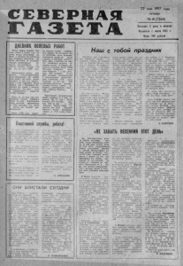 С Е В Е Р Н А Я 22 мая 1997 года четверг № 41 (7568 ) Выходит 2 раза в неделю И здается с июля 1935 г. Цена 38 0 рублей. гак- ДНЕВНИК ПОЛЕВЫХ РАБОТ В е с н а нынче ранняя , б ы стро сошел с полей снег , те плые ветры подсушили па шню, а поэтому все работы на ней начались несколько ра ньше обычного. И механизаторами акционерных обществ , коллективных х о зяйств сделано больше, чем на э ту же дату 1996 года. Оперативная сводка районного „ сельхозуправления ясно показывает , где прибивали вла гу , где вели весно в спаш ку , а г д е ' у ж е приступили к с е в у зерновых. Ж а л ь правда, что с Большими К у ликами нет связи, а поэтому неизвестно, как идут дела в акционерном обществе «Н аш а Р о д и н а » . И т а к , на 12 м ая , как констатирует сводка , прибивка влаги, то есть боронование перед по севом , произведена на 5 1 2 3 гектарах , что почти в девять р аз больше прошлогоднего. О с е нь 1996 года принес - ла немало хлопот хл ебор о бам района. В частности, из- за непогоды, из-за большой влажности полей не везде уд ало сь в достатке подготовить зябь, а поэтому во многих хозяйствах ведется весенняя пахо та. В общей с л о жности вспахано более 2 0 0 0 гектаров, четвертая часть этой площади — в А О « Р о с с и я » : 5 5 0 гектаров. Б о л е е ¡jOO гектаров весновспашки У земледельцев коллектив ного хозяйства « V I I с ъ е з д С о в е т о в » , от 2 17 д0 ' 2 84 г г е к т а р о в -в с п а х а л и м ехани заторы колхоза имени К . М а р к с а , акционерного общ е ства «Заветы И л ь ича » и « Л у ч а » . Приступили механцза торы наших хо зяйств и к се в у з е рновых. Н а 12 мая было засеяно 4 72 гектара , причем. 2 3 0 из них — в А О « Р о с с и я » . Кроме э ’гого х о зяйства сев вели « П а м я т ь Лен и н а » , имени К алинина, « З а р я » и « V I I с ъ е з д С о в е т ов» . I »♦ ♦ ♦ ♦ ♦ ♦ ♦ ♦ Счастливой службы, ребята! I I м а я , ' я воскресенье первые призывники нашего .район- у е х а л и утренним городским автобусом на военную с л у ж б у . Для них закоптился первый этап ' их юношеской жизни. Мы отправили Владимира Бабарынина. Петра Во- лынчук а и Бориса Кайгорэдо- в а . - - п о я с ц р л и з военкомате. — пояснили в военкомате. — II все они идут в престижные войска — ракетные и морфл от. , В ладимир Баэарыкйп и Пётр В о лы нчу к учились в просручи чище. Рода два назад, когда оба встали на Учет как будущие призывники, они выразили желание: сл у ж и т ь - так в Морфлоте! И , к их радости , такая, воз можность выпала. П р а в д а , ещ е не известно, на каком из флотов Российской ф е - . дерации они оденет м ор с к ую ф о р м у И примут ' ПРИСЯГУ- Н о ясно одно: изменения места службы • быть не должно. А вот Борис К а»г ородов , скорее всего, попадет в ракетные войска. Что ж , и это вполне м ужская работа . ' О с тае тся пожелать - всем троим солдатских-, моряцкого счастья. А . А Р К А Д Ь Е В . ^ я ссса са х гх х сс са э о ссс сссо о сс ссс^ ^ О Н И БЛИСТАЛИ СЕГОДНЯ ■ Д е н ь Победы — самый з а мечательный праздник из* всех. Н с случайно именно к этому дню в районном Д ом е культуры был подготовлен блестящий концерт. Особенно великолепно смотрелся Хор ветеранов: торжественные, слегка подернутые печалью лица, у большинства жен- •щин на груди ордена и медали, как символ непосредственной причастности к прошедшей войне. Выступление их на сегодня оказалось превосходным это попурри на , темы военных песен, оценкой которого были несмолкаемые аплодисменты. Так же тепло встречали' и провожали зрители О . А . Ры ж к о в у с песней « К а 
