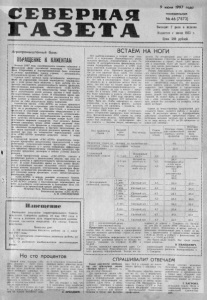 С Е В Е Р Н А Я Г А З Е Т А 9 июня 1997 года понедельник № 4 6 (7 5 7 3 ) Вы ход и т 2 раза в неделю Изд ается с июля 1935 г. Цена 380 рублей. Агропромышленный банк; ОБРАЩЕНИЕ К КЛИЕНТАМ Н а ч а л о 1 9 9 7 года ознаменовалось важным событием в сфере ро.ссийской экономики - Столичный ь а н к Со ер еж ен и н и Агр опромышленный банк, входящие в десятку крупнейших банков с тр а ны , — объединились в Б а н к о в с к у ю группу « С Б С - А Г Р О » . 1 П р е ж д е всего групиой оыли предприняты энергичные меры по ук реплению текущей ликвидности: Агрипромоа- нку с этой целью было выделено 1 трлн, рублен , что п о зволило восстановить жи знеспособность многих филиалов , спо сооствовало выполнению обяза тельств « С Б С - А Г Р О » перед вкладчиками . Э ти обя зательства также г а р а н т и р у ются значительной долей активов группы в виде пакета го сударственных ценных б у м а г . В ближайшее время пр е д ставл яе тся возможным полностью р ассчитаться по т еку щим долгам и обеспечить с табильное выполнение всех взя тых на с е б я обяза тельств пер ед (клиентами Б а н к о в ск а я группа « С Б С - А Г Р О » не только принимает активные шаги но сохранению действующ ей филиальной сети, но и расширяет ее. М ы при ступили к осн ащению филиалов и отделений современным оборудованием и технологиями. Э ти меры д а д у т возм ож но сть автоматизировать межбанковские и внутрибанковские расчеты , повысить качество обслуживания , которое вскоре бу дет соо т ветствовать мировым станд ар там . У ж е началось ф о р м и рование св я з а н н ы х м е ж д у собой единой системой телекоммуникаций сети филиалов и отделений . Т акая с и с т е ма ооесп ечит бе сперебойное и бы строе прох ождение лю- оых видов платежей в р ежим е реального времени. В ближайшие три года на техническое пер еоснащение своей сети « С Б С - А Г Р О » нам ер ено затратить около 1 млрд д ол ларов. г Б а н ко в ск о й группой « С Б С - А Г Р О » разработаны спец и альные программы кредитования производителей и пере- раоотчиков сельскохозяйственной продукции . Уч и ты в ая интересы заемщиков и с целью повышения эфф ективно сти кредитов , предусм отрена упрощ енная процедура оф о рмления кредитных договоров и гибкие условия инвестирования . С в о е й приоритетной целью « С Б С - А Г Р О » считает и расширение работы с физическими лицами , при этом повышая качество и привлекательность предоставляемых им у с л у г . В с ам о е ближайшее время во н с е х наших фил иа лах и отделениях частные вкладчики с м о г у т воспользо ваться новыми вкл адами, отв еч ающими различным ф ин а нсовым потребностям российского населения . Т а к ж е б у дет увел ичен спектр кредитных у с л у г , предоставляемых физическим л ицам . « С Б С - А Г Р О » и впредь намерен оставаться банком, о б с л у ж и в аю щ и м весь А П К Р о с с и и . Руководство группы « С Б С - А Г Р О » ув ер ено в благо приятных перспективах нашего дальнейшего сотрудничества и благодарит В с е х сво их клиентов за проявленный кредит доверия . И ск рен не В аш , Пр ед сед а т ель С о в е т а директоров Бан ковск ой группы « С Б С - А Г Р О » А . П . С М О Л Е Н С К И Й . ........ .. ............................................................................................................................... И з в е щ е н и е Вниманию депутатов территориального Совета депутатов Северного района. 20 мая 1997 года в 11 часов в актовом зале территориальной администрации состоится очередная, 4-я сессия Совета депутатов. Повестка дня: 1. О б