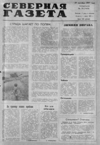 / С Е В Е Р Н А Я ¡ Г А З Е Т А 29 сентября 1997 года понедельник № 7 8 (7 6 0 5 ) Выходит 2 раза в неделю Издается с июля 1935 г. Цена 380 рублей. С Т Р А Д А Ш А Г А Е Т П О П О Л Я М Е&ш о с е н ь ю каждый погожий час на с т р о гом с чет у , то у ж н ед ел я баб ь е г о л е т а нынче была отр адной дл я души и для работы у б о рочных а гр е га т о в . З а это время много м ожн о было с д е л а т ь , но б е д а в том , что крестьянину вс е гда что-то с л у ж и т помехой в е г о труд е , а иногда и сам тр у д идет не спеш а, с прохл а дц е й , хо т я кажды й понимает: т еплы е д е ньки на и с х о д е . Однако в акционерном о бщ е стве « Р о с с и я » пока е щ е п р о д о л ж а е т с я ремонт комбайнов и к концу второй дек ады с е нтября не у б р а н о ни гектара из 1 0 2 5 гектаров з ерн о вы х . Н а корню стоит 6 2 5 гектаров пшеницы и 4 0 0 гектаров овса. Дол г о н е вы е зж али в ноле и м ехани зат оры к ол хоза имени К. Маркса, но у них была д р у гая причина, которая , кстати, с д е р ж и в а е т те мпы ра бот в большинстве х о з я й с т в . Посевы яровых п р о и зв о ди л и сь по весновспашке, и то, что у с п е л о в з о й т и ’ п ер ед д о ж д я м и , б л а г о п о л у чно р о с л о , а о с т а л ь н о е вз ош ло только в июл е , после д о ж д е й , п о эт ом у с е й ч а с х л е б его ит зе л е н ы й , уб и р а т ь е г о прямым комбайнирб- ванием — значит потерять зе р н о , уби р ать разд ел ьн о — рискованно. Одн ако в хо зя й с т в е решились на второй вариант и начали косить массивы на свал . В с е г о пока з д е с ь убр ан о около д в у х процентов п л ощ а д ей с общим намолотом 2 0 0 ц ентнер ов при с р е д н е й у р о ж а й ности 10 ц ентнер ов с гектара. В « В о с х о д е » б ы л о п ос ея н о 6 9 8 га яровых, из которых т о ж е у б р а н о м ало, в сего 7 , 3 п р о ц е нта. При э т о м н амолот составил 4 9 6 ц ен т н е ров, а у р о ж а й н о с т ь — 9 , 7 центнер а с г ектара. М ехани заторы акци он ерн ого о бщ е с т в а имени М. Горького ос енью должны у б р а т ь з е р н о вые с 9 0 0 гектар ов . Это н ем ал о , но пока их з а д а ч а вы полнена в с е г о на 1 1 ,1 процента. Полеводы выве зли от комбайнов 1 0 7 7 ц ентнер ов зе р н а , взяв с гектара но 1 0 , 8 центнера . Но отличаются высокими темпами полевые работы и в акционерном общ е стве « З а в еты Ильича» , г д е о с енн я я стр а д а п родви н улась вп еред на 12.5% от общ е г о о б ъ е м а п л ощ а д е й и х л е б о р о б ы собр али 1151 центнер з ерн а , с у р ож а й н о ст ью 1 1 , 9 центнера. Р а б о т аю т в поле и м ехани зат оры А О « Н а ша Р о д и н а » . На их счету 3 8 8 0 центнеров нам ол оч енн ог о зер н а и 1 8 , 2 п роцент а у б р а н ных п л ощ а д ей . С гектара они б е р у т по 18 4 центнера х л е б а . Около 2 0 процентов яровых сж а л и и обм олотили з е м л е д е л ь ц ы акционерного общ е ства « З а р я » , которые привезли на сушилку 3 7 0 4 центнера х л е б а при неплохой ур ож а й н о сти с гектара: по 2 1 , 8 центнера. С полной нагр узк ой стараются и с п о л ь з о вать п о г о ж е е время полеводы акционерного общ е ств а имени Калинина, хотя у них напряж е н н о е п о л ож е н и е с наличием ГСМ. Эта проб л ем а столь ж е остр о стоит и в д р у г и х х о з я й ствах, но з д е с ь все-таки работ а не о с т а н а в л и вается , и з е р н о в ы е обмолочены на 3 3 , 1 пло- щ адей . 1 е к тар дал в ср едн ем по 1 5 центнеров, а общий н амолот составил 4 9 2 2 центнера . Почти на таком ж е ' у р о в н е , то есть па 3 3 , 2 проц ен т а , уб р а н ы х л е б а и в к о л х о з е «V I I с ъ е з д С о в е т о в » , только н амолот з д е с ь 1 9 1 8 центнеров , а у р ож а й н о с т ь — 1 2 , 3 центнера . В к о л х о з е «П амять Л ен 