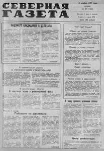 С ЕВЕ РНА Я 6 ноября 1997 года четверг № 89(7616) Выходит 2 раза в неделю Издается с июля 1935 г. Цена 380 рублей ВЫДИВНТУ КАНДИДАТОМ В ДЕПУТАТЫ На собрании группы избирателей Северного района Кандидатом в депутаты Новосибирского областного Совета депутатов по восьмому и збирательному округу выдвинут А л е к с а н д р Владимирович Морозов, 195 8 года рождения, ге неральный директор продовольственной корпорации, В ходе обсуждении бы л а создана инициативная группа по поддержанию его кандидатуры и сбору подписей, необходимых Для ре гистрации кандидата. В своем выступлении А. В. Морозов пояснил, что продовольств енная корпорация, рукойодимая им, создана три года наза д к ак государственное унитарное ' предприятие, представляющее на рынке товаров государственные интересы и связанное партнерскими отношениями с сельхозтоваропрои зводите л я- ми. Лишь десять процентов из них не имеют деловых взаимоотношений с корпорацией, на счету которой сегодня более 8 0 0 договоров и которая ставит своей за дачей обеспечение се ль хо з продукцией Новосибирскую область, в том числе Сибирский военный округ, спецзаведения, сотрудничество с северными регионами страны и другое. * С предложением выдвинуть А. В. Морозова кандидатом в депутаты областного Совета выступил на собрании В. М. Шрейдер, председатель коллективного хозяйства «Память Ленина». Это предложение было одобрено присутствующими. Кандидатуру А. В. Морозова поддержал директор ХПП Г. И. Ивашкевич. Он отметил деловые качества генерального директора, его организаторские способности, работоспособность и умение целенаправленно, конкретно и оперативно р е шать проблемы сегодняшнего дня, намечать за дачи на будущее и добиваться их выполнения. — Он стремится к сотрудничеству с сельхозпроизвод и т е л я м и , — с к а зал Г, И, Ивашкевич, — и к усилению их роли, как и всего а гр а р ного сектора, а именно т а кие люди сегодня нужны селу. На собрании группы избирателей присутствовал и выступил глава т е рри тори ал ьной администрации Г. Г. Зырянов. С. СЕМЕНОВА. В администрации района О П Е Н С И О Н Н О М С Т Р А Х О В А Н И И Во исполнение постановления П р а в и т е л ь ства Российской Федерации от 1 5 .0 3 . 9 7 г. № 3 1 8 «О м ер ах по организации индивидуального (персонифицированного) учета д л я целей государственного пенсионного страхования» и постановления областной администрации от 1 6 .0 9 . 9 7 г. № 504 : 1. Работодателям представить в У пр авл е ние ПФР. в Северном районе сведения о работающих гр ажд ан ах в с рок до 2 0 . 0 3 . 9 8 г. 2. Управлению пенсионного фонда в Северном районе ( Зы ко в а О. Н. продолжить рав боту по разъяснению целей, задач, порядка введения системы персонифицированного учета, а также освещению хода работ по реалн- { зацин Закона в средствах массовой информа- I Д Н И . 3. Данное постановление опубликовать в : районной газете. 4. Контроль за исполнением данного поста-1 новления возложить на зам. главы территориальной администрации Макарову Н А Г. Г. ЗЫРЯНОВ. Глава территориальной администрации администрации о б л а е т 0 закупках зерна в региональный фонд Постановление с таким н<- .званием (№ 5 7 6 от 1 4 .1 0 .9 7 г.) подписал и. о. главы администрации области В. Н. Киселев. В целях организации з а купки зерн а сверх проплаченного авансами . Новосибирской продовольственной корпорации вы д ел я е тс я беспроцентная бюджетная ссуда из ре зервн