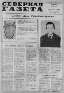 С Е В Е Р Н А Я 10 ноября 1997 года понедельник № 9 0 ( 7 6 1 7 ) Выходит 2 раза в неделю И зд ает ся с июля 1935 г. Цена 380 рублей С егодня— Д е н ь Российской милиции ' Ш• 'Лб в , Сегодня — профессиональный праздник раоотников милиции. Они встречают его, как всегда, на посту, готовые в любой момент прийти на помощь. Сложны и многогранны задачи, стоящие перед органами внутренних дел. Они ведут борьбу с преступностью, ох ра н я ют государственное и общественное имущество, обеспечивают личную безопасность граж дан , следят за порядком на авт от рассах . Поздравляем весь личный состав отдела внутренних дел Северного района с праздником, желаем им успехов в их нелегком, н уж ном людям, труде! Территориальная администрация Северного района Территориальный Совет депутатов Н А С Т Р АЖ Е М И Р А И П О Р Я Д К А с п к о о л М 1 й н 0 о я м ж е н ит н о с л о я я и б ц р п и8 и о и0 - . р 1 а л 9 з е 9 н т 7 ом г у о д Р а о с с и и й сситься к этой дате. Мн о о т г н и о е л мн ь юо з г юя ут и н с е в т с о п с р о о и м г юл н а , и с т ии ь т с ь б с о н я л и . е м е З и ад р а н а ч н е и б р о ан рь ы бы об с ще п с р тв е е ст н у н п о н г о о ст п ь о юря , д о к х а приходилось решать и до з н н я и о я я з б а р и б я ы с т т 1 ь а 9 н 1 и о 7 с в т л о г е р о н и д и а юя . о Н н б а о р ро а н з д е о н л в о ь а й милиции. И м е н н о в н т р п о е ы о р л а н 1 о я я 9 с е н 1 т с о 7 е в г в ы о о г д о з н л т д о я о а й ж с е б м н ы н и ч л е ы л и с и е т ц ь з и ню а и а л н , о о н ж в я к ы е б е о е з т го а ь дюп а о ч р и и яд о б к х о а р р . а ь н б о ы й с об п щр е е с с т т в у е п н н н о о с * л р х и о о д ц и З и и ч а л е я с о 8 к с п 0 и ь р й о л е ш е п е т л у т а с Р ь о . т о с р с л Т с у а я и д в ж й н н е с и ы к л к й а о а я м п м р г и и е в годы р а з р у х и и гр аж дан с кой войны. О д ним и из пе рвых п го о м дня м л и и л с и ь ци н о а не б р о ы рьб в у с г в о р ды а Великой Отечест венной в м о и й с н р ы а , ж б а о л к и с о ь о б н о и к . с с о л д а т а ств Мо ожп н р о име п р р о и в вод м и у т ж ь е с мт в н а ож е и героизма м илиционеров при защите своей Ро д и ны . простые зад ачи р дыеша в т о ь сст и ан п о о в с л л е е ни в я о п й н р н а иы р ш , о л д в о н Н с г о ь е о го х о з я й с т в а . Многое и зменило сь с ября 191 7 года. М еняю тс я но и т в и зг я л , яд д ыаю н т с а я те но д в а ы л е екие оц с е о н б к ыи. С л о ж н о е вр емя п ережив аем мы и с е г о д н я . Т я ж е л а я номическая с и т у а ц и я , шно е в н к и и е н к е ри м м о и ж н е о т ге н н е но в й ли о я б у т с х ь э т у к н а д о а работу органов внутренних д с с я т е в л и . б я ол П е п р е р е е с и т ст з у о у п щп л н е р и н е к и н о я н в ы с м т и ан , б о о д в л е я е й е т дерзкими . Ч а щ е стали с т а л киваться с организованной жпр е е л с е т й у шп е н й о ст с ь и ют . уа Иции в эт о о р й ган т ыя п вн ол у н тр я е ю н т ни с х во д й ел до с лг че п с е т р ь е ю д л в юы - дьм Ч н а . с т о в последние годы с н т ы а е ли выпо с я к в а л зыят в ь а с н я ия не в гати а в д рес с отрудник ов милиции . Д а , как в любом коллективе , есть и в н аш и х р я д а х н д ц и и ы т и е ь . л По ю р д е р и д а . б ан о Н т н о е ост н в ь с е ей д по е л н у , и м м и с р л л с а и у у з л т т жр и ыь о е к и н о з 6 н и м 7 а е в ш л ч —е Н е ю г о о л д в о в я о в м о м с е т и и к , л б и и х и с с р ц р в т а и с о и б к о е н р о н й н о й е ыс р т е а о ь . б , ч л Т е а г р о е с нью запл атил и за жи зн ь ж и з и спокойст вие др угих людей . В е ч н а я им память. в м н и о С о л о юб в р д с а и е щ ми и аю б с т е е с д г я а о мд в н и я м и и е л з ж а и е б ц д о и н т ю а е . И лю бо й , н а х од ящ