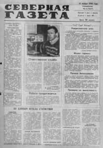 19 января 1998 года понедельник № 6 (7 6 3 7 ) Выходит 2 раза в неделю Издается с июля 1935 г. Цена 55 ко пе е к К О Л ОН КА Р Е Д А К Т О Р А МЫ РАДЫ ЧИТАТЕЛЯМ Какой будет «С е в ерн а я г а з е т а » в 1 9 9 8 году? Этот вопрос з адаю т себе не т о л ь ко работники р ед акц ии , но, наверное, и 1 9 8 0 подписчиков районки. Г л а в н а я задач а остается неизменной — донести до ч и т а т е л я наиболее полно ин , формацию о жизни района. В число ведущих тем р е д а к ц и я | нам ер е н а включить проблемы се л ь с к о го хо зяйств а , местного сам о у п р а вл е н и я , с о ц и а л ь ной сф еры , ход р а з р а б о т к и н еф тяны х месторождений. Я убежден, что главным д л я газеты я в л я е т с я ' факт, и з а д а ч а редакции состоит в том, чтобы правильно нм рас п оря ди тьс я , обесиечнть б а д ан е мнений, не поддаться с о б л а з н у критиканства , в о в р ем я з ам ет и ть и по д д ерж ат ь позитивное. Мы благодарны всем, кто нам пишет, поскольку ч и т а т е л ь с к а я почта — одна из основ со здания каждого н о м ера . Нашему небольшому творч еском у коллективу т а к ж е очень важна оценка с в о его труда, н ваша ак тивность в этом плане будет очень полезна . В н а стоящ ее врем я з а в е р ш ается подготовка новых уч- ! родительных документов, и I после их регистрации у « С е верной га зеты » п о я вя т ся оба I у ч р е д и т е л я — т ер р и т о р и ал ь пая администрация р^нон'' и комитет по печати и ннфор мацни администрации о б л а с ти. На практике это будет о зн ач ать , что у ред актора в I т рудны е д л я газеты моменты появится право о б ратиться За помощью в два ад реса . Надеем ся , что это позволит I колл ек тиву редакции рабо- | тать стабильно, с большей |т в о р ч е с к о й отдачей и рад о в а т ь читателей г а зеты . В. Ж О Р О В . \ С Е В Е Р Н А Я С Р Е Д * НЯ Я Ш К О Л А п р и г л а ш а е т вы п у скн и к о в п р о ш л ы х { л е т на с в о й 6 0 - л е т п и й { ю б и л е й . { Ш к о л а р а с п а х н е т д л я ' в а с св о и д в е р и 7 ф е в р а л я ' 1 9 9 8 г. в 19 ч а с о в . II II II II II II II II II II II К II II II II II II II и II и II II II II II II II II II II II II II II II II II II I) II II (I II II II II II II II II II II II II II II I) I* О т в е т с т в е н н а я с л у ж б а О диспетч ерской службе, т а к же, как и милицейской, вполне можно с к а з а т ь , что она — «и опасна , и трудна» , потому что от действий диспетчера , его ответственности и умения ск онцен трировать свое внимание на всех, б о л ь ших и м а л ы х , аспек тах пол ет а с а м о л е т а , з ависи т жизн ь людей, их б лагополучное йри зем л е н и е и р ад остн ая в стреча с родными. Л он сможет рас сл аби ть ся и отдохнуть тол ьк о тогда, когда закончена смена, потухли огоньки приборов и воздушные суд а за* нчзи свои м еста на ст о я н ках. С ю л ь к э таких н а п р яж е н ных смен бы то у А л е к с а н д ра А дольф овича Ш ув ь е , который работает диспетчером в аэропорту «Северное» с 1 9 8 3 года. Считать придется доси*о, потому что ран ьше с а молеты кружили над рай ц ен т р м довольно часто, и в к а ждый рейс провожал их д и спетчер, —-1 надежный п о в о дырь в воздушном океане. — В нааш функции входит главное. — говорит А л е ксандр Ддольфонич, — у п р а вление движением самолета , но. р а з у м е е т с я , с участием э к и п аж а . Ворт не должен о с т а в а т ь с я бе з контроля и внимания ни минуты. Теперь, правда, полеты редки, но о т ветственность остается п р е ж ней, потому что любой рейс - это люди, ж и зн ь которых мы обязаны сохранить. С. СЕМЕНОВА . На снимке: А. А Шувье. Фото В. П рокоф ьева , ^5 ^ 5^:5^5»35^ ^ ^ ^52; II II II II II II II II II II (I II II ■II II II II II II 9 II II II II II 
