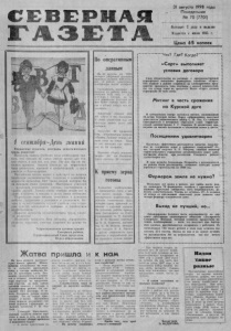 31 а в г у с т а 1998 г о д а П о н е д е л ь н и к № 7 0 (7701) С Е В Е Р Н А Я Выходит 2 раза к неделю Издается с июля 1935 г. Ц е н а 6 5 к о п е е к Г А З Е Т А 1 сентября~Денъ знаний Уважаемые педагоги, ветераны педагогического Iруда, родители! Накануне нового учебного года необходимо скачать . ч т о сегодня не самое легкое время для тех. к т оучится, и для тех , к т о у чи т . Но как бы нн менялись времена, знания никогда не перестанут бы ть ценностью, высокой и непреходящей, а труд учителя — благодарным. Российская школа живет и действует в о многом благодаря подвижничеству, талантам и самоотверженности педагогов. Нет таких людей, которые б ы не помнили своих учителей. Настоящих учителей — мудрецов, психологов, ученых, наставников и просто друзей. Только такие учителя останутся в душе, в памяти, в мыслях и делах своих питомцев. Переступая порог школы, отнеситесь к каждому ребенку, подростку с довернем и уважением. От того п не опустошится сердце учителя, чт о отданн ые чувства восполнятся любовью п признанием воспитанников. Дорогие ветераны педагогического труда, учителя, родители! Позвольте пожелать Вам обаяния, сердечности, радости, терпения, счастья, здоровья н а долгие гол и . Территориальная администрация Северного района. Территориальный Совет депутатов. Отдел образовании. * По оперативным д ан ны м Па 21 августа из 5356 гектаров уборочной площади зерновых скошено 459 гек та ров. К работе приступили комбайнеры шести хозяйств. Урож айность пшеницы в среднем по району пока со став ляет 14,4, овса — 11,5 центнера с гектара, но по всей видимости, итоговая цифра б уд ет гораздо ниже, когда в у б о р к у пойдут все ко л лск тивы . Закончили о б м о л о т ржи ДО « Л у ч » н им. Калинина. И обоих хозяйствах под эту к у л ь т у р у занято всего 195 гектаров. Заготовив , 3 6 процентов сена, механизаторы к олхоза « П а м я т ь Л е н и н а » теперь с д е л а л и уп о р на сенаж. План по е го за кл а дк е уже вы иол иен на 34 процента. Первыми у б о р к у силосных начало Д О им. Калинина. Здесь скошено 20 гектаров. К приему зерна го то вы К о л л е к т и в хлебоприемного предприятия готов к встрече нового урожая. Здесь основательно поза ботились о ремонте технической базы, которая сдана приемной к о миссии с хорошей оценкой. На сезонные работы прив ле кать посторонних не буд ут. Сушильщики А . Т. К лещ е й ко, П. П. Таскаев , приемщица В. И. Гудимова, лаборан тка М. Ф . Морева, заведую щий складом В. А. Ефимов и дру гие специалисты предприятия с переработкой з е р на справятся своими силами. Ж а т в а п р и ш л а и к нам На тока области поступает зерно нового урожая. Нынче природа поскупилась на отдачу н позволит крестьянам взять С гектара немногим бо л е е 11 центнеров хлеба. В о з можно, урожайность и изменится в с торону увеличения по мере перехода на нродуктив- ные участки, но пока самый высокий намолот с гектара в Колыпаж:ком районе. Он составляет 19,4 центнера. О нашем, Северном, районе можно сказать, что он то л ьк о приступает к жатве. Обстановку э то го периода р азъясняет г л а вный агроном управления се л ь с к о г о хозяйства Г. I I . А к а тьев. — Геннадий Николаевич, с к о л ь к о хозяйств нывели агр е гаты в ноле и есть л и разница по началу уборки прош лого н нынешнего годов? — К жатве приступили пол о т ш а хозяйств, причем, начали они ее па две, а то п б о л ь ше, педели раньше п р ош ло го днего, потому что за су х а у с корила созревание 