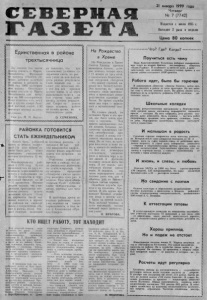 Л А Я А ' А 3 1 Ж ) А ' А 21 января 1999 года Четверг № 7 (7 7 4 2 ) И з д а е т с я с июля 1935 г . В ы х о д и т 2 раза в неделю Цена 8 0 копеек Единственная в районе трехтысячница гоязоссоэяхгхгтоссссссссс^ к 8 1 Я I Д а , именно т ак нынче можно Сказать о Марин Мнхаиловне Фроловой из колхоза «П ам я ть Л е пина», ко тор а я получила от коровы в среднем за 1998 год 3005 кил о гр ам мов молока. Остальные доярки отстали от Марии Михаиловны как минимум на 500 килограммов. Надо отметить и то, что у нее в группе самый большой валовой надой: 1142 центнера молока надоено ее руками. , Еще ра з М. М. Фроло ва д о к а з а л а , что при одинаковых условиях со д е р ж а н и я скота, но р а з ном уходе за ним получа ются разные результаты. Свои позиции она нс сдае т уже несколько лет, с тех пор как приняла группу коров. А до этого вы р ащ ив ал а теля т и на том участке тоже добив а л а с ь лучших п о к а з а т е лей. Секрет ее успеха прост: о тд а в ать работе не только время, но и беспокойство души. О. СЕМЕНОВА . доеооос» х - > у ^х< оосоооо«5ооооооооооосооооооооос<< »осоооооооооооооооооооооооооооооооооооооооооо< > ооооооо^ Р А Й О Н К А Г О Т О В И Т С Я С Т А Т Ь Е Ж Е Н Е Д Е Л Ь Н И К О М Какой быть районной га зете во втором полугодии? На этот вопрос до лжно было д а т ь ответ совещание учредителей, которое состоялось 12 я н варя. Финансирование р а й онки в 1999 году будет производиться из двух источников: через комитет по печати и информации на 65—70 процентов и через районный бюджет на 30 —35 процентов. Однако реалии таковы , что учредителям приходится постоянно решать задачу экономии средств. Один из вариантов такой экономии видится в перево; де районки на еженедельник с сохранением о б ъ ема в восемь полос. Это д а е т годовую экономию на почтовые расходы в пределах 30 тыс. руб., что равнозначно к в а р т а льному фонду заработной платы или з а т р а т а м на бумагу. Участники совещания пришли к выводу, что е с ли финансовое положение, не стабилизируется, то со второго полугодия «Северной газете» придется выходить один ра з в неделю. При этом обяза тельным будет публикование телепрограммы в сроки, удобные д л я читателей. В настоящее время несколько районных газет уже перешли на новую периодичность, в том чи сле и Кыштовская « П р а вда Севера». ХО О О О О С< ^ ХхХ«О О О Х> О О О О О С< > 00< ХХ< |С< > О О С> О О О О О О О О О О О СО О О СО О СО О О О О О О О О О О СО О О О О О СО О СО О < )О О О О О О О О О СО О О О О О О О О © ^ $На Рождество в Храме Ы е На Рождество в Храме ” Святой Троицы прошло ^ всенощное бдение, кото-к рое длилось четыре ч а с а , £ с 11 вечера до трех ночи, и закончилось бож ес твен ной литургией. Литургия —это самый главный, в а жный вид богослужения. Это таинство, во время которого люди при чащ а ются и происходит непосредственное единение с богом. Во время службы пели два хора — церковный и музыкальной шко лы. По словам людей, по сстивших Храм в это в р е мя, все было очень к р а сиво и чарующе. Хор 3 просто з а в о р а ж и в а л с в о им пением, большое к о личество зажж ен ны х све чей, своеобразный аро 3 мат л а д а н а и воска с о з - 1^ д а в ал и ощущение празд- ч ника. Но не того, на к о т о - 3 ром веселятся и пьют вино, а какого-то особенного. Вся эта атмосфера успокаи вала , умиротвор ял а и вселяла веру в души людей. А русскому человеку нельзя жить без веры. И эту мысль под твердили многие прихожане. И с к а з а л и , что такие мероприятия необходимы д а ж е тем, кто в