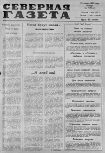 2 8 января 1999 года Ч е т в е р г № 9 ( 7 7 4 4 ) Издается с июля 1935 г . Выходит 2 раза в неделю Ц е н а 8 0 к о п е е к Колонка р е д а к т о р а Что у нас на столе Какие п р о д у к т ы м ож н о к у пить в С е в е р н о м из числа те х , чт о п р о и з в о д я т с я в районе? Мяса з ма газинах нет, а к о л . баса вся привозная. Молочные п ро д ук ты купить м ож н о , но в п оследн ее жремя цена стала « к у с а т ь с я » ! Я й ц о т о л ь к о п р и . в озн ое . Па о в ощ и м ож н о надеяться т о л ь к о т е м , к т о вырастил на с в о е м о г о р о д е . П о лу ча ет ся , что м естны й ры н ок не с п о с о б е н у д о в л е т в о . рить п о т р е б н о с т и п окупателя, и причин т о м у мн о г о . Давайте ра с см о тр и м х о т я бы осн овны е из нмх. М я с о за бив а ем и реали зуем в о к т я б р е и н о я бр е дал ек о не по са м ы м выгодным ценам. О б ъ я с н я е м .это тем. что в рай оне нет п е р е р а б а т ы в а ю щ и х м о щ н остей . В р о д е бы и правда, но не вся. О п р е д е л ен ную в о з . м о ж н о с т ь р е г у л я р н о п е р е р а б а . ты в а ть м я с о им е е т х л е б о к о м бинат, но для э т о г о т р е б у ю т с я о б о р о т н ы е с р е д с т в а , ч т о б к с в о . еврем ен н о р а с с ч и т ы в а т ь ся с населением за п оставки сы р ья . Итан. д е л о , о к а з ы в а е т с я , не т ольк о в м ощ н о с т я х . Е сть ли в районе излишки яйца? Н а з е р н о е . е с т ь , но все дело в т ом , что э т о яйцо не может п о п а с т ь на прилавок магазина. Л ю б о м у предпр ини . ма телю в ы г о дн е е привезти б о л ь ш у ю п арт ию с п ти ц еф а бр и . ки, п о л уч и в при э т о м в с е т ар а , нтии к аче ст в а , чем п р о и з в о дить за куп у населения на свой страх и ри ск , л омая п о т о м г о . лову над т е м , как д о б ы т ь д о кументы о т той ж е са н и т а р . 1юГ| инспекции. М е с т н о е м а сл о , конечно ж е, в к усн е е и м п о р т н о г о , но в е л и , чина '.зарплаты и р е г у л я р н о сть ее п олуч ени я все р а вно з а с т а в л я е т ск л он и т ь г о лову к ра ст и те л ь ным зам ени телям, к о т о р ы е в с е ж е д е ш е вле. После э т о г о возникает в о прос, м ож ет ли с е л о п р о к о р мить с е б я ? Да, м о ж е т . Но т о . лько т о г о , к т о д е р ж и т с в о е хюзяйство и и м е е т в о з м о ж . н о сть хотя бы ча стично с о х ранить плоды с в о е г о труда . Но даж е и э т о т труж ен и к з и . мой в ы н у ж д е н т е р п е ть обилие мяса, а л е т о м нажимать на зи. тамины. К чем у я затеял весь эт о т р а з г о в о р ? А к т о м у , чт о п о лучил .-задание о т в е т и т ь на в о . прос: « П о ч е м у в магазинах района нет местной п р о д у к . ции ?» Задала е г о одна читательница, к о т о рая логично с чи та ет, ч т о п ро д ав а ть надо то. что е с т ь в излиш ке у н а . селения. Н о все э т о не так п р о с т о , и мы и з . в а традиц и он н о го о т с у т с т в и я з а б о т ы о н уждах к о н к р е т н о г о чел ов ек а в м а с штабах г о с у д а р с т в а , и з . з а б е дн ости на п о с л е д н и е м еста ставим п р о б л е м у сохранения 0 30(43 продукции, ее п е р е р а б о тки и продажи. А т р е б у е т э т о усилий не мен ьших, чем т р у д вы ра сти ть . П о х ож е , д о л г о ещ е придется с е л ь с к о м у ж и т е л ю затяги вать пояс на лето , н а р у . шать п осты зим ой , весной н а . д ея ть ся на запас домашних к о н с е р в о в и в е с ь год не з а б ы : вать про к а р т ош к у . Когда будут наела - неизвестно Самая больш ая проблема Для владельцев а в т о т р а н с п о р т а в на стоящ ее время — о т с у т с типе масел : д и з е л ь н о г о и а в тола. На э т о т в о п р о с о т в е ч а е т Н. А . С емен ов , с т а рш и й о п е ра т о р С е в е р н о г о филиала А З С : — О бы чн о мы п о л у ч а е м ма ела