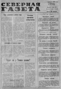 1 ф евр ал я * 9 9 9 г о д а . # № 1 0 ( 7 7 4 5 ) » « Л Л Л Л Л А Л Л Л Л Л У Ч Л Л Л Л Л Л Л Л Л Л Л Л Л Л Л Л А / в Л Л Л Л Л - Л А Л А Л У \ А Л Л Л А Л А Л Л Л Л А Л Л Л А Л А ( О п р е д е л е н ы 13 к о р м и л ь ц е в Р о с с и й с к о й Ф е д е р а ц и и По новой м е т о д и к е р а с ч е та тр а н с ф е р т о в регионов, со- гл а с о з а н н о й т р е х с т ор он н ей комиссией, « д о н о р а м и » ф е д е рального б ю д ж е т а РФ в 1 9 9 9 го д у с т а н у т 1 3 с у б ъ е ктов Р Ф , что со о т в е т с т в у е т ур овн ю 1 9 9 8 года . Об э т ом на б р иф и н г е соо- > бщил первый за м е с т и т ел ь <> министра фи нан со в Р Ф Вик- ч тор Х р и с т ен к о . По е г о сло- < вам, д ол я 3 9 р еги онов , в том | числе Р е с п у б л и к и Хакасия, ч Р е с п у б л и к и Чувашия и Кур- £ тряской о бл а с ти , в Фон де £ ф н н а н с о з о й п о д д ер ж к и реги- $ оноь (Ф Ф П Р ) б у д е т увели- ч ч«на В то Же время 3 6 с у бъ ек т о в Ф е д е р а ц и и , в том числе Н и ж е г о р о д с к а я , Челя бинская и Я р о сл а в с к ая о бл а сти, сок ратят св ою д о л ю в Ф Ф П Р Виктор Х р и с т ен к о ч нап омн ил , что в проек те Фе- ? д е р а л иного б ю д ж е т а на 1 9 9 9 - год о б ъ е м Ф Ф П Р о п р е д е л е н в с у м м е 3 3 , 7 млрд . р уб . ( 3 9 , 9 м л р д . р у б . в 1 9 9 8 год у ) . В х о д е работы над п р о - ? ек том б ю д ж е т а , по мн ению ч В. Хр и с т ен к о , на цеЛи фи- н а н с о з о й п о д д ер ж к и р е г и о нов д о п о л н и т е л ь н о м ож е т быть и з ы с к а н о 3 , 5 мл р д . р уб . Эти с р е д с т в а б у д у т наира в л я - ? ться по линин р еги онал ьны х ? программ на фи н ан сов ую помощь « о с о б о дотационным регионам » , а т ак ж е на комп ен с а ц и ю т арифов на эл ек т - , р о э н е р г и ю регионам Д а л ь н е - > го Во ст ок а и Сибири, с о о б - ч щи л первый з а м е с т и т е л ь фи- < нансов РФ. Е ж е н е д е л ь н и к «Э п и гр а ф » . ч Л у ч ш е в с е г о ч е с н о к М л а д ен ец отказывается! от гр удного молока? Или наоборот м ол ока не хватает? Бытовало р а с х о ж е е мнение что’ улучшить к орм лен ие гр удью м о ж е т прием матерью пива или с у х о г о вина, и д па ко новые ис сл едов ани я американских уч еных' полностью р а зв енч али э т о т миф, р е б ен ок чутко р е а г и р у й на алкогольную о т р а в у в любом обличьи и б ол е зн ен н о на нее р е а ги р у е т А по- н а с т о ящ е м у пол езны м продуктом, ул учшающим кормление гр у дью, п о с л е многи х эк сп е ри м е н т о в признан обыкнозенный чеснок. По страницам прессы. Ж и т е й с к и е истории Испорченное настроение « С Е В Е Р Н А Я Г А З Е Т А * 5 стр. V ч х Ч ч О О О О С О в вС С О О О в « 'О О О СФ О О О О О О ССО О СССО Э Х * Н а конкурс . Ч ^ \ Л Л Л ( ^ \ / У \ А ^ У \ / \ А Л Л А Л Л Л А А Л Л А Л Л Л Л / \ / \ Л Л Л Л А Л Л / \ Л Л Л А Л Л Л Л Л Л Д Л Л Л Л Л Л Л А Л Л А Л Л Л / \ Л , Золотовалютный запас Росии сократился Г1о данным газеты « С е г о д н я » , зол отов алю тны й з а п а с Р о с с и и на конец 1 9 9 8 года составил 1 2 , 3 м л р д , д о л л а р о в С Ш А . Это м еньше, чем когда-л ибо з а п о с л е д н и е 5 л е т . В 1 9 9 7 г о д у этот п ок азат ел ь равн ялся 2 4 , 5 млрд. д о л л . с о в с е м н е д а в н о , в с е н т я б р е , зол отов алю тны й з а п а с был 1 2 . ^ млрд . д о л л . Это о зн а ч а е т , что п о с л е д н и е меры , св я зан ны е с о б я за т е л ь н ой п р о д а ж ей валютной выручки, не дали ничего. К т о и з на с с е г о д н я встал не с той ноги, то ли я , то ли мое н е н а г л я д н о е с ок ров ищ е? В с е у т р о зы сл уш и в а ю упреки и попреки . Н у д и т и н у д и т . У ж е л о ж к а и з рук п а д а е т , тар ел к у х о т е л а на пол швырнуть да покричать. О д у м а л а с ь — при чем з д е с ь т а р ел к а , ж а л к о , н о вую, м о ж е т , и не п ри д ет ся к у пить. На р а 