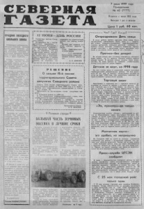 С Е В Е Р Н А Я 7 и ю н я 1 9 9 9 г о д а П о н е д е л ь н и к № 4 2 ( 7 7 7 7 ) И з д а е т с я с ию ля 1935 года В ы х о д и т 1 раз в неделю Ц е н а 1 р у б , 6 0 к о п . ПРАЗДНИК ПОСЛЕДНЕГО ШКОЛЬНОГО ЗВОНКА лас В с ь н ши к у и с к шС еш в и е р о н д о и й ннад ср ц е а д т ни е к й школы сдают э к з ам ены . 25 мая пролет ел , прозвенел для них в о л н ую щ е грустный и радостный школьный звонок. Дали се е в а к и от Дор и ым й а НК а у т р а о шед а о в А . л е к Позади н езабываемы е го-} Ды учебны, ве сел ая беготня; малыш ей , радость встреч с< д р уз ь я м и , предметные вече ра и н едели , у р о к и , внеклас сные м е р о п р и я т и я . . . рав Юил н и ош е в й еду и щи д е е в у ' шпр е а к зд п н о и з к д а ; Лен а Рящнкова» и С а ш а Д е ' р к а ч . директор школы Г . I'. С о л о м а т и н а , учит ел я и дители. П р о з в у ч ал и п ес р н о и ; л « ь Р н о ыд и й т е в л а ь л с ь к с и » й , « д К о о м г » д , а « у Шй д к е о м ; си шк оль но го д в о р а » . Т анц у * ющие пары покорили всех ; п р и с у т с т в у ю щ и х . Взвол нованно -гр устны е ли ц р а осл у ы п е ар и не с й в е р и с т д н е и в к ч и а , т . и А дажвз е пер во к лаш ки напоминают им, л ч ь емныу е он г и одын : ауч о и вл л а и д с е ь ли в о ш с к и о о вами н а у к , стали разбирать ся в п р о ц е с с а х обществен ной жизни , познали радость п ер вы х о тк ры т и и , а может быть, и первой лю бви , за щищали че ст ь ш колы на спортивны х соревнованиях . скн Т и р к е о в в о . ж нО о ни на пон д и у мш а е ют в , ы ч п т у о покидают самый первый, но! самы й надежный причал ш к ол у , где все это время бы ли на г л а з а х у в с е х . 20 ню ни *им е щ е предстоит ска Хвать: « Д о свидания , детство! X З д р а в с т в у й , юность !» & А п о к а . . . О г л а ш а е т с я ро >шсиие педсовета о допуске; ¡в с е х 84 выпускников С С 1 П •к итоговой аттест ации . Ра -,Дрсть в с е о бщ ая - первую; ¡¡преграду преодолели . Ч т о им запомнилось боль ^ г ш а т е е л в ь с н ег о о е и п з ри э в т е о т г с о тв д и н е я ? пе Т р р во о - >классннков. обмен подарками к р и е д ц а в л е и т ам б и р , аз и ды то, пр к а а в к ле о н н и и я пе и ¡к л ю ч к зн аниям выпуекми- >кам 2 0 0 0 года , и к ак каж - о [Д в Ый дел и а з л ч с е в т о ы ю ре га х зе 1 т 1 у - . х к л а с с И зап али в д у ш и т ех . к г > ¡в тот майский день навсегда | н ч п о и р й с о л с е т с н и д н л а ы с ч я и е с п э о о к ж з ш а е м к л о е а л н н о о и й в я , , у м п с р н п а о е в г ш о о ¡ с л л ь у н ю ого ж в и ы зн б ь о , ра гд п е ут г и ла в в о но в е зр —о - ¡н е бо ят ься трудностей; пс ¡¡забывать родную ш к о л у , ¡ д р у з е й и лей; верить у ч в ит е м л е е ч й т , у р , о д д о и б т н е - ; ваться поставленной цели; ¡ с л у ж и т ь д о бру и правде. И ¡помнить всегда- что лучшего ¡ д н я , к ак э т о т , у них никогда ¡б о л ь ш е не будет. В добрый путь! ¿ Т а т ь я н а К О М И С С А Р О В А 12 И Ю Н Я — Д Е Н Ь Р О С С И И * V У в а ж а е м ы е ж ители С е в е р ¿ н о г о района! Т р с т в П е о н з н д ыр а м в л я е п м ра в зд а н с и с ко г м о с у д —а : Д н е м принятия Д е к л а р а ц и и о ¿ г о с у д а р с т в е н н о м с у ве р е н и г з - 1^ те Ро с си й с к о й Ф едер ации ¿ М ы все понимаем , что для ( с « т у к в р а е п л тр е н еб и у я ет н ся аш с е т г а о би г л о ь с н у о д с а т р ь |«;во власти , рост в экономике , ¿ м и р н спокойствие в каж дом Г«|регионе. Пока до всего этого ¿ ¡ д а л е к о , но н а д еем с я , что ♦ очередной год нашей истории I пройдет под знаком созида " *I мня. ; Ж е л а е м вам здор овья , ус-*»* цехо в , сч аст ь я , радости в» жизни . Гл ав а территориальной X администрации *> Г . Г . З Ы Р Я Н О В ¿ ‘ П р ед седат ель территори- X ального С