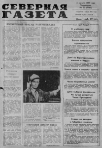 С Е В Е Р Н А Я Г А З Е Т А 2 а в гу с та 1999 года Понедельнк к № 5 0 (7 7 8 5 ) Издается с июля 1535 года Выходит 1 раз в неделю Ц ен а I руб. 6 0 коп. ВОСКРЕСНЫЙ У Р А Г А Н РА ЗБУШ Е ВАЛ СЯ В о с к р е с е н ь е , 1 » июля, обы чный вы х о дн ой ден ь. С утра светил о солныш к о , погода, была п р ек р а сн ая , ж арк ая . Ж и тели С е в е р н о г о зан им али сь дом ашними д е л а м и , которые накопились з а н е д е л ю . Кто о т правился на с е н о к о с , кто в л е с з а я г о д а м и , а кто п р ост о о т дыхал на б е р е г у реки или д о ма. В о второй пол ов ин е дня на н е б е у ж е начали с г у щ а т ь « , тучи. В пятом часу на ул и ц е ст ало п а с м у р н о , пош ел д о ж д ь . Но в д р у г н а л е т ел сильный вет ер и начался ливень , который п р о д о л ж а л с я 4 0 ми нут . С т ра ш н о бы л о выйти и з д о м а , з а окном в и д е л о с ь ж у т к о е з р е лище . Ураган б уш е в ал , казал о сь , что г л а з а ст али пл охо видеть. В с е о к у т а л а пелена д о ж д я . По крышам з а б а р а б а нил гр а д , человека он б ол ь ше в с е г о и п у г а е т . Н о он не п о ж а л ел т р у д о в с ель ч ан . В ц е нтре С е в ер н о г о градины были невелики. А вот ж и т ел я м ул и цы Октябрьской з а м е стом с о в с е м не посчастли ви лось. — П о сл е у р а г а н а в о г ор о д прост о не хв а т а л о см ел ости за х о д и т ь , — говорит 3 . И. Поветкина, — п ов сю д у л еж ал ,чгр ад величиной с гол у би н о е яйц о . Он пр о д о л ж а л сыпать ми ну т пять, ути х и з а т е м с новой си лой о бр уш и лся на з е млю. В с е овощи примял к з е мле. Листья капусты ст ояли п р о д ы р я в л е н н й е , сл ов но в них кто-то спец иальн о вырезал но ж ни цам и у з о р ы , у о г у р ц о в вмятины и трещины. Д о ч ь пенсионерки М. Я. Б а л аш овой под елил ась с нами горем: — Мама д а ж е плакала. Ж а лко, ой как ж алк о , ст ол ь к о з а б о т с этим о г о р о д о м . Н ач и наем р а б о т у весной и д о п о з дн ей о с е н и . Д о с т а л о с ь о г у р цам, по ним как кос ой п р о ш ли. К арт ош к а стоит как о б щипанная, лист ьев на ней м а ло о с т а л о с ь . А кап уст а и не зн а е м , о тр а с т е т или нет. Л у к весь ск р у т и л о , пригнуло . Б у д е м н а д ея т ь ся на* то, что б о г д а с т . Ураган , си л а ветра к о г о р о го д о с т и г а л а 2 5 метров в с е к у н д у , нан ес у щ е р б на с у м м у 4 8 тысяч р у б л е й пр едприя тию но эк сп л у а т ац и и к о м м у н а л ь ных э л е к т р о с е т е й . Подачу э л е кт роэнергии эн ергетики отклю чили полностью по в с ем у С е в ер н о м у на 3 часа в св я зи с мн огочисленными обрыва ми проводов. Вышли и з с т р о я р у бильники, п р е д о х р а н и т е л и на под стан ци и . Были п о в р еж д ен ы возд уш ны е линии 1 0 кВ на д в у х участках по у л . Калинина и один по ул . Чкалова. По у л и ц ам Октябрьской и Урицког о св ет был отклю чен д о у тр а . Работники э н е р г е т и ч е с кого пр едприя ти я вырубали в понедельник тополя и д р у г и е д ер ев ь я окол о 3 часов , т. к. ветви мешали восстанавливать п о в р еж д ен ны е элек тр оли ни и . В с е г о р а б о т ал о три бригады в с о с т а в е 1 6 человек. Р у к о в о д и тель пред приятия А . II. Н и китенко пояснил: — Причины п о в р еж д ен и й з ак лю чаю т ся в том, что ж и т е ли с е л а н е з а н им аю т с я п о д р е зк о й д ер ев ь ев . Они о бя заны п о д а ть заявки нам в том с л у ча е , е сли д е р е в ь я на х о д я а п в бли зи в оздушны х линий. Мы о с у щ е с т в л я е м отк лю чен ие э н е ргии. Согласно кал ь кул яц ии мы предъявили ш т р а ф на 1 5 2 р у б л я жительнице у л . Октяб рьск ой Л. Г. Ж у к о в о й , п р е д у п р ед и ли Г. Силакова, п р о ж и вающ е го по у л . М. Горького