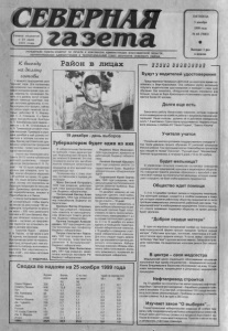У Ч Р Е Д И Т Е Л И Г А З Е Т Ы : К О М И Т Е Т ПО П Е Ч А Т И И ИНФОРМАЦИИ АДМИНИСТРАЦИИ Н О ВО СИБИ РСКО Й О Б Л А С Т И Т Е Р Р И Т О Р И А Л Ь Н А Я АДМИНИ СТРАЦИ Я И ТЕР Р И Т О Р И А Л Ь Н Ы Й С О В Е Т Д Е П У Т А Т О В С Е В Е Р Н О Г О РАЙ О Н А / ------------------- ------------ ” > v ПЯТНИЦА 3 декабря 1999 года № 68 (7 8 0 3 ) • Выходит 1 раз в неделю V J - Район в л и ц а х 19 д е к а б р я - д е н ь в ы б о р о в Губернатором будет один из них К выезду на деляну готовы У к а ж д о г о п р е д п р и я т и я с в о я “ г о р я ч а я " п о р а . Д л я к о л л е к т и в а л е с п р о м х о з а о н а н а ч и н а е т с я в с а м о е х о л о д н о е в р е м я г о д а , к о г д а , н а к о н е ц - т о , п р о м е р з а е т б о л о т о и в д е л я н у м о г у т о т п р а в л я т ь с я т я ж е л ы е т р а к т о р а : п о й д е т з а г о т о в к а д р е в е с и н ы . А ч т о б ы у с к о р и т ь э т о т п р о ц е с с , с е й ч а с п о т р а с с е х о д я т т а н к е т к и , на к о т о р ы х р а б о т а ю т М. Н. И в а н и ц кий, С. А . П л е х а н о в . А у б р и г а д и р а л е с о р у б о ч н о й б р и г а д ы 8 . П. Б а л а б а н о в а с в о я з а д а ч а - в м е с т е с В. М . С т е п а н о в ы м и А . Я. Т у к м а к о в ы м о н з а н я т о т в о д о м л е с о с е к и . П р и м е р н о в с е р е д и н е д е к а б р я в н е й д о л ж н ы п о я в и т ь с я в п о л н о м с о с т а в е в о с е м ь б р и г а д з а г о т о в и т е л е й д р е в е с и н ы с к о м п л е к т о м п р и д а н н о й им т е х н и к и - т р е м я т р а к т о р а м и и о д н о й м е х л о п а т о й . . - Н ы н ч е м ы п л а н и р у е м з а г о т о в и т ь 2 0 - 2 2 т ы с я ч и к у б о м е т р о в д е л о в о й д р е в е с и н ы , - г о в о р и т д и р е к т о р л е с п р о м х о з а Е. В. Л у - ш о в . - Н а 12 т ы с я ч к у б о м е т р о в д е л я н а у ж е о т в е д е н а , х о т я “ к у б и к " н ы н ч е о б о ш е л с я н е д е ш е в о - 36 р у б л е й н а к о р н ю . Н о д у м а е м , ч т о н а ш и з а т р а т ы о п р а в д а ю т с я , п о т о м у ч т о п о к у п а т е л ь н а б у д у щ у ю п р о д у к ц и ю и з л е с а у ж е е с т ь . Д р е в е с и н у , п р и т о м ч а с т и ч н о п е р е р а б о т а н н у ю , в о з ь м у т в Н о в о с и б и р с к е и в О м с к е . К с е з о н у л е с п р о м х о з г о т о в и л с я о с н о в а т е л ь н о : ч т о б ы е з д и т ь з а л е с о м на р а с с т о я н и е 180 к и л о м е т р о в , п о т р е б у е т с я ни м н о г о ни м а л о - 5 0 0 т о н н д и з е л ь н о г о т о п л и в а и 6 0 т о н н б е н з и н а . М а с л о у ж е з а п а с е н о п о л н о с т ь ю , г о р ю ч е е - ч а с т и ч н о , н о п р е д п р и я т и е н а д е е т с я н е о с т а н о в и т ь с е з о н в р а з г а р е з а г о т о в к и . - Г о р ю ч е е б у д е т , - у в е р е н Е. М. Л у ш о в , - в т о м ч и с л е и д л я 15 е д и н и ц л е с о в о з н о й т е х н и к и . К о л л е к т и в н а с т р о е н на н о р м а л ь н ы й т р у д , к о т о р ы й д а с т н а м в о з - м Ь ж н о с т ь и в п р е д ь в ы п л а ч и в а т ь з а р п л а т у б е з з а д о л ж е н н о с т и . Н а ш х л е б — э т о с е з о н з а г о т о в к и д р е в е с и н ы . О . Ф Е Д О Р О В А . В и з б и р а т е л ь н ы е б ю л л е т е н и по в ы б о р а м г л а в ы а д м и н и с т р а ц и и Н о в о с и б и р с к о й о б л а с т и б у д е т в н е с е н о 9 ф а м и л и й . Э то с т а л о и з в е с т н о п о с л е того, к а к о б л и з - б и р к о м з а в е р ш и л р е г и с т р а ц и ю к а н д и д а т о в на э тот в ы с о к и й г о с у д а р с т в е н н ы й пост. П о з н а к о м ь т е с ь с э т и м с п и с к о м , с о с т а в л е н н о м в п о р я д к е р е г и с т р а ц и и : М у х а В и т а л и й П е т р о в и ч , 1 9 3 6 го д а р о ж д е н и я , д е й с т в у ю щ и й гл а в а а д м и н и с т р а ц и и о б л а с т и . . В ы д в и н у т и з б и р а т е л я м и . Т о л о к о н с к и й В и к т о р А л е к с а н д р о в и ч , 1953 го да р о ж д е н и я , м э р Н ов ос и б и рс ка . В ы д в и н у т и з б и р а т е л 