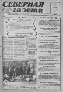 У Ч Р Е Д И Т Е Л И Г А З Е Т Ы : К О М И Т Е Т ПО П Е ЧА Т И И ИНФОРМАЦИИ АДМИНИСТРАЦИИ Н ОВОСИБИРСКОЙ О Б Л А С Т И Т Е Р Р И Т О Р И А Л Ь Н А Я АДМИНИСТРАЦИЯ И Т Е Р Р И Т О Р И А Л Ь Н Ы Й С О В ЕТ ДЕП У Т А ТО В С Е В Е Р Н О Г О РАЙОНА П Я Т Н И Ц А 28 апреля 2000 года № 17 ( 7 8 2 4 ) Выходит 1 раз в неделю И ИТОГАЛ« Н а с т у п а е т м а й , м е с я ц б о л ь ш и х з а б о т в с е х с е л ь с к и х ж и т е л е й . О т н ы н е к а ж д ы й д е н ь на у ч е т е и о т н е г о з а в и с и т р е з у л ь т а т г о д а . В п о л н е л о г и ч н о о т м е т и т ь в с а м о м н а ч а л е м а я п р а з д н и к В е с н ы и Т р у д а , н а й д я в р е м я и д л я в е с е л ь я и д л я р а б о т ы . Н а ч и н а е т с я д о л г а я с е л ь с к а я с т р а д а , к о т о р а я з а т р о н е т к а ж д о г о , кто х о т ь к а к - т о с в я з а н с з е м л е й . И н а д о с д е л а т ь в с е , ч т о б ы э т о т г о д не п о р о д и л о ч е р е д н ы х р а з о ч а р р в а н и й , а с т а л ш а г о м в п е р е д . П о з д р а в л я е м в с е х ж и т е л е й р а й о н а с Д н е м 1 М а я , ж е л а е м з д о р о - < в ь я , с ч а с т ь я , б л а г о п о л у ч и я , у с п е х о в в т р у д е , б о г а т ы х у р о ж а е в и п о л н ы х з а к р о м о в . Г л а в а т е р р и т о р и а л ь н о й а д м и н и с т р а ц и и Г. З Ы Р Я Н О В . П р е д с е д а т е л ь т е р р и т о р и а л ь н о г о С о в е т а д е п у т а т о в А . А К И Л И Н . С Е С С И Я Т Е Р РИ Т О РИ А Л Ь Н О ГО СО В ЕТ А Главными событиями 19 сессии терри ториального Совета депутатов с т а л и инф ор м а ци я о работе терри то ри ал ьн ой администрации за 1999 год и утверждение бюджета на этот год. Учитывая, что в последнее время а ктивно вела себя инициативная группа граждан, ставившая своей целью кадровые изменения в исполнительной власти р ай о на , м о ж н о б ы л о п р е д п о л о жить, что три б ун а се сси и буд ет использована для этого в полной мере На самом деле все прошло с п о койно и пра к ти ч е с ки никакой кр итики не п р о зв у ч а л о . Счита ть критикой предложение К. В. Пудова у б р а т ь из п р о е к т а р еш е н и я ср авнени е результатов э кономическом деятельности в 1998 и 1999 году вряд ли стоит. В п р ен и я х пр и н ял и у час тие : депутат Г. В. Баталова, заведующая биазинской участковой бо льницей; М. С. Сорок ин , руководитель АО им. Калинина; Г. Д. Багрова, начальник отдела территориальной администрации; С. П. Костин, санитарный врач района, д е путат; Г. И. Ивашкевич, директор хлебоприемного предприятия; В. Я. П и с а р е н к о , гл а в а Ф е д о р о в с к о й с е л ь с к о й а д м и н и с т р а ц и и ; Н. П. Краснов, глава Чувашинской сель ской администрации; Е. В. Яушов, д и р е к т о р л е с п р о м х о з а ; д е п у т а т Н. Н. Калмыков; депутат Г. Ф. Ке- мелева, учитель Северной средней школы; Н. К. Кутергин, консультант областной администрации. Всего на сессии было рассмотрено 12 вопросов. Принято решение об увеличении на 20 процентов платы за проезд на автобусном м а р ш р у т е С е в е р н о е -К у й б ы ш е в - Барабинск, утверждено положение “О плате за землю на территории Северного района", рассмотрены к а н д и д а т у р ы на с т е н д “Л у ч ш и е люди района” , освобождено от уплаты земельного налога террито риальное управление автомобиль ных дорог , утверждена смета расходов терри то ри ал ьн о го Совета депутатов. На этом сессия свою работу закончила. ? Р у к о в о д с т в о п о ж а р н о й ч а с т и № 6 7 п о з д р а в л я е т в е с ь л и ч н ы й с о с т а в и с в о и х п е н с и о н е р о в : Т . К. С т а ш к о , Н. М. В о л к о в а , И. П. С а в и н о в а , С. П. Я з о в с к о г о , В . В. Ц и р у к и н а , В. И. Б о л т ы ш е в а , Г. П. П е т 