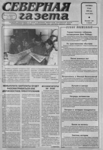 УЧРЕДИТЕЛИ ГАЗЕТЫ:КОМИТЕТ ПО ПЕЧАТИ И ИНФОРМАЦИИ АДМИНИСТРАЦИИ НОВОСИБИРСКОЙ ОБЛАСТИ, • ТЕРРИТОРИАЛЬНАЯ АДМИНИСТРАЦИЯ И ТЕРРИТОРИАЛЬНЫЙ СОВЕТ ДЕПУТАТОВ СЕВЕРНОГО РАЙОНА П Я Т Н И Ц А 19 мая 2000 года № 20 (7827) Выходит 1 раз с в неделю г N > Н е д а в н о у ч а щ и е с я ч е т в е р т о г о к л а с са С е в е р н о й с р е д н е й ш к о л ы в м е с т е с к л а с с н ы м р у к о в о д и т е л е м В. И. В и н о г р а д о в ы м п о б ы в а л и на э к с к у р с и и в р е д а к ции “ С е в е р н о й г а з е т ы ” . Р е б я т а и н т е р е - ! с о в а л и с ь , к а к г о т о в и т с я к в ы х о д у в с в е т I на ш а “ р а й о н к а ” . О н и с у д о в о л ь с т в и е м I о с м а т р и в а л и ф о т о л а б о р а т о р и ю , в к а б и н е т а х о т с о т р у д н и к о в у з н а л и о в с е х п р о ф е с с и я х , к о т о р ы е н у ж н ы г а з е т е . А на п р о щ а н ь е с д е л а л и с н и м о к на п а м я ть , и т е п е р ь о н и б у д у т ч и т а т ь , “ С е в е р н у ю га з е т у ” о с о б е н н о в н и м а т е л ь н о . На с н и м к е : э к с к у р с и я в “ р а й о н к у ” . Ф о то Т. Ш а л а ги н а . Н Е В Ы П Л А Т А З А Р П Л А ТЫ Б У Д Е Т РАССМАТРИВАТЬСЯ КАК Д О Л Ж Н О С Т Н О Е П Р Е С Т У П Л Е Н И Е На о черед ном радио совещании, ко торое п р о в е л с г л а в а м и с е л ь с к и х а д м и н и с т р а ц и й г у б е р н а т о р о б л а с ти В. А. Т о л о к о н с к и й , о с н о в н о й а к ц е н т б ы л с д е л а н н а о р г а н и з а ц и ю ве сен н и х п о л е в ы х р аб о т , з а в е р ш е н и е у ч е б н о г о года в ш к о л а х и итоги вып о л н ен и я п л а т е ж н о г о кален д а ря за апрель . • По о ц е н к е з а м е с т и т е л я г у б е р н а т о р а В. А . Г е р г е р т а п о л е в ы е р а б о т ы и д у т п о п л а н у . В с в о е м в ы с т у п л е н и и о н о с о б о е в н и м а н и е о б р а т и л на б е з у с л о в н о е в ы п о л н е н и е з а д а н и я по у в е л и ч е н и ю п о с е в н ы х п л о щ а д е й з е р н о в ы х ку л ь т у р , ка че с т в о и с р о к и с е в а . О б л а с т н о й б ю д ж е т в ы д е л и л на в е с н у 5 0 т ы с . т ГСМ, п р о ф и н а н с и р о в а л м е р о п р и я тия по б о р ь б е с с а ра нч о й , н аправил 26 м л н руб. н а з а п ч а с т и . С л о ж н о с ти е с ть во м н о г и х р а й о н а х , и в п е р в ую о ч е р е д ь о н и к а с а ю т с я о б е с п е ч е н н о с т и т о п л и в о м и м а с л а м и . Но к а к с к а з а л В. А . Т о л о к о н с к и й , р е ш е н и е б у д е т н а й д е н о д л я к а ж д о го из них. З а в е р ш е н и ю у ч е б н о г о го д а и о р г а н и з а ц и и л е т н е г о о т д ы х а б ы л о п о с в я щ е н о в ы с т у п л е н и е в и ц е - г у б е р н а т о р а А . Г. Ф и п и ч е в а . С к о р о п о с л е д н и й з в о н о к , э к з а м е н ы и ка н икулы , но р у к о в о д и т е л е й р айонов заб о т и т с е г о д н я н е т о л ь к о это. Н а ч и н а е т с я р а б о т а п о п о д г о т о в к е ш к о л к н о в о м у у ч е б н о м у г о д у и о с н о в н а я т я ж е с т ь л я ж е т на м е с т ны е бюджеты. Н о ка к б ы труд но не было. у ч р е ж д е н и я о бр а з о в а н и я 1 с е н т я б р я д о л ж н ы б ы т ь го то вы к п р и е м у у ч е н и к о в . Н а ч а л ь н и к у п р а в л е н и я ф и н а н с о в и н а л о г о в о й политики о б л а д м и н и с т р а ц и и С. В. А к с е н е н к о , п о д в е л и т о г и п о м о б и л и з а ц и и с р е д с т в в б ю д ж е т за а п р е л ь . П л а н и р о в а л о с ь в ц е л о м по о б л а с т и п о л у ч и т ь д о х о д ы в р а з м е р е 406,6 млн руб. Выпол н е н и е с о с т а в и л о 4 0 8 м л н р у б . О д нако перевыполнение обеспечено за с ч е т г о р о д а . А в о т б ю д ж е т ы р а й о нов н ед о п о л у чи л и 16 млн руб. Надо о т м е т и т ь , ч т о С е в е р н ы й р а й о н п о л у ч и л в а п р е л е с о б с т в е н н ы х д о х о д о в н а с у м м у 166 9 тыс . руб. п р и * п л а н е 1342 тыс. руб. Из них на вып л 