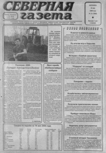 Газета издается (Г Í . с 20 июля 1935 года. г а з е т а УЧ РЕДИТЕЛИ Г А З Е Т Ы :КОМИТЕТ ПО ПЕЧАТИ И ИНФОРМАЦИИ АДМИНИСТРАЦИИ НОВОСИБИРСКОЙ ОБЛАСТИ, ТЕРРИТОРИАЛЬНАЯ АДМИНИСТРАЦИЯ И ТЕРРИТОРИАЛЬНЫЙ СОВЕТ ДЕПУТАТОВ СЕВЕРНОГО РАЙОНА Посевная -2000 Лучше прошлогоднего С т р а д а н а б р а л а т е м п ы и уж е о п р е д е л е н н о м о ж н о с к а з а т ь , к а ки е х о з я й с т в а с т а н у т п о б е д и т е л я м и в э т о й н а п р я ж е н н о й р а б о те О б с т а н о в к у р а з ъ я с н я е т гл а в ный а г р о н о м у п р а в л е н и я с е л ь с ко го х о з я й с т в а Г. Н. А к а т ь е в : - Г е н н а д и й Н и к о л а е в и ч , м о ж н о л и с е г о д н я г о в о р и т ь о т о м , ч т о п о с е в н а я и д е т и з а к о н ч и т с я б е з с р ы в о в ? - В о с н о в н о м п о ч т и по всем х о з я й с т в а м о б с т а н о в к а с т а б и л ь ная: на 18 м ая и з п л а н а 14 т ы с я ч г е к т а р о в п о с е я н о 4 8 9 2 ге кт ар а . Э то 34,9 п р о ц е н т а . За с у т к и и н о г д а п р и б а в к а б ы в а е т с в ы ш е 500 ге ктаров . С е ю т и п ш е н и ц у и овес. В п р ош л ом го д у н а э т у д а т у бы л о за с е я н о в с е го 12,6 п р о ц е н т а от в е с е н н е г о з а д а н и я . З н а ч и т , е с ть у в е р е н н о с т ь , ч т о е с л и т а к д е л о п о й д е т и д а л ь ш е , т о х о з я й с т в а з а к о н ч а т с т р а д у б л а г о п о л у ч н о . • В к а к и х к о л х о з а х р а б о т а и д е т н а и б о л е е у с п е ш н о ? - Б о л е е п о л о в и н ы з а д а н и я в ы п о л н и л и м е х а н и з а т о р ы к о л х о за “ П а м я т ь Л е н и н а " . О н и п о с е я л и на 18 м ая 1543 г е к т а р а я р о в ы х з е р н о в ы х . З д е с ь на п о л я х р а з м е щ а ю т п ш е н и ц у , о в е с , я ч мень , о д н о л е т н и е . Х о р о ш р р а б о т а ю т п о л е в о д ы А О “ Н аш а Р о д и на". У н и х на с ч е т у т о ж е почти п о л о в и н а з а с е я н н о г о к л и на . Т а к же у с п е ш н о в е д у т п о с е в н у ю в АО “ Л у ч " , и м е н и К а л и н и н а , “ З аря " . - Н о е с т ь и х о з я й с т в а , г д е в е с е н н я я р а б о т а з а т я г и в а е т с я ? - К с о ж а л е н и ю , е с ть и т а к и е . Н ап р и м е р , т р е в о г у в н уш аю т д е л а в А О и м е н и М. Г о р ь ко го , гд е ещ е м н о г о в е с н о в с п а ш к и , а п о с е я н о в с е го в о с е м ь п р о ц е н т о в о т н а м е ч е н н о г о . Не л а д и т с я н ы н е ш н я я п о с е в н а я и в КП “ В о с х од " . В хо- з я й с т ё е н ад о п о д н я т ь 7 13 г е к т а ров в е с н о в с п а ш к и , но по ка из*них в с п а х а н о т о л ь к о 45. П о с ея н о з е р н о в ы х п р и м е р н о 14 п р о ц е н т о в от пл а н а . И в п о л н е м о ж е т с л у ч и т ь с я та к , ч т о п л а н ы з е м л е д е л ь ц е в по у в е л и ч е н и ю я р о в о го кл и н а не о с у щ е с т в л я т ь с я . П о ка л и ш ь 12,8 п р о ц е н т а з а н я т о з е р н о в ы м и и в к о л х о з е "V II с ъ е з д С о в е т о в " , но з д е с ь п о ч т и з а к о н ч и л и в е с н о в с п аш ку . • Г е н н а д и й Н и к о л а е в и ч , ч е м о т л и ч а е т с я н ы н е ш н я я в е с е н н я я к а м п а н и я в о р г а н и з а ц и о н н о м п л а н е ? - П р е ж д е все го, е е х а р а к т е р и з у е т о б щ и й п о л о ж и т е л ь н ы й н а с т р о й . Л ю д и р а б о т а ю т на п р е д е л е с и л , с н а д е ж д о й на у р о ж а й . Е с т ь го р ю ч е е , д о в о л ь н о о с н о в а т е л ь н о б ы л о п о д г о т о в л е н а и т е х н и к а . Э т о г л а в н ы е с л а г а е м ы е с л а ж е н н о г о т р у д а . О. ФЕДОРОВА. На с н и м к е нашего фотокорреспондента Т. Шал а вина А л е к с е й Д р у з е л е в и ч . Это его п е р вая посевная. Р е п о р т а ж о х о д е р а б о т ы на п о л я х АО имени Калинина читайте на второй ст ра нице Пресс-служба обладминистрации сообщает В Н о в о с и б и р с к о й о б л а с т и с е г о д н я в с а м о м р а з г а р е п о с е в ная ка м п а 