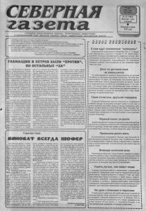 УЧРЕДИТЕЛИ Г А З Е Т Ы : КОЛЛЕКТИВ РЕДАКЦИИ, ТЕРРИТОРИАЛЬНАЯ АДМИНИСТРАЦИЯ И ТЕРРИТОРИАЛЬНЫЙ с о в е т ДЕПУТАТОВ с е в е р н о г о р а й о н а, а д м и н и с т р а ц и я н о в о с и б и р с к о й ОБЛАСТИ с 31 мая 2001 года ЧЕТВЕРГ № 22 (7 8 8 1 ) В ы х о д и т 1 раз в неделю О с н о в а н а в июне 1935 года .Ц е н а в розницу договорная Уважаемые работники культуры, ветераны культуры! 3 июня 2001 года объявлен в Новосибирской области Днем работников культуры. Накануне праздника примите слова искренней благодарности за ваш талант и доброе сердце, за ваше терпение, за ваше горение, за то, ч то Вы делаете жизнь многим светлее , радостнее, эмоциональнее. Вы помогаете забыть неудачи, поверить в себя! Вы раскрываете и поддерживаете Его Величество - Талант! Здоровья вам, творческих успе хов, удач, счастья на все времена. И. о. главы территориальной администрации А. КОЗУБЕЦ. Председатель территориального Совета депутатов А . АКИЛИН . ГЛАМАЗДИН И ПЕТРОВ БЫЛИ “ ПРОТИВ” , НО ОС ТАЛ ЬНЫ Е “ З А ” 23 мая состоялась очередная сессия террито ри а л ьн о го Совета депутатов. На обсуждение было вынесено 10 вопросов, из которых, как и следовало ожидать, самым д и с куссионным оказался второй - о наказах избирателей. На сходах, которые прошли в селах района, избиратели давали наказы своим избранникам. На основании их был подготовлен проект. Сложность состояла в том, ч то за тр а ты на их выполнение должны соотве тс тво вать ф и н ан с о вы м во змож ностям района, на вы полнение же всех наказов не хватило бы никакого бюджета. У ч и т ы в а я э т о , р а з р а б о т ч и к и проекта выделили три главных нап р а в л е н и я - б л а го у с т р о й с т в о , стро ительство и обеспечение населе ния водой. Тон обсуждению задал депутат А. Н. Бирюков. Он засомневался в реальности сроков заверш е н и я с т р о и т е л ь с т в а О с т я ц к о й шк олы и по с та ви л в о п ро с об а с фальтировании улиц в Остяцке и Биазе. Удалось дока зать , что асфальт тре б уе т слишком больших вложений и пока не по карману. С л е д у ю щ и м и во з м у т и те л я м и спокойствия стали депутаты из Коб. Кордона и Чув ашей П. И. Гламаздин и С. А. Петров. Петр Максимович настаивал на включение в программу щебенения 9 км доро ги до Коб. Кордона, а Сергей Ал ек сандрович требовал принять к исполнению созд ание в Чувашах предприятия по переработке древесины. Сегодня в этом селе нет ни одного предприя тия и проблема занятости стоит крайне остро. В полемику вступил и глава муниципального образования Н. П. Краснов, который также настаивал на включении наказов в программу. Все решило голосование, в резуль тате которого проект остался без изменения. Депутат И. В. Путинцев поставил вопрос о кирпичном заводе и обесп е ч е н и и н ас е л е н и я ки р п и чо м . На первый взгляд, проблема остра, но выяснилось, что кирпич, который был завезен в район для населения, пролежал на территории одного из предприятий около полугода нев остребованным. Самым разумным посчитали вариант, когда заявки на кирпич собираются в сельских администрациях, а затем делается заказ. Наказы депутаты утвердил и , в одном из номеров газеты они буд ут опубликованы и читатели смогу т у з нать, что принято к исполнению из того большого списка, который был с о с т а в л е н п о с л е с х о д о в . Кроме того, заместителю главы территориальной администрации В. А. Степа нову было п р ед л ож ен о вы с т у пить в газете и разъяснить, почему о