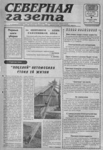СЕВЕРНАЯ Г 13 сентября N 2001 года V Ч Е Т ВЕР Г ) № 37 (7896) Выходит 1 раз в неделю Основана в июне 1935 года Цена в розницу договорная V------------------------------------ / П ервы е ш а ги уборки По о п е р а т и в н ы м д а н н ы м на 5 с е н т я б р я в х о з я й с т в а х р а й о н а с е н а з а г о т о в л е н о 6 0 % к п л а н у , с и л о с а 3 7 , 1 , с е н а ж а 71 ,5 . З е р н о в ы х у б р а но с п л о щ а д и 196 га, у р о ж а й ность с о с т а в и л а 18,4 ц е н т н е ра с г е к т а р а . П я т ь х о з я й с т в на э ту д а т у е щ е не п р и с т у пи ли к у б о р к е х л е б а . Всего м е х а н и з а т о р а м р а й о н а п р е д с т о и т у б р а т ь б о л е е 13 ты с . га. Горячая тема 14 «ВЯЯ 'ЯВгРЯ - лш шв» У в а ж а е м ы е р а б о т н и к и л е с а С е в е р н о г о р а й о н а , п о з д р а в л я е м в а с с н а с т у п а ю щ и м п р о ф е с с и о н а л ь н ы м п р а з д н и к о м . Ж е л а е м в с е м к р е п к о г о з д о р о в ь я , с ч а с т ья , с е м е й н о г о д о с т а т к а , у с п е х о в в п р и у м н о ж е н и и л е с н ы х б о г а т с тв р а йона . В в аш и х руках б у д у щ е е з д о р о в ь е р а й о н а и е го э к о н о м и ч е с к и е у с п е х и в п е р с п е к ти в е . В ы р а ж а ем у в е р е н н о с т ь , ч т о эти руки н а д е ж н ы е и кр е п к и е . Г л а в а т е р р и т о р и а л ь н о й а д м и н и с т р а ц и и Г, З Ы Р Я Н О В . П р е д с е д а т е л ь т е р р и т о р и а л ь н о г о С о в е т а А . А К И Л И Н . и П О Ц Е Л У Й " ПОТОМ ОБИ Л Я С ТО И Л ЕЙ Ж И З Н И П е ч а л ь н о м о р г н у в п а р у раз , с в е т в с е - т а к и о к о н ч а т е л ь н о п о г а с . “ С т р а н н о , в р о д е ни г р о з ы , ни в е т р а н е т , - у д и в и л и с ь мы, - ну о н о и к л у ч ш е м у ” . В р е м я п о ч т и о д и н н а д ц а т ь в е ч е р а и м о ж н о л о ж и т ь с я с п а т ь . В п е р и о д о с е н н е й у б о р к и э т о д а ж е к а к п о д а р о к - в о з м о ж н о с т ь о т д о х н у т ь . Н о и у т р о м в ы к л ю ч а т е л ь ^ н и к а к н е р е а г и р о в а л н а н е д о - ” у м е н н о е п о щ е л к и в а н и е л ю д е й . П р и ч и н а п о г р у ж е н и я з н а ч и т е л ь н о й ч а с т и р а й ц е н т р а в т ь м у с т а л а я с н а ч у т ь п о з ж е . О к а з а л о с ь , ч т о н а ц е н т р а л ь н о й у л и ц е Л е н и н а , з а д р а в с в о и т р у х л я в ы е “ н о ж к и ” л е ж и т н а б о к у э л е к т р о о п о р а . П р о х о д я щ и е м и м о н е е с е в е р я н е у д и в л е н н о п о ж и м а л и п л е ч а м и , г а д а я о п р и ч и н е е е п а д е н и я . М а с с и в н а я А - о б р а з н а я о п о р а п р а к т и ч е с к и с о в с е х с т о р о н б ы л а з а к р ы т а д р у г и м и о б ъ е к т а м и и п о д ъ е х а т ь к н е й , к а з а л о с ь , н е в о з м о ж н о . Л и ш ь о д и н ч е л о в е к к а ж д ы й д е н ь б у к в а л ь н о к р а л с я м и м о н е е н а с в о е й м а ш и н е к д о м у . В г л у б и н е д в о р о в д в у х э т а ж е к з а т а и л о с ь ж и л и щ е г р а ж д а н и н а С е м е н о в а . За м н о г о л е т о н в р о д е б ы в с о в е р ш е н с т в е о с в о и л к р у т ы е в и р а ж и д о р о г и к р о д н о м у о ч а г у . Н о н а э т о т р а з п о д в ы п и в ш и й г л а з п о д в е л , и к р ы л о г р у з о в и ка " н е ж н о п о т е р л о с ь ” о в о з в ы ш а ю щ е е с я с о о р у ж е н и е . О т т а к о й “л а с к и " с т о л б , п о в с е й в и д и м о с т и , о ш а л е л о т с ч а с т ь я , ч т о и н а н е г о о б р а т и л и в н и м а н и е , и н е з а м е д л и т е л ь н о р у х н у л . С л е д с т в е н н ы й э к с п е р и м е н т п о д т в е р д и л н а е з д , н о н а м а ш и н е н е о к а з а л о с ь н и е д и н о г о с л е д а с т о л к н о в е н и я . П о в с е й в и д и м о с т и , о п о р а з а в а л и л а с ь б ы д а ж е в т о м с л у ч а е , е с л и б ы г р а ж д а н и н С е м е н о в “ о б н я л " е е с а м о л и ч н о . Н о т е п е р ь с д е л а т ь э т о б у д е т н е м н о г о с л о ж н е е , т а к к а к у ж е у т р о м э н е р