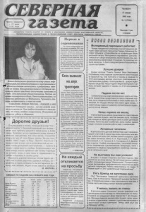 СЕВЕРНАЯ га з е т а У Ч Р Е Д И Т Е Л И Г А З Е Т Ы : КОМИТЕТ ПО П Е Ч А Т И И ИНФОРМАЦИИ АДМИНИСТРАЦИИ НОВОСИБИРСКОЙ О БЛ А С Т И Т Е Р Р И Т О Р И А Л Ь Н А Я АДМИНИСТРАЦИЯ И Т Е Р Р И Т О Р И А Л Ь Н Ы Й С О В Е Т Д Е П У Т А Т О В С Е В Е Р Н О Г О РАЙОНА Е л е н а А н т и п к и н а п р и е х а л а н а е л к у г л а в ы т е р р и т о р и а л ь н о й а д м и н и с т р а ц и и с н а с т р о е н и е м и у д о в о л ь с т в и е м в е с е л и л а с ь и р а д о в а л а с ь в м е ст е со в семи . В о с ь м и к л а с с н и ц а из О ст я ц к а з а с л у ж и л а э т о т п р а з д н и к о т л и ч н ы м и у с п е х а м и в уч ебе . О на а к т и в н а я о б щ е ст в е н н и ц а . Л ет о м , во в ремя п и о н е р с к о г о сбора, Л е н а п о зн а к ом ил а с ь со м н о г и м и р е б я т а м и из Ф е д о р о в к и , Ч уваш ей и т еп е р ь в с т р е т и л а с ь с н и м и на елке. - С е р ь е з н а я , д о б р а я д е в о ч к а , - г о в о р я т о н е й у ч и т е л я О с т я ц к о й ш ко лы , - н а н е е в с е г д а м о ж но п о л о ж и т ь с я . О н а л ю б и т в о з и т ь с я с м а л ы ш ней, е е о ч е н ь л ю б я т с в е р с т н и к и . П о ж е л а е м ей у с п е х о в , у д а ч и и зд о р о в ь я . Дорогие друзья! Подпи сы ваем в печать о ч е р е д н о й номер " С е верной газеты" с большой надеждой , что он при — н е с е т хо т ь чуточку радости в ваши дома, в ваши семьи. К он ечн о , н е в се материалы в нем легкие и веселые, о н и разные, как сама ж и зн ь . Случается в сякое и, мы о б этом б удем писать. Не для того, чтобы с е я т ь с т р а х и б е д у . П р о с т о б о р о т ь с я с трудн о стям и в м е р у сил и в о зм о ж н о с т е й мы м о ж е м только доступным нам о р у ж и е м — словом, и только с вами вместе, с о общ а . Хочется верить, что этот н о м е р газеты п р и н е с е т вам толику надежды на лучш ее , веры в свои силы и справедливость, любви к близким, к с в о е м у дом у . Надеемся, д о р о г и е читатели, что вы б у д е т е пи — сать нам о с в о и х радостях, удачах и п о б еда х , п о делитесь и горем, и б е д о ю . А мы постараемся п о мочь, как с м о ж е м . Ж д е м от вас пи сем и звонков. Н . Ж О Р О В А . СВОДКА ПО НАДОЯМ НА 8 ЯНВАРЯ 2002 ГОДА Фураж валов сдано удой на корову коров надой зачет 2 0 0 2 2001 Наша Родина 221 4 , 8 3 , 4 2 , 2 3,1 Память Ленина 5 0 4 14 ,9 1 1 ,2 2 , 9 2 , 4 Луч 1 5 6 3,1 2 , 4 2 1 ,6 Им Калинина 8 6 1,3 0 , 8 1 ,5 2 , 9 Восход 2 2 4 2 , 5 2 , 0 1,1 0 , 7 Заветы Ильича 1 6 7 3,1 2 , 7 1,8 0 , 9 Им. М. Горького 1 5 4 7 . 3 5 , 4 4 , 7 2 , 4 Заря 1 2 5 1,4 1,1 1.1 0 , 8 Россия 80 1,3 0 , 9 1 ,5 1 ,9 VII съезд Советов 1 6 5 5,1 3 , 6 3 4 Им. К. Маркса 2 4 0 2 , 4 2 , 7 1 1.1 И Т О Г 2122 47,1 36,2 2,2 2 Первые в соревновании По итогам соревнования животноводов за декабрь 2001 года первое место присуждено акцион е р н о м у о б щ е с т в у и м е н и М. Горького, где лучшие показатели по производству молока и мяса, среднесуточным привесам, надоям, по увеличению поголовья скота и его сохранности в зимний период. Второе место присуждено акционерному обществу "Заветы Ильича”, третье - коллективному предприятию “Восход”. Ч Е Т В Е Р Г 17 января 2002 года № 3 ( 7914 ) Выходит 1 р а з в неделю 1 ------------------------ Г л Сено вывозят на двух тракторах Полеводы акционерного общества “Заря" заготовили к зимнему периоду 5 2 0 0 центн еров сена. Но на этом их вклад в животноводство не был окончен: с осени они приступили к вывозке кормов на склады, обеспечивая полноценный рацион скоту . И сейчас еше работа идет еж е д невно, - в рейсы отправляются механизаторы Николай Васильевич Трофимов и Алексей Леонидович Петров. А в помощниках у них Сергей Иванович Иванченко и Михаил Викторович Трепов. Они прицепщики и дело свое знают досконально, та к же, как и