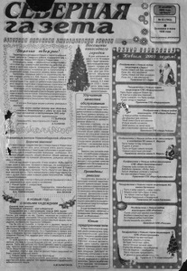 "Ж у с р и ъ крьдо'ЛтъесйЬся я а с и е р я ъ к ь м с м г б ' Ь » Что может сказать о себе человек, который прожил на свете все д ва десятка лет? Наверное, не очень много, поскольку все у него впереди, как у Маътонат Петровой, девушки с прекрасными черными глазами. Для нее Новый год - это надежды и мечты о будущем, о любви и счастье. -Недавно я познакомилась с парнем, которого зовут Алексей, - говорит она, - по-моему этО самое светлое и радостное событие уходящего года И я мечтаю о том, чтобы наше зн акомство про должилось, чтобы мы понимали друг друга, и Маътонат родилась и детство провела в Средней Азии, где все другое - и природа, и о б у ч а й , и жизнь. А впечатления детства, как известно, самые сильные, может поэтому она сле гка грустит в сибирском селе о городе, но верит в то. что в ее жизни все устроится хорошо: наступающий год принесет интересную работу, а родителям и братику - здоровье, хорошее самочувствие и настроение А пока девушка осваивает профессию продавца и радуется жизни. На сн и м к е : М. ПЕТРОВА. Ф о т о Т. Ш А Л А Г И Н А .J Теплей человеку в дорогах тяжелых , В суровом краю от тоао, — _ Что где-то на свете есть милая школа" Есть добрая школа его . С е в е р н а я с р е д н я я о б щ е о б р а з о в а т е л ь н а я ш к о л а пр и гл аш а е т вы п у с к ни ко в п р ош л ы х ” ле т на с в о й 65 -ле тни й юбилей. Школа распахнет для вас свои двери 1 ф е в р ал я 2 0 0 3 г. в 18 часов . Н а с т о я щ а я п р е с с - к о н ф е р е н ц и я В Северной средней школе прошел вечер на тему «Здоровый образ жизни и жизнь без наркотиков». На этом вечере учащиеся старших классов встретились с ведущими врачами-наркологами страны в роли которых выступали ученики 10в класса Марина Юдина, Юля 1аршина, Олеся Петрова, Паша Гусев, Коля Михайлов, Миша Савиц- кии Ребята настолько вошли в свои роли, что присутствующим каза- Л<Хг ^ ЧТ° пеРед мими ^ ученики из 10в, а настоящие врачи-наркологи Отвечая на вопросы ведущих, Олеси Кононовой, Лены Виноградовой, они основательно объяснили, что такое наркотики их происхождение и влияние на организм человека. Ребята ответили на многие вопросы актуальные в наше время Получилась настоящая пресс-конференция, и все присутствующими получили массу полезной информации. Т. ПАВЛОВА, ст. пионервожатая З а п р е щ е н а п р о д а ж а ■По ста новле нием главы территориальной а д м и н и страции № 805 от 18 12 2002 г. запрещена реализация пиротехнических средств на территории рынка (кроме специализированных магазинов), продажа пиротехники лицам не д о с т и г шим 16 лет, использование пиротехнических изделий' при по ове дении праздничных мероприятий в зданиях и помещениях гюед- приятий и учреждений, а также культурно-досуговых, образовательных учреждениях и на прилегающих к ним территориях «Р о с си й ск о е игристое» и баночка икры Магазины уже давно украшены блестящей мишурой, напоминая покупателям о приближающемся празднике и призывая сделать покупки «Скоро Новый год, - убеждала я сама себя, - Давай. Шевелись. Надо подготовиться. Ведь ты так любишь этот праздник». Но то чувство приятного волнения, которое начинается еще задолго до 31 декабря, так и не посетило меня. Я уже было совсем загрустила, но вдруг, как это обычно бывает, прокатился слух, что в городе продукты подорожали, значит и у нас жди повышения цен. «Ну, уж нет, - думаю - Надо хоть шампанского купить». Домой я вернулась с двумя зелеными холодными б