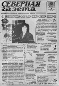 СЕВЕРНАЯ Г ¡ШИШВШВЕЕВШВШШВВШВЕШЕЕЕВВВ ВВЕВОВ С6 м а р та 2003 го д а ЧЕТВ ЕР Г I №10(7973) Основана в июне 1935 года Цена в р озн и ц у д о го в о р н а я | ' ........ <5 М Ж 5ч > п л и ъ шим актив М и лы е ж е н щ и н ы / Примите наши сам ы е искренние и сердечные поздравления с замечательным весенним, несущим тепло и радость в Ваши сердца, с праздником женского очарования! В этот с ве т лы й праздник мы отдаем д а н ь глубокого уважения, при з н а тел ьн ос т и В а м - женщины, хр анительницам домашнего очага, труженикам района. З а стойкость и красоту, за силу безграничной женской любви, позволяющей во в се времена с о х р а нять мудрость , надежду и веру во в се д о б р о е и светлое. Пусть в В аш и х д о м а х всегда царит достаток, чуткость и взаимопонимание. Будьте счастливы, красивы, любимы , от всех бед хранимы! С теплом. С надеждами. Отдел образования территориальной администрации Р а й о н н ы й с о в е т женщин п о з д р а в л я е т всех женщин р а йо н а с М ежд ународным женским днем ! Б у д ь т е вечно желанны И в се м и любимы , В се ад а о б а я т е л ь н ы И н е о т р а з и м ы . Гл а за в аш и с ч а с т ь е м П у с т ь вечны м с и я ю т , А в ж изни в ас т о л ь к о Д р у зь я о к р у ж а ю т Доро гие женщины! Примите сердечные поздравления с праздником 8 Марта! П у с т ь в с е е т е дня п о т у х н у т все печали, П у с т ь с б у д у т с я все ж енские м е ч т ы , Ж елаем, ч т о б всеада вы освещ али Д о р о а у жизни с в е т о м к р а с о т ы . Мужчины отдела культуры территориальной администрации С праздником, уважаемые жительницы\ Северного района! Приближается 8 марта. Каждый год этот праздник кажется необыкновенным. Мно гие ждут его с нетерпением, потому что в ме с те с ним пц^ходит в е сна В этот з а м е ч а т е л ь н ы й д е н ь хочется пожелать всем жительницам района, которые трудились, трудя тся и будут трудиться в р а з личных сферах , внося тем с а м ы м неоценимый вклад в соци ал ьн о - экономическое развитие нашей территории: ‘ Ч т о б ы р а д о с т ь в се р д ц а х не р а с т а я л а , Ч т о б ы вновь х о т е л о с ь п о в т о р е н и я О ч ень с к о р о г о т а к о а о же дня И любви, и т е п л а с вдохновением. По з д р а в л я ем с праздником! Ж е л а е м здоровья, счастья, мира, семейного благополучия, удачи во всех делах! Глава терри ториал ьной П р е д с е д а т е л ь терри то риал ьно го Сов е та депутатов Г.Г. З Ы Р Я Н О В А .П . А К И Л И Н ■ % - « ■ « г ^ Милые ж е нщ и ны ! Лю б и м ы е наш и мамы, жены , дочери! Д о р о г и е подруги, у в аж а ем ы е коллеги ! П о з д р а в л я е м В а с с международным женским днем 8 марта! Он д а в н о с та л для всех нас праздником весны и надежды, н а шей лю бви к в ам - дорогим матерям, женам, сестрам, дочерям, н а шего уважения и преклонения перед Женщиной. С е годня вы освоили практически в с е п роф е сс и и Вы летаете в космос, руководите предприятиями, з а се д а е т е в Го сударственной Думе. Врач, учитель, библиотекарь -уже д а вн о эти с л о в а в осп ри нимаются как с л о в а женского рода Ж ен ским и стали целы е о тра с ли г ле гкая и п ищевая промышленность , торговля и сф е р а о б с л у живания Но вы не остана в лив а е те сь на этом. Вы служите в армии и даже пилотируете б о е вы е вертолеты. Но в лю б ую работу вы привносите м у д р о с т ь и обаяние, м и л о с е р д и е и очарование, нежность и чуткость. Вы - о п о р а сем ьи , хр анительницы д о м аш н е г о очага, нежные матери и за ботли вы е жены. Вы сильны духом, но можете позволить себе и сл а б о ст и . Вы украшае