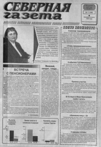 в т з в в т ■ м 24 апреля 2003 года Ч ЕТВЕРГ I № 1 7 ( 7 9 8 0 ) Основана в июне 1935 года Цена в розницу договорная Сх од г раждан В С Т Р Е Ч А С П Е Н С И О Н Е Р А М И О ч е р е д н о й с х о д г р а ж д а н п р о ш е л в а к т о в о м з а л е т е р р и т о р и а л ь н о й а д м и н и с т р а ц и и . Н а э т о т р а з в с т р е ч а с о с т о я л а с ь с п е н с и о н е р а м и р а й о н а . С у д я п о т о м у , ч т о п р и с у т с т в у ю щ и х б ы л п о л н ы й з а л , п о н я т н о , ч т о и н т е р е с к п о д о б н о м у м е р о п р и я т и ю у л ю д е й , н а х о д я щ и х с я на з а с л у ж е н н о м о т д ы х е , не у г а с . С х о д н а ч а л с я с к о р о т к о й с п р а в к и о с о с т о я н и и д е л п о в с е м с ф е р а м д е я т е л ь н о с т и н а ш е г о р а й о н а . П о о к о н ч а н и и о ф и ц и а л ь н о й ч а с т и , п е н с и о н е р ы з а д а в а л и в о п р о с ы . § п е к т р в о л н у ю щ и х п р о б л е м , к о т о р ы е п о д н и м а л и в з а л е , р а з н о о б р а з е н - о т с а м ы х п р о с т ы х , д о ч р е з в ы ч а й н ы х . П о с к о л ь к у н а ч а л а с ь вц,сна и и д е т и н т е н с и в н о е т а я н и е с н е г о в , т о м н о г и е в з в о л н о в а н ы р а з г о в о р а м и о п р е д п о л а г а е м о м п а в о д к е . Д л я и н ы х с а м о й в а ж н о й т е м о й б ы л о п о л о ж е н и е д о р о г в р а й о н е и С е в е р н о м . С о б р а в ш и х с я и н т е р е с о в а л о , е с т ь л и л ь г о т ы д л я п е н с и о н е р о в на п о к у п к у л е к а р с т в ? К т о п а т р у л и р у е т у л и ц ы с е л а п о с л е д в е н а д ц а т и ч а с о в н о ч и и о т в е ч а е т з а п о к о й ж и т е л е й ? Б у д е т ли в б л и ж а й ш е е в р е м я г а з и ф и к а ц и я в р а й о н е ? К а к и е м е р ы п р и м е н я ю т с я к с а м о г о н щ и к а м , и к а к и м с п о с о б о м и д е т б о р ь б а с н и м и ? К о г д а р е ш и т с я к а д р о в ы й в о п р о с в р а й о н н о й б о л ь н и ц е ? П е н с и о н е р ы о т к а з ы в а ю т с я о т д е н е ж н о й к о м п е н с а ц и и н а п о к у п к у д р о в и п р о с я т р е ш и т ь в о п р о с , ч т о б ы в м е с т о д е н е г п о л у ч а т ь д р о в а . Н а в с е в о п р о с ы с о б р а в ш и х с я о т в е ч а л и в е д у щ и е с п е ц и а л и с т ы р а й о н а , з а м е с т и т е л и г л а в ы т е р р и т о р и а л ь н о й а д м и н и с т р а ц и и . В о б с у ж д е н и и к а ж д о г о в о п р о с а п р и н и м а л у ч а с т и е Г . Г . З ы - р я н о в — г л а в а р а й о н н о й а д м и н и с т р а ц и и . С х о д г р а ж д а н п р о ш е л в с п о к о й н о й , д е л о в о й о б с т а н о в к е . С. ТО ПО РИЩ ЕВА Женщина руководитель - э/ тю^ не только ответственность. П р ежд е всего, это к л у б о к пр об лем п си хологического характера, который приходится ежедневно разматывать и при этом не забывать о главном —о человечности и способности у в а ж а т ь о к р у ж а ю щ и х . Этому Н.А.Макарова научилась давно. Строгая и к а т е г о р и ч н а я в н е ш н е , хрупкая и л е г ко ра ним а я в душе, Наталья Андр ее вна тонко чувствует того, кто рядом. На снимке Г.Топорищева: Н.А. МАКАРОВА Веселей, солдат, гляди .. . З а ко нч и л с я п е р вы й этап в е с е н не г о п р изы в а в а рм ию б у д у щ и х з а щ и т н и к о в Р о д и н ы : о н и прошли п р и з ы в н у ю к ом иссию , на ко то р ую п р и г л а ш а л и с ь 95 ю н о шей с о о т в е т с т в ую щ е г о возраста. Но не все н а д е н у т с о л д а т с к у ю ф о р м у - т о л ь к о 30 р еб я т б у д у т о с в а и в а т ь в о е н н у ю на уку и азы владени я о р уж и е м . Д в а д ц а т ь в о с е м ь п р и з ы в н и к о в по л у чи л и о т сро ч ку от сл ужб ы по п р ичине о б у чения в в ы с ш и х у ч е б н ы х з а в е д е ниях, д в е н а д ц а т ь о п р е д е л е ны в з а п а с по с о с т о я н и ю з д о р о в ь я : среди м олоды х л ю д е й п р и з ы в н о го в о зр а с т а е ст ь па 