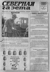 Ш Ш Ш М « Д Ш м м ш гязвяв Страда 2003 '"ПОПЕВ ЕПВЕЗВППЕПСтроительство РДК возобновлено С 7 августа возобновлено стр оительство районного Дома культуры. До завершения еще очень далеко, но сам факт того, что дело сдвинулось с мертвой точки, уже вселяет надежду на то, что у северян будет настоящий Дом культуры. Строительство финансируется из районного бюджета, плюс 5% налог с дочернего предприятия ООО "Управление технологического транспорта". План выполнили Первыми справились с сезонным заданием по заготовке сена полеводы акционерного общества имени Калинина. Они полностью создали необходимый запас грубых кормов, но работа продолжается. Слаженный коллектив В акционерном обществе «Заря» звено на заготовке сена возглавил В. С. Иванов. Коллектив начал работу на веселовских полях, где были хорошие травы. На пяти-шести тракторах механизаторы вели косовицу, а следом, с интервалом для просушки сена, шли уборочные агрегаты. Теперь здесь все убрано, и звено переправило технику на Чистое болото. Здесь решено на косовице оставить один трактор, потому что неубранных площадей остается немного. Сена заготовлено две третьих к плану. К юбилею района Продолжается подготовка к юбилею района. 8 августа гости областного центра, самодеятельные артисты Дворца культуры «Сиб- текстильмаша» проведут репетиции сценария. Закуплен материал для оформления. Подарок спортсменам День рождения района спортивная команда отдела по делам молодежи встретит в новых футболках, полученных в подарок'от первичной организации партии «Единая Россия». Готовность к новом у учебному году Почти все школы района готовы к новому учебному году. В Граж- данцевской школе осталось настелить линолеум, в Ударницкой - идет ремонт полов, а в Чебаковской меняется электропроводка. В Коб. Кордоне готовы оба здания: и старое, и новое. Учащиеся Остяцкой школы войдут в новое здание только к 1 октября, а пока занятия будут проводиться в старом, где произведен небольшой косметический ремонт. Верх-Красноярская, Биазинская, Федоровская, Витинская, Чува- шинская, Б - Куликовская и Бергульская школы готовы к началу занятий. настроены на победу Принимая рабочий план по заготовке кормов, новотроицкие механизаторы рассчитывали не про- стб выполнить задание , а значительно перекрыть его, хотя оно и т а к —самое большое по району. Фуража нынче не будет, - говорит председатель А. П. Малышев, - значит, вся надежда на сено. П р о д о л ж е н и е на 2 стр . __ _____________________________________ На снимке : председатель А. П. М А Л Ы Ш Е В , у Э С л а е е и ы е , и е е ш а По итогам соревнования полеводов, занятых заготовкой кормов, за декаду с 25.07. по 4.08. первое место присуждено С П К «Новотроицкий». Н а втором месте —акционерное общество «Заря», на третьем —акционерное общество имени Калинина. I____________________________________________________________________________ 1 СПК В о с х о д ' СПК Г р а ж д а н ц е в с к и й СПК О с т а н и н с к и й СПК Наша Р одина СПК В е р х - К р а с н о я р с к и й А МНОГО Л Ь корова дала молока на 7 августа? кх К .М а ркса АО и м . К а л и н и н а АО " З а р я ” СПК " Ф е д о р о в с к и й " СПК “ Р о с с и я ” СПК “ Н о в о т р о и ц к и й ” А главное, п е р в ы й прыжок с парашютом... Организована еще одна профильная смена. В команду входят подростки, состоящие на учете в органах внутренних дел. Ребята в течение 10 дней будут находиться в оздоровительно-спортивном лагере «Пилот». Про