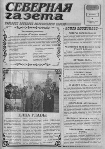 У важ аемы е работники редакции «С е в ер н а я газета»! Т е р р и т о р и а л ь н а я а д м и н и с т р а ц и я и т е р р и т о р и а л ь н ы й С о в е т д е п у т а т о в С е в е р н о г о ! р а й о н а п о з д р а в л я ю т в а с с п р о ф е с с и о н а л ь н ы м п р а з д н и к о м - Д н е м Р ос с и й с к о й п е ч а т и ! « « С е в е р н а я г а з е т а » з а н и м а е т д о с т о й н о е м е с т о в р яд у п е ч а т н ы х и з д а н и й . О н а н е с е т , л ю д я м с о о б щ е н и я о ж и з н и р а й о н а , о д е я т е л ь н о с т и о р г а н о в в л а с т и и м е с т н о г о с а м о у п > р а в н е н и я , а т а к ж е о л ю д я х р а й о н а . Ж е л а е м вам з д о р о в ь я , д о б р а , ус п е х ов , т в о р ч е с к о г о вд о х н о в е н и я и мудрых р е ш е н и й , пусть род ные и б л и з к и е д а р я т вам в н и м а н и е и лю б о в ь , аг* д е я т е л ь н о с т ь в « С е в е р н о й г а з е т е » о с т а в и т доб ры й с л е д в в а ш и х с у д ь б а х и в ист о р и и С е в е р н о г о р а й о н а . Г л а в а т е р р и т о р и а л ь н о й а д м и н и с т р а ц и и Г. Г. З Ы Р Я Н О В . В н е п р е д с к а з у е м о м и с л о ж н о м , Б е з д у ш н о м м и р е , где ж и в е м , Г а з е т а е с ть у н а с , где м ож но С к а з а т ь о ч е м - т о о с в о е м . Т оск у и б оль д р у з ь я м п о в е д а т ь , Иль р а д о с т ь вы п лесн уть д л я всех , П р е д с е д а т е л ь т е р р и т о р и а л ь н о г о С о в е т а д е п у т а т о в А .П .А К И Л И Н . С п р о с и т ь с о в е т а - ч т о ж е д е л а т ь , К а к о б у з д а т ь н уж д у и грех? С п а с и б о , у м н а я г а з е т а , З а е ж е д н е в н ы й д о б р ы й труд , З а правду, п оиск, л у ч и к свет а Т е б я читают , ч т у т и жд ут ! ЕЛКА ГЛАВЫ '■шппвз ензвиязеиизе I ЛИДЕРЫ СОРЕВНОВАНИЯ | П о и т о г а м с о р е в н о в а н и я ж и в о т н о в о д о в р а й о н а з а д е - I | к а б р ь 2 0 0 3 г о д а п е р в о е м е с т о п р и с у ж д е н о С П К « Р о с - ■ - с и я » , г д е н а и б о л е е в ы с о к и е п о к а з а т е л и п р о и з в о д с т в а ! ж и в о т н о в о д ч е с к о й п р о д у к ц и и , п р о д у к т и в н о с т и д о й н о г о ■ I с т а д а и с о х р а н н о с т и п о г о л о в ь я . В т о р о е м е с т о п р и с у ж д е - I | н о С П К « О с т а н и н с к и й » . Н а т р е т ь е м м е с т е - С П К « В О с - | I х о д » . j АБОНЕНТОВ ТЕЛЕФОННОЙ С Е Т И \ СТАНЕТ БОЛЬШЕ С е в е р н ы й Р У С п л а н и р у е т в б у д у щ е м з а м е н у т е л е ф о н - | | н о й с т а н ц и и с р а с ш и р е н и е м н о м е р н о й е м к о с т и . В м е с т о I | 1 6 0 0 и м е ю щ и х с я н о м е р о в б у д е т 2 0 0 0 . У ж е с е г о д н я а д м и - ■ • н и с т р а ц и я р а й о н н о г о у з л а с в я з и в е д е т а к т и в н у ю п е р е р е - ! j г и с т р а ц и ю ж е л а ю щ и х с т а т ь а б о н е н т о м т е л е ф о н н о й с е т и . • J с о т о в а я с в я з ь I Н а к о н е ц - т о в р а й о н е п о я в и л а с ь с о т о в а я с в я з ь , р е г и о - ■ I н а л ь н ы м п р е д с т а в и т е л е м к о т о р о й в ы с т у п и л а с и с т е м а М Т С I | G S M . Н а д а н н ы й м о м е н т с е в е р я н е м о г у т п о л ь з о в а т ь с я у с - I | л у г а м и т а р и ф а « Д ж и н с » с п о с е к у н д н о й и п о м и н у т н о й т а - ■ ■ р и ф и к а ц и я м и с о т с у т с т в и е м а б о н е н т н о й п л а т ы и у с л у г а м и ! ■ т а р и ф а « О п т и м а » , н о п р и у с л о в и и а б о н е н т н о й п л а т ы . j СОЦРАБОТНИКИ I ПОСЕТИЛИ ХРАМ О т д е л с о ц и а л ь н о й з а щ и т ы С е в е р н о г о р а й о н а и к о м п - ■ - л е к с н ы й ц е н т р с о ц о б е с п е ч е н и я н а с е л е н и я н а в е с т и л и д е - J т е й , п о с е щ а ю щ и х в о с к р е с н у ю ш к о л у п р и Х р а м е С в я т о й ■ I Т р о и ц ы , и в р у ч и л и к а ж д о м у н о в о г о д н и й п о д а р о к . В п р а з - I | д н и ч н о й ц е р е м о н и и п р и н я л у ч а с т и е о т е ц Д и о н и с и й . | В ЦЕНТРЕ СЕЛА - КАТОК \ Н а ц е н т р а л ь н о