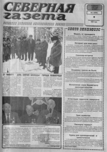5 февраля 2004 года ЧЕТВЕРГ Основана в июне 1935 года Е П П В В ¡ВВВШ ВВШ 1ВШ Медаль от президента За о т л и ч и е в о х р а н е о б щ е с т в е н н о г о п о р я д к а в р у ч е н ы п р а в и т е л ь с т в е н н ы е нагр а ды с т а р ш е м у л е й т е н а н т у м и л и ц и и Е. А . Неупокоеву и младшему инспектору по автотранспорту Б. В. Шабанскому Нагр аждение медалями прошло в торжестве нной обстановке. Интернет для всех школ С о г л а с н о п р е з и д е н т с к о й п р о г р а м м е о к о м п ь ю т е р и з а ц и и обр а зов а те л ь ны х учреждений, к оторая р аботает уже третий год, во всех с р е д н и х о б щ е о б р а з о в а т е л ь н ы х ш к о л а х н аш его района у с тан о в л е ны с п у т н и к о в ы е а н т е н ны у д а л е н н о го д о с т у п а И нтерне т. Так им о бразом , у у ч а щ и х с я э т и х ш к о л , а т а к о в ы х 7, е с т ь в о з м о ж н о с т ь п о л у ч а т ь д о п о л н и т е л ь ны е з нания путем выхода в Интернет. Семинар-встреча В г. Н о в о с и б и р с к е прош ел с е м и н а р - в с т р е ч а п ед аго гов с а в т ор ам и у ч е б н и к о в , р е к о м е н д о в а н н ы х М и н и с т е р с т в о м о б р а з о в а н и я РФ д л я о р г а н и з а ц и и о б у ч е н и я в 2 0 0 4 го д у . В с е м и н а р е п р и н я л и у ч а с т и е : р у к о в о д и т е л ь м е тод и ч ес к о го о б ъ е д и н е н и я у ч и т е л е й р у с с к о го я з ы к а и л и т е р а т у р ы Р. П. Гришко, д и р е к т о р у д а р н и ц к о й о с н о в н о й ш к о л ы В. И. Зак ам с ки й , м е тод и с ты Н. Ю. У с т ь я н ч и к и Н. А. В а л и у л и н а . П р и н я л а уч астие в се м и н а р е по о р га н и за ц и и и п р о в е д е н и ю м а т е м а т и ч е с к и х Я н в ар ь о зн а м ен о в а л себя п р и ход им р ес п и р а т о р н ы х з а б о л е в а н и й . Санэпиднадзор был вынужден р еко мендовать д иректорам ч еб а ко в с к ой , к о р д о н о в с к о й и с е в е р н о й ш к о л п р и о с т а н о в и т ь з а н я т и я , а г л а в а м муниципальных образований отменить все запланированные кул ь т ур но - массовые мероприя тия. По с т а т и с т и к е го с с ан э п и д н ад зо ра подъем ОРЗ не п р е в ы с и л 2 0 % планку и количество заб олевш их осталось на уровне пр ошлого года. Э т о говорит о том , ч то эпидемия гриппа в районе не з ар егис трирована. Исполнение норм бюджетного законодательства Проку ратура Северного района п ровела проверку и сп о л н е н и я н ор м б ю д ж е т н о го за к о н о д а т е л ь с тв а . П р о в е р к ой вы явлен ряд н а р у ш е н и й , в ч а с т н о с т и , все о р г а н ы м е с т н о г о г я м п у п п а в п о и и п и» __ ___ 27 ЯНВАРЯ ДЕНЬ СНЯТИЯ БЛОКАДЫ ГОРОДА ЛЕНИНГРАДА 60 лет назад си лами советских войск Ленинград был освобожден от 900-дневного изнурения. Наши земляки: В. Л. Юрьев, П. К. Шурмелев, Л. А. Глущенко и С. И. Аниброев принимали участие а боевых действиях за освобождение Ленинграда. В честь знаменитой годовщины у Монумента Славы в с. Северном Состоялся митинг. С поздравительной реяь£Сзыстулил глава муници- явльног т * - р а з е в а н и я села Северного А. И. Коновалов. Затем в Доме культуры состоялась встреча с участниками снятия блокады. Слово для доклада было предостав л ен о заместителю во енного к о миссара В. С. Лецу. Присутствующие слушали о тех страшных днях, которые болезненным эхом отдавались в сердцах тех, кто воочию видел весь ужас происходящего в те тяжелые блокадные дни. С ответным словом выступили ветераны. Для каждого участника освобождения Ленинграда был приготовлен памятный подарок, который вручил заместитель главы территориальной администрации В. А. Степанов. Учащиеся и педагогический с