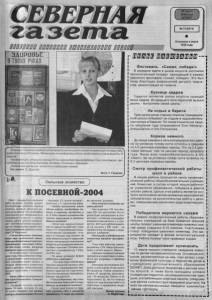 I ЗДОРОВЬЕ I ВТЙОИХРЧШ I э л е п р о б н а н а у ч н о - п р а к т и ч е с к а я к о н ф е р е н ц и я н а т е м у « З д о р о в о е п о к о л е н и е X X I в е к а » . М а т е р и а л ы н а к о н ф е р е н ц и ю б ы л и п р е д с т а в л е н ы у ч а щ и м и с я 9 и 10 к л а с с о в. ' К о н ф е р е н ц и ю о т к р ы л а у ч е н и ц а 1 0 « г » к л а с с а Е к а т е р и н а Д е д к о в а . О н а п о з н а к о м и л а п р и с у т с т в у ю щ и х с о с в о и м д о к л а д о м н а т е м у « П и т а н и е и з д о р о в ь е » .. . ( П о д р о б н ы й м а т е р и а л ч и т а й т е в с л е д у ю щ е м н о м е р е ) . Н а с н и м к е : Е . Д е д к о в а . Ф о т о Т. Г и л е в о й . С ел ь с к ое хозяйство К ПОСЕВНОЙ-2004 М а р т - п р е д в е с т н и к в е с е н н и х р а б о т на п о л я х , п о э т о м у д и к т у е т з е м л е д е л ь ц а м н а и б о л е е в а ж н ы е в о п р о с ы , к о т о р ы е п р е д с т о и т р е ш и ть д о их н а ч а л а . Ч т о н е о б х о д и м о п р е д п р и н я т ь д л я с в о е в р е м е н н о г о п р о в е д е н и я п о с е в н о й , и к а к о в ы п е р в ы е щ а г и в д а н н о м н а п р а в л е нии - о б э т о м с о с т о я л с я н а ш ра з г о в о р с о с п е ц и а л и с т о м п е р в о й к а те гории у п р а в л е н и я с е л ь с к о г о х о з я й с т в а Г. И. К и с е л е в о й . - Г а п и н а И в а н о в н а , к о м п л е к с к а к и х м е р п р е д л а г а е т з е м л е д е л ь ц а м д е п а р т а м е н т а г р о п р о м ы ш л е н н о г о к о м п л е к с а о б л а с т и д л я т о г о , ч т о б ы в е с е н н я я к а м п а н и я п р о ш л а у с п е ш н о ? - В с о о т в е т с т в и и с п о с т а н о в л е н и е м г л а в ы Н о в о с и б и р с к о й о б л а с т и д е п а р т а м е н т а г р о п р о м ы ш л е н н о г о к о м п л е к с а и з д а л п р и к а з , в к о т о р о м о б о з н а ч е н ы к о н к р е т н ы е с р о к и и д е й с т в и я , с т и м у л и р у ю щ и е п р о ц е с с п о д г о т о в к и к п о с е в н о й - 2 0 0 4 . - К а к и е з а д а ч и п о с т а в л е н ы в н е м п е р е д п о л е в о д а м и С е в е р н о г о р а й о н а ? - П о с е в н а я п л о щ а д ь д о л ж н а з а н я т ь 16 т ы с я ч г е к т а р о в . И з них 14 т ы с я ч о т в е д е н о п о д я р о в ы е кул ьтуры, в ч и с л е к о т о р ы х 12 т ы с я ч - з е р н о в ы е , 0 ,3 т ы с я ч и г е к т а р о в - с и л о с н ы е , 1 , 1 - о д н о л е т н и е т р а в ы . - Ч т о б ы в ы п о л н и т ь э т о т о б ъ е м р а б о т , н е о б х о д и м а п о м о щ ь в г о р ю ч е м , з а п ч а с т я х и т . д. К т о с т а н е т о с н о в н ы м д е л о в ы м п а р т н е р о м в р е ш е н и и д а н н ы х п р о б л е м ? - О б л а с т н а я а д м и н и с т р а ц и я уж е н е п е р в ы й г о д р а б о т а е т с н а м и ч е р е з Г У П « Н о в о с и б и р с к а я п р о д о в о л ь с т в е н н а я к о р п о р а ц и я » , к о т о р а я и в т е к у щ е м году в о з ь м е т на с е б я о б я з а т е л ь с т в а по п р е д о с т а в л е н и ю м а т е р и а л ь н о - т е х н и ч е с к и х р е с у р с о в д л я п р о в е д е н и я в е с е н н е - п о л е в ы х к ам п а н и й . П о с т а в к и д о л ж ны б ы т ь п р о и з в е д е н ы д о 1 а п р е л я 2 0 0 4 года. - Н а к а к и х у с л о в и я х б у д у т р а б о т а т ь п а р т н е р ы ? - П о с т а в к и б у д у т о б е с п е ч е н ы п о д с е м ь п р о ц е н т о в г о д о в ы х с о б я з а т е л ь н ы м п о д т в е р ж д е н и е м б а н к о в с к и х га р а н т и й или п о р у ч и т е л ь с т в о з а г о то в ит ел ь ны х , п е р е р а б а т ы в а ю щ и х п р ед п р и я т и й . - Га л и н а И в а н о в н а , к а к и к о г д а х о з я й с т в а б у д у т р а с с ч и т ы в а т ь с я з а т о в а р н ы й к р е д и т ? - Р а с ч е т п р е д п о л а г а е т с я б у д у щ и м у р о ж а е м л и б о в д е н е ж н о м э к в и в а л е н т е . И с к о р о м ы н а ч и н а е м з а к л ю ч а т ь д о г о в о р ы . - Ч т о п о л у ч а т п о л е в о д ы н а ш е г о р а й о н а ? - Н а м в ы д е л е н о 1 2 0 т о нн б е н зи на , 6 0 0 т о н н д и з т о 
