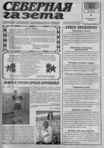 29 апреля 2004 года ЧЕТВЕРГ № 18 ( 8 0 1 8 ) О с н о в а н а в и ю н е 1 9 3 5 г о д а Д О Р О Г И Е З Е М Л Я К И ! П р и м и т е н а ш и и с к р е н н и е п о з д р а в л е н и я с п р а з д н и к ом В е с ны и Т р у д а ! С е г о д н я , к а к и п р е ж д е , мы о т м е ч а е м П е р в о м а й под з н а м е н а м и м и р а и т р у д а . С е г о д н я , как в с е г д а , мы д у м а е м о м и р е — д л я н а ш и х близких, н а ш и х з е м л я к о в , всех н а р о д о в н а З е м л е . С е г о д н я , к а к вс е г д а , мы д у м а е м о т р у д е — ак т и в н о м , т в о р ч е с к о м , с о з и д а т е л ь н о м . I М и р н ы й т р у д — э т о о с но в а н а ш и х д о с т и ж е н и й , б л а г о п о л у ч н о й ж и з н и лю д е й , б у д у щ е г о н а ш и х д е т е й . С П е р в о м а е м , д о р о г и е з е м л я к и ! П у с т ь э т о т д е н ь с н о в а о б ъ е д и н и т р а б о ч и х и к р е с т ь я н , , и н ж е н е р о в и у ченых , вр а ч е й и у ч и т е л е й — вс е х тр у ж е н и к о в н а ш е й о б л а с т и . Т е х , кто с в о им п р а з д н и к о м с ч и т а е т п р а з д н и к т р у д а - т р у д а в д о х но ве н н о г о , б л а г о д а т н о г о , с в е т л о г о . У с п е х о в вам во вс е х в а ш и х н а ч и н а н и я х ! К р е п к о г о вам здо р ов ья , с ч а с т ь я и б ла г о по л у ч ия ! Г у б е р н а т о р П р е д с е д а т е л ь Н ов о с и б и р с к о г о Н о в о с и б и р с к о й о б л а с т и о б л а с т н о г о С о в е т а д е п у т а т о в В . А . Т О Л О К О Н С К И Й . В .В . Л Е О Н О В . У в а ж а е м ы е ж и т е л и С е в е р н о г о р а й о н а ! П р и м и т е и с к р е н н и е и с е р д е ч н ы е п о з д р а в л е н и я с п р а з д н и к о м В е с н ы и Т р у д а ! П у с т ь р а д о с т н о е в е с е н н е е н а с т р о е н и е во й д е т в к а ж ды й д о м , в с е л и т н а д е ж д у и у в е р е н н о с т ь в з а в т р а ш н е м д н е , с п л о т и т в о б щ е м с т р е м л е н и и к б л а г о п о л у ч ию . Ж е л а е м в а м и в а ш и м с е м ь я м к р е п к о г о с и б и р с к о г о з доров ья , ч е л о в е ч е с к о г о т е п л а , з а бо ты и в н и м а н и я , д у х о в н о й к р е п о с т и , м и р а и покоя , с ч а с т ь я в каж д о м д о м е ! С ч а с т ь я в а м , здоровья , м и ра и д о б р а . В от и с н о в а в е с н а на пороге , П е р в о м а й в д о х н о в л я е т на труд ! П у с т ь п о д д е р ж и т вас в т р у д н о й д о р о г е Б л а г о д а т н ы й с е м е й ны й уют! П у с т ь с е р д ц а с о с л у ж и в ц е в с о гр е ю т О т н е в з г о д с о х р а н я т , как вс е г д а , И т о г д а в с е мы с м о ж е м , у с п е е м , И п р о с л а в я т с я н а ш и д е л а ! Г л а в а т е р р и т о р и а л ь н о й а д м и н и с т р а ц и и П р е д с е д а т е л ь т е р р и т о р и а л ь н о г о С е в е р н о г о р а й о н а Г. Г . З Ы Р Я Н О В . С о в е т а д е п у т а т о в А . П . А К И Л И Н . ЗОЛОТО И С Е Р ЕБ Р О БРАТЬЕВ К 0 РН Я К 0 ВЫ Х вать п е р в е н с т в о у к о н к у р е н т а , т е м б о л е е н а п о д ъ е м е “толчком" у с е в е р я н и н а р е з у л ь т а ты были г о р а з д о выше. В итоге А л е к с а н д р у д о с т а л о с ь в т о р о е м е с т о и с е р е б р я ная м е д а л ь . В л а д и м и р в с в о е й весовой к а т е г о р и и с т а л о б л а д а т е л е м з о л о т о й м е д а л и , н а б р а в в з а ч е т е 1 3 1 очко. Э т о поз во л ил о В. К о р н я к о в у с т а т ь д в у к р а т н ы м ч е м п и о н о м о б л а с т и , ч е т ы р е х к р а т н ы м п р и з е р о м и во й т и в с о с т а в о б л а с т н о й с б о р н о й . К р о м е то го, на к о н ф е р е н ц и и с п о р т см е н о в т я ж е л о а т л е т о в н а ш е г о з е м л я к а и з б р а л и п р е з и д е н т о м ф е д е р а ц и и по г ир е вом у с п о р т у . Т а к и х высоких р е га л и й н а ш р а й о н е щ е н е им ел. С . Т О П О Р И Щ Е В А . Н а с н и м к а х : б р а т ь я К О Р Н Я К О В Ы В Л А Д И М И Р и А Л Е К С А Н Д Р . Ф о т о Т . Г И Л Е В О Й . М а л о т о г о , ч т о гир ево й с 