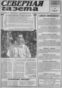 3 июня 2 00 4 года ЧЕТВЕРГ I № 23 (8023) Основана в июне 1935 года евввршяя ряВошшяя вш У в а ж а е м ы е ра б о тн и ки и в е те р аны кул ь ту ры ! 6 и ю н я в Н о в о с и б и р с к о й о б л а с т и о т м е ч а е т с я Д е н ь р а б о т н и к о в к у л ь т у р ы . О т в с е й д у ш и п о з д р а в л я е м в а с с п р о ф е с с и о н а л ь н ы м п р а з д н и к о м ! В н а ш и д н и б у р н ы х п е р е м е н м ы в н о в ь о б р а щ а е м с я к б о г а т о м у д у х о в н о м у н а с л е д и ю н а ш и х п р е д к о в , в о з р о ж д а е м с в о и к у л ь т у р н ы е и и с т о р и ч е с к и е т р а д и ц и и . К у л ь т у р н о - д о с у г о в ы е у ч р е ж д е н и я : д о м а к у л ь т у р ы , к л у б ы , б и б л и о т е к и , м у з е и , д е т с к а я Р ш к о л а и с к у с с т в , п о м о г а ю т а д а п т а ц и и с о в р е м е н н о г о ч е л о в е к а в о к р у ж а ю щ е м м и р е , п р и о б щ а ю т к и с п о л ь з о в а н и ю к у л ь т у р н ы х ц е н н о с т е й , а т а к ж е к с о з д а н и ю их, с п о с о б с т в у ю т о б щ е н и ю р а з н ы х п о к о л е н и й , в о с п и т ы в а ю т в л ю д я х г о р д о с т ь за п р о ш л о е и в е р у в б у д у щ ее . В к у л ь т у р е р а б о т а ю т п о д в и ж н и к и , э н т у з и а с т ы , л ю д и б о л ь ш о г о ч у в с т в а д о л г а . В ы р а ж а е м в а м с е р д е ч н у ю б л а г о д а р н о с т ь з а п р е д а н н о е т в о р ч е с к о е с л у ж е н и е с в о е м у д е л у . Ж е л а е м у с п е х о в в п р о ф е с с и о н а л ь н о й д е я т е л ь н о с т и , с ч а с т ь я , к р е п к о г о з д о р о в ь я , м и р а и д о б р а ! П е р в ы е на п о с е в н о й П о л е в о д ы р а й о н а з а в е р ш а ю т с т р а д у , к о т о р а я д л и т с я н е д о л г о , н о я в л я е т с я в а ж н е й ш е й в о в с е м ц и к л е в е с е н н е - л е т н е г о с е з о н а , т а к к а к о п р е д е л я е т г о т о в н о с т ь х о з я й с т в и к у б о р к е . Н а и б о л е е о р г а н и з о в а н н о , с в ы с о к и м и т е м п а м и р а б о т а л и м е х а н и з а т о р ы С П К " Р о с с и я ” , “ В о с х о д ” , “ Г р а ж д а н ц е в с к и й ” , им . К а л и н и н а . О н и п е р в ы м и з а к о н ч и л и р а з м е щ е н и е з е р н о в ы х на з а п л а н и р о в а н н ы х п л о щ а д я х . С е в з а в е р ш е н в о п т и м а л ь н ы е с р о к и . О с т а н и н ц ы д е р ж а т лидерство Г л а в а т е р р и т о р и а л ь н о й а д м и н и с т р а ц и и Г. Г. З Ы Р Я Н О В . З а м , п р е д с е д а т е л я т е р р и т о р и а л ь н о г о С о в е т а д е п у т а т о в В . Т. К О С Т Е Н К О . Солдат из Таманской дивизии Гва рд ей с к ая Т а м а н с к а я ди ви зи я п р ош л а с л а в н ы й б о е в о й пу ть . У ч а с тво ва л а в С м о л е н с к о м с р аж ении , в б и т в а х на О р л о в с к о - Б р я н с к о м на п р а в л е н и и , п о д К у р с к о м , в б о я х за Кавка з. Но о с о б е н н о о т л и ч и л а с ь в К е р ч е н с к о -Э л ь т и г е н с к о й д е с а н т н о й операции. Служ ить в ней всегда было п р е с т и ж н о и п о ч е т н о , п о э то м у , ко гд а п а р е н е к и з д а л е к о г о с и б и р с к о го поселк а Коб. Кордон Юрий Михайлов п опал т у д а на с л у ж б у , он знал , что п р о й д е т з д е с ь н а с т о я щ у ю с о л д а т с кую за к а л ку . -Хо тя , е с л и ч е с т н о с ка зать , вначале бы ло т ру д но , - го ворит он, - пос ко л ь ку д и в и з и я п о ка за тел ьн а я , ба зируе т ся в П о д м ос к ов ье и в ней все д о л ж н о с о о т в е т с т в о в а т ь в о и н с к и м традициям и уставу. Часто там бы ва- ■ 4 ют д е л е га ц и и из д р у ги х ч ас тей, п о то м у ч т о п о у ч и т ь с я , д е й с т в и т е л ь н о , есть чему. На нее ориентируются, она - пример, значит, н е д о д е р ж а т ь марку на высоте. И главное, ч то сразу по ня л Юрий, - э то н е о б х о д и м о с т ь т я ж е л о г о с о л д а т с к о г о труд а по о с в о е н и ю п р о ф е с сии, п р и з н а н и ю жесткой д и с 