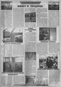 Леспромхоз "Северный" ЖИВУТ И ТРУДЯТСЯ В э т о м го д у р а б о ч и е О А О л е с п р о м х о з а « С е в е р н ы й » , н а х о д я щ е г о с я в п о с е л к е К о б . К о р д о н е , з а го т о в и л и 1 1938 к у б о м е т р о в д е л о в о й д р е в е с и н ы З а г о т о в к а ш л а в Т о м с ко й о б л а с ти в 1 6 0 -1 8 0 к и л о м е т р а х о т л е с п р о м х о з а . Т р у д и л и с ь э той з и м о й ч е т ы р е б р и г а д ы п о 8 ч е л о в е к и о б с л у ж и в а ю щ и й п е р с о н а л . Д л я н е с в е д у щ е г о ч е л о в е к а р а б о т а э т а к а ж е т с я д а ж е с р о м а н т и к о й н е м н о го : з а п а х т а й г и , б е л ы е с у г р о б ы с н е г а , р е в м о т о р о в т я ж е л ы х т р а к т о р о в , ч а й с б р у с н и ч н и к о м . . . Но д л я тех , кто о щ у т и л в сю тя ж е с т ь э то го т руд а , это, в п е р в у ю о ч е р е д ь , в ы м а т ы в а ю щ а я с и л ы р а б о т а . О б о й д я в с е ц е х а , у б е ж д а ю с ь в т о м , ч то р а б о т а и д е т п о л н ы м х о д о м , в с е з а н я т ы с в о и м д е л о м . Р а б о т а в л е с п р о м х о з е н а п р я ж е н н а я , т р е б у ю щ а я о т ч е л о в е к а п о л н о й о т д а ч и . П о о б щ а в ш и с ь с л ю д ь м и , д е л а ю в ы в о д , ч то з д е с ь н е т с л у ч а й н ы х , к а ж д ы й ч е л о в е к з а н и м а е т с в о е м е с т о и т р у д и т с я не п е р в ы й год. К п р имеру , г л а в н ы й м е х а н и к В а с и л и й И о с и ф о в и ч Р о д и о н ч и к . П оч ти 18 л е т т р у д и т с я о н з д е с ь , н о г о в о р и т ь о с е б е не с т а л . А в о т т е , к т о р а б о т а е т р я д о м с н и м , о т з ы в а ю т с я о н е м п о л о ж и т е л ь н о . Р а б о т ы у него в се гд а м н о го , т а к к а к и м а ш и н и т р а к т о р о в в х о з я й с т в е д о с т а то ч н о , и все они , к с о ж а л е н и ю , и м е ю т с в о й с т в о л о м а т ь с я . П о э т о м у п р и х о д и т с я В. И. Р о д и о н ч и к у к а т а т ь с я , к а к говорят , по б е л у с в е т у в п о и с к а х з а п ч а с т е й . Т е х н и к а на р е м о н т е д о л г о н и к о гд а не п р о с т а и в а ет, в е д ь м о ж е т б ы т ь и та к : с л о м а л с я т р а к т о р , з а н я т ы й н а п о г р у з к е л е с а , и в с я о с т а л ь н а я т е х н и к а т ож е встает. А п р о с т о й в с е г д а о значает т о л ь к о о д н о —б о л е е н и з к у ю за р а б о т н у ю плату. П р о б л е м здесь, к а к и в е з д е , м н о г о , а о д н а и з н и х - н е х в а т к а р а б о ч и х рук. М о л о д ы х р аб о т н и к о в м а л о . С т а р о ж и л ы л е с п р о м х о з а у в е р е н ы , ч т о о с н о в н о й п р и ч и ной я в л я е т с я не н и з к а я з а р п л а т а , а н е ж е л а н и е м о л о д ы х л ю д е й т р у д и т ь с я . П о п р о б о в а в х о ть о д и н р а з , к а к д о с т а ю т с я д е н ь г и , о н и н а в с е г д а б е г у т из д е р е в н и в п о и с к а х « л е г кого х л е б а » . А ч т о к а с а е т с я з а р п л а т ы , т о н е в с е т а к у ж и п л а ч е в н о . Н а л и ч к а б ы в а е т не в с е гд а , н о п о д з а р а б о т а н н ы е д е н ь г и м о ж н о в з я т ь п р о д у к т ы , м е б е л ь , э л е к т р о б ы т о в ы е п р и б о р ы . В л е т н и й п е р и о д р а б о ч и е , ко т о р ы е б ы л и з а н я т ы на з а г о т о в к е л е с а , т а к ж е не с и д я т б е з д е л а . В э т о м году, н а п р и м е р , у ж е е с ть о к о л о д е с я т к а з а к а з о в на с р у б ы д о м о в , б а н ь , г а р а ж е й . На с е г о д н я ш н и й д е н ь э т и м д е л о м з а н я т ы ч е т ы р е б р и г а д ы , в к а ж д о й и з к о т о р ы х п о ч е т ы р е ч е л о в е к а . Ш е с т ь с р у б о в б а н ь и г а р а ж е й у ж е г о т о в ы , н о д о о с е н и б у д у т е щ е з а к а з ы . К а з а л о с ь б ы , и ц е н а п р и л и ч н а я , н о з а к а з ч и к и знаю т, ч т о с р у б ы у л е с п р о м х о з о в ц е в п о л у ч а ю т с я д о б р о т н ы е . Ц ена о д н о г о , р а з м е р о м 10 на 10 м е т р о в , с о с т а в л я е т в с р е д н е м 100 т ы с я