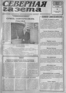 Н 0 0 В Й И р шффтштт вш вш вдвйпьттт в*¡взвит \ Человек славен трудом / 3 ф е в р а л я 2005 г о д а ЧЕТВЕРГ № 5 (8059) О с н о в а н а в и ю н е 19 3 5 г о д а —швпшв вв С УМ Е Т Ь З А И Н Т Е Р Е С О В А Т Ь Р Е Б Е Н К А Е щ е учась в школе, Владислав Михайлович З а х а р о в лю б ил уроки труда. Нравилось ему и с д е ре в ом работать, а больш е всего с металлом Эти уроки пролетали дл я него незаметно. Запах свежей древеси ны, причудливая металлическая стружка, все это дл я моего со б е с е д ника было родным, привычным. Поэтому после окончания школы В л а д и с л а в у М и х ай л ов и чу не пришлось долго размышлять над вопросом о выборе профессии. (П р о д о л ж е н и е на 3-й с тр а н и ц е ) . Н а с н и м к е : В . М . З А Х А Р О В . С О В Е Т Д Е П У Т А Т О В С Е В Е Р Н О Г О Р А Й О Н А Н о в о с и б и р с к о й о б л а с т и Р А С П О Р Я Ж Е Н И Е 28.01.2005 № 1-Р О с о з ы в е 3 - й с е с с и и С о в е т а д е п у т а т о в С е в е р н о г о р а й о н а п е р в о г о с о з ы в а . С о з в а ть 3-ю сессию Совета депутатов Северного района первого созыва 11.02.2005 года в 11 часов в актовом зале администрации Северного района, (с. Северное , ул. Ленина ,14 ). Предложить на рассмотрение следующие вопросы: 1 О регламенте Совета депутатов Северного района первого созыва. 2. О плане работы С ов е т а депутатов Северного района первого с озыва на 2005 год. 3. О сос таве КДН (комиссии по дел ам несовершеннолетних) и другие. Председатель С ов е т а депутатов В. Г. И В А Ш К Е В И Ч . л \ Визит / Депутат Государственной Д у м ы Пепеляева: В СЕВЕРНОМ ЖИВУТ ЗАМЕЧАТЕЛЬНЫЕ ЛЮДИ...’ В понедельник, 24 января, в нашем районе с рабочим визитом побы ва ла депутат Государственной Думы Л.В. Пепеляева. За несколько ча сов пребывания в Северном молодой депутат успела сделать многое. Она встретилась с главой района А.И. Козубцом, который рассказал о том, что было сделано в районе за последнее время, о пробл емах и достижениях, поделился планами на будущее. В свою очередь Лиана Витальевна говорила о той работе, которую она ведет в области. Затем депутат отправилась в районную школу искусств, которая по праву является предметом гордос ти северян. Ученики школы, а всего их более 450 человек, постигают здесь азы хореографии и музыкальные дисциплины, учатся рисовать и лепить. Также Л.В. Пепеляева посетила центральную районную бо льницу и среднюю школу, р ас по лож ен ны е в селе Северном, встретилась с предс т а в и т е л я м и м е с т н о г о о т д е л е н и я партии "Единая Россия”. "Почему именно Северное?” - поинтересовались мы у депутата. "Мой избирательный округ включает в себя всю Новосибирскую область, - рассказала Лиана Витальевна. - И я стараюсь уделять как можно больше времени работе в районах. Провожу встречи с трудовыми коллективами, гражданами, организую бесплатные юридические консультации для населения”. За прошедший год Лиана Пепеляева и ее помощники посетили 10 районов. В некоторых побывали неоднократно. Северный - одиннадцатый и пока самый дальний. В планах этого года - не менее 30 поездок в районы области. В ближайшие недели -О рдынка, Искитим, Венге- рово. “В Северном районе мне очень понравилось, - поделилась впечатле ниям и д е п у т а т П е п е л я е в а . - Зде сь живут и работают з ам ечательные люди, настоящие энтузиасты. А если есть желание и умение работать, то любые трудности можно преодолеть”. Н А З И М Н И Й С Е З О Н Б О Л Ь Ш И Е П Л А Н Ы . у О том, что д о р о го и свято Б и б л и о т е к а р ь Б и 