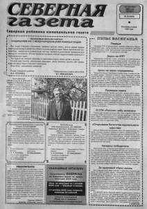 СЕВЕРНАЯ Северная районная еженедельная газета УВАЖАЕМЫЕ ЖИТЕЛИ РАЙОНА! ПОЗДРАВЛЯЕМ ВАС С МЕЖДУНАРОДНЫМ ДНЕМ ПОЖИЛЫХ ЛЮДЕЙ! В ы , л ю д и с т а р ш е г о п о к о л е н и я , п р о ж и л и д о л г у ю ж и з н ь , в н о с я с в о и м т р у д о м п о с и л ь н ы й в к л а д в р а з в и т и е и б л а г о п о л у ч и е р о д н о г о к р а я . В а ш е г е р о и ч е с к о е т р у - I I I I I ж . . . . . _______ ___________ г , | д о л ю б и е , м у ж е с т в о и с т о й к о с т ь д о с и х п о р я в л я ю т с я д о с т о й н ы м п р и м е р о м д л я м о л о д о г о п о к о л е н и я . Э т о в ы в ы н е с л и н а с в о и х п л е ч а х т р у д н о е в р е м я в о е н н ы х и п о с л е в о е н н ы х г о д и н . Т а к б у д ь т е ж е с е г о д н я з д о р о в ы и с ч а с т л и в ы в к р у г у с в о и х д е т е й и в н у к о в ! Н и з к и й в а м п о к л о н , у б е л е н н ы е с е д и н а м и , н а ш и з е м л я к и . Д о л г и х л е т ж и з н и д о р о г и е н а ш и л ю д и с т а р ш е г о п о к о л е н и я . В с е х б л а г , у в а ж а е м ы е с е в е р я н е ! г Г л а в а С е в е р н о г о р а й о н а А . И . К О З У Б Е Ц . П р е д с е д а т е л ь С о в е т а д е п у т а т о в В .Г . И В А Ш К Е В И Ч . Председателю СПК «Восход» В. И. ДРАГАНУ Уважаемый Василий ИльичI П р и м и т е и с к р е н н и е п о з д р а в л е н и я и н а и л у ч ш и е п о ж е л а н и я в с в я з и с 7 0 - л е т и е м с о д н я В а ш е го р о ж д е н и я . С п а с и б о В а м з а В а ш в к л а д в р а з в и т и е с е л ь с к о г о х о з я й с т в а р а й о н а . Ж е л а е м В а м з д о р о в ь я , л и ч н о г о с ч а с т ь я , с е м е й н о г о б л а г о п о л у ч и я , н е и с с я к а е м о г о ж и з н е л ю б и я , б о д р о с т и и м и р а . Г л а в а С е в е р н о г о р а й о н а A. И. КОЗУБЕЦ. П р е д с е д а т е л ь С о в е т а д е п у т а т о в В. Г. ИВАШКЕВИЧ. Н а ч а л ь н и к у п р а в л е н и я с е л ь с к о г о х о з я й с т в а щ B. А.С ТЕПАНОВ . [ 2 ^ Л=г Руководителю фермерского хозяйства «Сорт» Н.Е.ШАЛАМОВУ Уважаемый Николай Егорович, специалисты и механизаторы фермерского хозяйства «Сорт»! А д м и н и с т р а ц и я С е в е р н о г о р а й о н а , С о в е т д е п у т а т о в и у п р а в л е н и е с е л ь с к о г о х о з я й с т в а п о з д р а в л я ю т В а с с о к о н ч а н и е м у б о р о ч н ы х р а б о т . Ж е л а е м д а л ь н е й ш и х у с п е х о в в в а ш е м н е л ё г к о м и т а к н у ж н ы м л ю д я м т р у д е , с ч а с т ь я в а м и з д о р о в ь я Г л а в а С е в е р н о г о П р е д с е д а т е л ь С о в е т а р а й о н а д е п у т а т о в А. И. КОЗУБЕЦ . В.Г .ИВАШКЕВИЧ. Н а ч а л ь н и к у п р а в л е н и я с е л ь с к о г о х о з я й с т в а В .А .С ТЕПАНОВ . ___У Председателю I! СПК «Новотроицкий» Д.А.ХИЛКОВУ Уважаемый Дмитрий Алексеевич, специалисты и механизаторы СПК «Новотроицкий»! А д м и н и с т р а ц и я С е в е р н о г о р а й о н а , С о в е т д е п у т а т о в и у п р а в л е н и е с е л ь с к о г о х о з я й с т в а п о з д р а в л я ю т в а с с о к о н ч а н и е м у б о р о ч н ы х р а б о т . Ж е л а е м в а м д а л ь н е й ш и х у с п е х о в в в а ш е м т р у д н о м и б л а г о р о д н о м д е л е , с ч а с т ь я и з д о р о вья . Г л а в а С е в е р н о г о П р е д с е д а т е л ь С о в е т а р а й о н а д е п у т а т о в A. И. КОЗУБЕЦ. В.Г.ИВАШКЕВИЧ. Н а ч а л ь н и к у п р а в л е н и я с е л ь с к о г о х о з я й с т в а B. А.С ТЕПАНОВ . а. л У В Е Д О М Л Е Н И Е 11 д е к а б р я 2 0 0 5 го д а в с о о т в е т с т в и и с п о с т а н о в л е н и е м с о р о к ч е т в е р т о й с е с с и и Н о в о с и б и р с к о г о о б л а с т н о г о С о в е т а д е п у т а т о в о т 0 8 . 0 9 2 0 0 5 г . « О н а з н а ч е н и и в ы б о ро в д е п у т а т о в Н о в о с и б и р с ко го о б л а с т н о г о С о в е т а » , « С е в е р н а я г а з е т а » к а к г о с у д а р с т в е н н о е с р е д с т в о м а с с о в о й и н ф о р м а ц и и б у д е т п у б л и к 