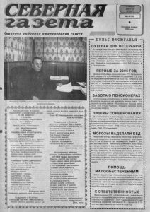 G j f t p G j f t p G j f e Gjfcp ф Й р q 5 f t p C j f t p G j f t p G j f t p q j f i p G j f t ? G j f t p Gjfc? Gjfcp G j f t p Gjf<p G j f t ? G^ftp q j f t ? ф Й Э Cjfc? c 1 9 я н в а р я 2 0 0 6 г о д а Ч Е Т В Е Р Г ) № 3 ( 8 1 0 9 ) О с н о в а н а в и ю н е 1 9 3 5 г о д а Северная районная етгазета J Интервью с главой администрации Северного района Козубцом Анатолием Ивановичем 1 читайте на 2 стр ани це . ! Р а й о н н ы й С о в е т в е т е р а н о в п о з д р а в л я е т с ю б и л е й н ы м и д а т а м и с о д н я р о ж д е н и я : с 9 5 - л е т и е м Е Г О Р О В А А Л И М П И Я Ф Е Д О Р О В И Ч А и з с. Б е р г у л ь ! с 8 5 - л е т и е м К Е Й Ш А П Е Т Р А А Н Т О Н О В И Ч А и з с . В е р х - К р а с н о я р к а ! с 8 0 - л е т и е м Г Р И Ш И Н А И В А Н А А Р С Е Н Т Ь Е В И Ч А из с. Н о в о т р о и ц к ! С Л О Б О Д Ч И К О В А В А С И Л И Я С А В Е Л Ь Е В И Ч А и з с . У д а р н и к ! С М Е Л О В А В А С И Л И Я Г Р И Г О Р Ь Е В И Ч А из с. В и т и н с к ! З а д е л а м и , з а р а б о т о й п р о л е т е л и г о д ы . Б ы л и р а д о с т и , з а б о т ы , б ы л и и н е в з г о д ы . И с е г о д н я в э т о т с л а в н ы й ю б и л е й П у с т ь т е н ь г о д о в н е о т р а з и т с я б о л ь ю . Ж е л а е м с а м ы х с в е т л ы х д н е й , З е м н о г о с ч а с т ь я , к р е п к о г о з д о р о в ь я ! У в а ж а е м а я Г а л и н а Д м и т р и е в н а ! П о з д р а в л я е м В а с с 5 5 - л е т и е м ! Ж е л а е т к о л л е к т и в к о л л е г П р о ж и т ь н а с в е т е ц е л ы й в е к ! Б у д ь в е с е л о й в с е г д а , Н е г р у с т и н и к о г д а . Б у д е т т р у д н о - к р е п и с ь , Б у д е т в е т е р - н е г н и с ь , Б у д е т б о л ь н о - н е п л а ч ь , Г л а з в л а д о н и н е п р я ч ь . Ж е л а е м ж и т ь б е з с т а р о с т и , Р а б о т а т ь б е з у с т а л о с т и . Ж е л а е м б л а г в а м в с е х з е м н ы х - М ы з н а е м , В ы д о с т о й н ы и х ! К о л л е к т и в М Д О У С е в е р н о г о д е т с к о г о с а д а « С о л н ы ш к о » . П о з д р а в л я ю с 5 0 - л е т и е м С Л Е П Ц О В А В И К Т О Р А Н И К О Л А Е В И Ч А ! Ж е л а ю к р е п к о г о з д о р о в ь я , д о л г и х л е т ж и з н и у с п е х о в в р а б о т е , с е м е й н о г о б л а г о п о л у ч и я . Г л а в а М О Н о в о т р о и ц к о г о с е л ь с о в е т а Н. В. К О Ч Е Р Е Ш К О . П о з д р а в л я е м с 5 0 - л е т и е м д о р о г о г о , л ю б и м о г о б р а т а и д я д ю С Л Е П Ц О В А В И К Т О Р А Н И К О Л А Е В И Ч А ! Э т о к р у г л а я в ж и з н и д а т а - Т в о й т о р ж е с т в е н н ы й ю б и л е й , З н а ч и т , м н о г о о т ж и з н и в з я т о , Е щ е б о л ь ш е о т д а н о е й ! С ч а с т ь я т е б е з е м н о г о . Р а д о с т и , ч т о б н е с ч е с т ь . И з д о р о в ь я ж е л а е м м н о г о , Н е т е р я л о с ь б ы т о , ч т о е с т ь ! Бра т , с е с т р ы , п л е м я н н и к и , п л е м я н н и ц ы , з я т ь я . П о з д р а в л я е м с ю б и л е е м д о р о г у ю , л ю б и м у ю м а м у и б а б у ш к у К О С Т И Н У Г а л и н у Д м и т р и е в н у ! М а м о ч к а , д о р о г о й н а ш ч е л о в е к ! С а м ы й б л и з к и й , с а м ы й д р а г о ц е н н ы й . О т с е м ь и с в о е й п р и м и п р и в е т В э т о т ю б и л е й н ы й д е н ь р о ж д е н ь я ! Т ы п р и м и п о к л о н з а д о б р о т у , З а с и я н ь е г л а з в о л ш е б н ы м с в е т о м , З а т в о ю к а к с о л н ц е т е п л о т у . Т е п л о т о ю м ы с о г р е т ы , Н а м в с е г д а с т о б о ю х о р о ш о , М ы о к р у ж е н ы т в о и м в н и м а н ь е м , И, у т к н у в ш и с ь в п л е ч о , Д е л и м с я и г о р е м , и п е ч а л ь ю , Д е л и м с я и м е ч т о ю , и с у д ь б о й , Г о в о р и м о в с е х с в о и х ж е л а н ь я х , И з а в с е з а э т о , д р у г р о д н о й , Т ы п р и м и о т н а с в с е х п о ж е л а н ь е . Ж е л а е м р а д о с т и , в е с н ы ц в е т е н ь я , З д о р о в ь я , б о д р о с т и и н а с т р о е н ь я , И с ч а с т ь я с в е т л о г о , в с е г д а м а н я щ е г о , П у с т ь д а ж е т р у д н о г о , н о н а с т о я щ е г о ! Д е т и , в н у к и . Я ¥ Я ¥ Я ¥ 