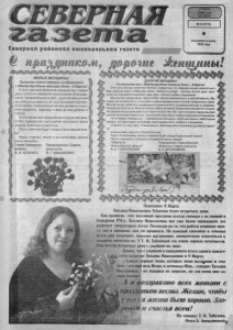 С е в е р н а я р а й о н н а я е ж е н е д е л ь н а я г а з е т а с 2 марта 2006 года ЧЕТВЕРГ N9 9(8115) 3 ) Основана в июне 1935 года они ДОРОГИЕ ЖЕНЩИНЫ! П о з д р а в л я е м вас с М е ж д у н а р о д н ы м ж е нс ким д н е м — 8 М а р т а ! й й ч Э т о т д е н ь в с е г д а н а п о л н е н т е п л о м и р а д о с т ь ю . О н о с в е щ е н н а ш е й н е ж н о с т ь ю к в а м , д о р о г и е м а м ы и б а б у ш к и , ж е н ы , с е с т р ы и д о ч е р и , к о л л е г и . В э т о т д е н ь м у ж - ч и н ы н е с т е с н я ю т с я в ы р а ж а т ь в а м с в о и ч у в с т в а л ю б в и и п р и з н а н и я . М ы в ы с о к о ц е н и м в а ш и т р у д о л ю б и е , ц е л е у с т р е м л е н н о с т ь и н а с т о й ч и в о с т ь . Мы з н а е м , в ы м о ж е т е б ы т ь с и л ь н ы м и и с а м о о т в е р ж е н н ы м и в с в о е м с т р е м л е н и и к ц е л и . у М н о г и е и з в а с д о б и л и с ь в ы д а ю щ и х с я р е з у л ь т а т о в в п р о и з в о д с т в е н н о й и у п р а в л е н - 1 г ч е с к о й д е я т е л ь н о с т и М н о г и е н а ш л и с е б я в а к т и в н о й о б щ е с т в е н н о й р а б о т е , п о л у ч и - л и п р и з н а н и е з а я р к и е р а б о т ы в н а у к е и и с к у с с т в е . М ы п р е к л о н я е м с я п е р е д в а ш и м и р а з н о с т о р о н н и м и т а л а н т а м и , т в о р ч е с к о й э н е р г и е й и н е о б ы к н о в е н н ы м о п т и м и з м о м . Н о в п е р в у ю о ч е р е д ь в ы — п р е к р а с н ы е ж е н щ и н ы , л ю б я щ и е ж е н ы и з а б о т л и в ы е м а т е р и , к о т о р ы е д а р я т м у ж ч и н а м с в о ю п р е д а н н о с т ь , д о б р о т у и в н и м а н и е . С п а с и б о з а в а ш т р у д , о т з ы в ч и в о с т ь , в е л и к о д у ш и е и о г р о м н у ю д у ш е в н у ю к р а с о - т у ! С ч а с т ь я в а м , р а д о с т и и б л а г о п о л у ч и я ! > П у с т ь п о - в е с е н н е м у я р к и м и с в е ж и м б у д е т к а ж д ы й д е н ь в а ш е й ж и з н и ' П у с т ь н а д е ж д о й и л ю б о в ь ю с о г р е в а ю т с я в а ш и с е р д ц а ! Г у б е р н а т о р П р е д с е д а т е л ь Н о в о с и б и р с к о г о Н о в о с и б и р с к о й о б л а с т и о б л а с т н о г о С о в е т а д е п у т а т о в В. А. ТОЛОКОНСКИЙ. А. А. БЕСПАЛИКОВ. М И ЛЫ Е Ж Е НЩ И НЫ ! П р и м ит е с амы е т е п л ы е по зд р а в ле н ия с М е ж д у н а р о д н ы м ж е н с к и м днем - 8 М а р т а ! В этот светлый весе нн ий пра здник мы отдаем д а н ь глубоко го уважения, восхищения, бла год ар ности, признательности вам - дорогим ж е нщ инам за стой ко сть и красоту, за силу безграничной ж е н ской любви , по зволяющ ей во все времена с о х р а нять мудрость, на дежду и веру во все д о б р о е и чистое. В этот в есе нний п р а з д н и к мы от д у ш и ж елаем , ч то б ы пре кра сно е на ст р о е н и е н а пол ни л о ваши с ер дца лю б о в ью и р а дос тью Пусть светлым будет к а ж д ы й д е н ь ваш ей ж и з ни! Мира, счастья, т е п л а и д о с та т к а вам, милые на ш и женщины . Глава С ев е рн о го П р ед с е д а т е л ь Совета р а йон а д е п у т а т о в А. И. КОЗУБЕЦ. В. Г. ИВАШКЕВИЧ. й илем, с тем. -4 Нынешнее 8 Марта Татьяна Николаевна Туболева будет встречать дома. К а к правило, этот весенний праздник всегда сопадал с ее сменой в Северном РУСе. Татьяна Николаевна вот уже более пятнадцати лет работает оператором связи . Несмотря на то, что работа отнимает много сил и времени, она ей нравится. Не к а ж ды й способен в течение всего дня сохранять хорошее настроение, внимательно относиться к каждому посетителю. У Т. Н . Туболевой это очень хорошо получается. Она всегда встречает всех с улыбкой на лице. Думаю, что с улыбкой и ожиданием всего самого наилуч- и е г о встретит Татьяна Николаевна и 8 Марта. Л I I Ж * ' Самь|е первые люди, которые меня поздравят в этот день - это мой 