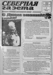 с 31 августа 2006 года ЧЕТВЕРГ 5 № 35 (8141) Основана в июне 1935 года На сн и м к е : Юля В о л о х о в и ч Д о р о г и е школьники, родители и учителя! С е р д е ч н о поздравляем вас с Днем з н а н и й и началом учебного года! 1 с е н т я б р я р о с с и й с к и е ш к о л ы в о ч е р е д н о й р а з о т к р ы в а ю т с в о и д в е р и д л я м н о г и х т ы с я ч ш к о л ь н и к о в . Э т о о д и н и з с а м ы х я р к и х и р а д о с т н ы х п р а з д н и к о в . К а н и к у л ы з а к о н ч и л и с ь , и в п е р е д и у в а с м е с я ц ы с е р ь е з н о й у ч е б ы В э т о м го д у в С е в е р н о м р а й о н е за п а р т ы с я д у т о к о л о п о л у т о р а т ы с я ч м а л ь ч и ш е к и д е в ч о н о к , д л я 123 д е т е й э то т у ч е б н ы й г о д с т а н е т п е р в ы м . П р и с т у п а ю т к р а б о т е и у ч и т е л я . В ы я в л я я т а л а н т ы и с п о с о б н о с т и с в о и х в о с п и т а н н и к о в , п р е п о д н о с я им ц е н н ы е и н е о б х о д и м ы е в ж и з н и з н а н и я , о н и , б е з п р е у в е л и ч е н и я , ф о р м и р у ю т б у д у щ е е н а ш е й с т р а н ы . Х о т и м а д р е с о в а т ь в с е м у ч и т е л я м и с к р е н н и е п о ж е л а н и я з д о р о в ь я , п р о ф е с с и о н а л ь н ы х у с п е х о в , м у д р о с т и и т е р п е н и я , ш к о л ь н и к а м - н а с т о й ч и в о с т и и у с п е х о в в у ч е б е , о т л и ч н ы х о ц е н о к , в е р н ы х д р у з е й , в е с е л о й и н а с ы щ е н н о й ж и з н и в н а с т у п а ю щ е м у ч е б н о м году. У б е ж д е н ы , ч т о в а м п о с и л а м п р е о д о л е т ь в се т р у д н о с т и , \ с т а т ь п о - н а с т о я щ е м у о б р а з о в а н н ы м и л ю д ь м и , и в д а л ь н е й ш е м в н е с т и с в о й в а ж н ы й в к л а д в р а з в и т и е Р о с с и и . Г л а в а С е в е р н о г о р а й о н а П р е д с е д а т е л ь С о в е т а д е п у т а т о в А И. КОЗУБЕЦ. В.Г. ИВАШКЕВИЧ. Н а ч а л ь н и к у п р а в л е н и я о б р а з о в а н и я Р.М. ВАСИЛЬЕВА. 1_ ] ____ У в а ж а е м ы е земляки ! О т всей души по зд равл яем вас с Д н е м знаний! Этот праздник как торжественные проводы корабля в большое плавание: вскэду цветы, волнуются родители, отправляющие своих ребят в длительное странствие. Волнуются малыши-первоклассники — у них впереди долгое путешествие в мир неизведанного, где предстоит открыть много тайн, где будет много удивительных встреч, где надо найти свое призвание. Их старшие братья и сестры уже не один год идут по этому пути, каждый раз делая важные открытия, обретая новых друзей, постигая тайны будущей профессии. В этот день люди зрелого поколения вспоминают свои годы учебы, своих учителей, школьных товарищей. Конечно, они переживают и за собственных детей, внуков современная школа сильно изменилась. Здесь появились новые предметы и новые учебники, педагоги овладели новыми методиками, они и к знаниям своих учеников предъявляют иные — более высокие — требования. Одно неизменно в школе: мудрость и терпение учителей, самоотверженность, с которой они помогают своим воспитанникам постигать самую главную науку: жить честно, трудиться на совесть, быть искренними во всем. Путешествие в мир знаний — самое увлекательное. Пусть оно будет ярким, радостным, незабываемым! Желаем всем вам успехов! Губернатор Новосибирской области В.А. ТОЛОКОНСКИЙ. Председатель Новосибирского областного Совета депутатов А.А.БЕСПАЛИКОВ. Д о р о г и е друзья! 1 сентября тысячи школьников отправятся в обновленные классы, а студенты вернутся в ставшие родными аудитории. Для кого-то это год станет первым: в школе, в техникуме, институте... Начинать всегда сложно, но и очень интересно. Ребята, я 