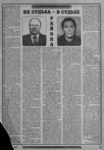 Г Была такая песня: «... Мы едем в дальние края, на карте не найти, судьба военная моя, нелегкие пути...». Она сразу приходит на память, когда М.В. Лукашов начинает рассказы вать о своей жизни, но с одной поправкой: он не был военным, наоборот, все годы трудового пути строил. А свою судьбу Ма рия Яковлевна, все-таки, срав нивает с женой военного: - я за ним переезжала с ме ста на место. Всю карту района исколесили. Куда направляли, туда и ехали, точно как семья военных. - Да уж не всю, - возражает Михаил Васильевич. - Где не были-то, - отвечает она, - только в Федоровке и Но- вотроицке, наверное. И всюду надо было обустраиваться за ново. А начинал Михаил Василь евич свое «путешествие» из Ос- тяцка, живописного села, те перь уже окраинного в районе. Местность в этих уголках холми стая, необычная почти для всей остальной нашей болотистой территории. Мария Яковлевна в детстве жила еще в более красивой де ревне дворов в 50. Это была Право-Каевка, о которой теперь остались лишь воспоминания. Как-то мне пришлось побывать на ее родине. И такая чудо-при рода открылась с высоты хол ма, окруженного тихой лесной речкой, что поневоле замерла, глядя на ее изгибы, где-то внизу околки березок и простой де ревянный мостик через темную воду. Вдали, на другом берегу, паслось колхозное стадо. И по думалось: разве может быть что-то лучше, чем наша область, которой скоро 70 лет. Для суп ругов Лукашовых это не просто юбилейная дата, это и личный юбилей, потому что он почти со впадает с их возрастом. И уго лок, названный Северным рай оном, ведет отсчет своего вре мени вот с такими людьми, пре данными ему всю жизнь и суро вой сибирской земле. - Когда-то организовали у нас в Право-Каевке колхоз им. Сталина, - вспоминает Мария Яковлевна. - Вроде, и начали жить, а тут война. Отца моего, Якова Александровича, как от правили на фронт в 1941 году, так мы его больше и не видели. Воевал он в стрелковой диви зии и сложил свою голову где- то на западе, а мать, Анна Пав ловна, умерла, оставив троих малолетних детей. Вот так и закончилась моя учеба на че тырехклассном образовании. Началась работа в колхозе. Потом, после замужества, с каждым переездом на новое место жительства ей постоян но приходилось менять рабо ту: была техничкой, дояркой. На пенсию ушла с ветучастка, под ведя черту под трудовым ста жем общей сложностью в 42 года. А Михаил Васильевич до стает все документы, накопив шиеся за жизнь, многочислен ные удостоверения, но главная, первая «корочка», куда внесе на запись о месте работы - это «Трудовая книжка колхозни- ». Было тогда и такое разгра- ение людей села и города, о они были разносортны- тя, напрягая все силы, я кормила огромную и этом не имея даже еды переехали из але 20 века, - гово- ВасиОьевич, - во инской реформы, :, и был основан года С ” 1 1 ' " 1 I I I К 70-летию Новосибирской области В СУДЬБЕ ИХ СУДЬБА - Р А Й О Н А Остяцк. Сейчас мы с Григорием Ивановичем Ивашкевичем часто разговариваем как земляки и по стоянно сожалеем: эх, записать бы всю историю села, да только многие детали, даты, факты за далью лет ушли безвозвратно. А наш родительский пятистенник стоял в Остяцке за речкой Бар- сучкой. Мать, Ульяна Титовна, и отец, Василий Никифорович, ко нечно же, работали в колхозе со звучным названием «Красная звезда». Большой был колхоз: в одном селе две бригады. Одна - до взгорка, другая - к Иче. Рядом деревня Ургуль, но там сво