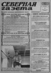 с 7 июня 2007 года ЧЕТВЕРГ ) №29 (8181) Основана в июне 1935 года Северная районная еженеаепьная газета Аорогпе земляки! Примите наши искренние поздравления с государственным праздником - Днем России! Мы уже много лет отмечаем этот праздник. Он стал значительным явлением в обще ственно-политической жизни, важнейшим элементом гражданского воспитания. Утвержден ный в новое время, он обращен к нашему прошлому, к многовековой истории России. Он посвящен нашим предкам, великим труженикам, которые своим талантом, усердием и самоотверженной работой создавали великую страну. Он посвящен рабочим и крестьянам, деятелям науки и искусства, врачам, учителям — всем ее гражданам, прославившим страну большими делами. Он посвящен ее мужественным воинам, защищавшим свободу и незави симость Родины от иноземных захватчиков. Этот праздник, который мы отмечаем сегодня, устремлен в будущее. Он требует от нас, современников, достойных свершений. Нам предстоит многое сделать, чтобы интенсивно развивать экономику, внедрять самые передовые научные достижения, поднимать сельс кое хозяйство, активно поддерживать общественные инициативы, утверждать гражданское общество. Мы должны передать нашим детям прекрасную процветающую страну. Страну, где радос тно жить и работать, где счастливы дети, где окружены почетом представители старшего поколения. Страну, которую можно искренне любить и которой можно по-настоящему гор диться. С праздником, дорогие земляки! Успехов вам во всех ваших начинаниях во имя новой России! Мы желаем вам твердой уверенности в завтрашнем дне, высоких творческих замыс лов и успехов в их реализации. Крепкого вам здоровья, счастья и благополучия! Губернатор Председатель Новосибирского Новосибирской области областного Совета депутатов В.А. ТОЛОКОНСКИЙ. А.А. БЕСПАЛИКОВ. ДЛЯ САМЫХ МАЛЕНЬКИХ В рамках выполнения областной целевой программы «Дети Новосибирской области» 15 детей от 5 до 7 лет из неполных, малообеспеченных, многодетных семей и семей группы риска в течение 28 дней пройдут курс социально-психологической реа билитации в областном реабилитационном центре для несовер шеннолетних «Радуга». ДЕНЬ СЛАВЯНСКОЙ ПИСЬМЕННОСТИ 24 мая в районном Доме культуры прошел праздник, посвя щенный Дню славянской письменности и культуры. Программу этого праздника провели участники детского фольклорного ан самбля «Семейка» под руководством Е. Финашкиной. В програм ме вечера были не только игры, хороводы и танцы, но и занима тельная викторина «Азбука». ДЛЯ МОЛОДЫХ МАМ Очередное заседание клуба молодых мам «Берегиня» со стоялось в рамках празднования Дня семьи. Перед будущими мамами выступила врач-гинеколог О. П. Мельникова, она рас сказала присутствующим о том, как планировать развитие своей семьи после рождения ребенка, о здоровье женщины. На заев- ДОРОГИЕ ДРУЗЬЯ! ПОЗДРАВЛЯЮ ВАС С ДНЁМ РОССИИ! Этот праздник символизирует свободу и независимость нашего государства. Мы живём в великой стране с богатым историческим прошлым, уникальным культурным наследи ем и огромным потенциалом развития. Любовь и уважение к своему государству - залог его процвета ния. Преодолев немало экономических и социальных трудностей, Россия смогла занять достойное мес то в мировом сообществе. И сегодня мы можем гордиться тем, как стремительно она развивается, укрепляя свои позиц