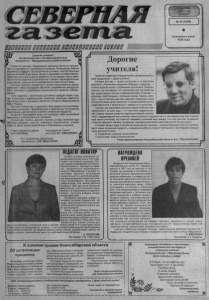 Дорогие учителя! Поздравляем вас с профессиональным праздником - Международным Днём учителя! ¥ ( Развитие системы образования является одним из приори тетных направлений деятельности района. Руководство района стремится создавать благоприятные условия, способствующие осуществлению прав наших детей и молодёжи на образование, нравственное и физическое развитие. В последние годы в райо не постоянно ведётся строительство и ремонт образовательных учреждений, укрепление их материально-технической базы. Сегодня педагоги находятся в центре общественной жизни, осваивают новые программы обучения, современные методы ра боты, участвуют в реализации национального проекта «Образо вание». Цель педагога - воспитание достойных граждан своей стра ны, владеющих современными знаниями, умеющих самостоя тельно мыслить и принимать решения, готовых к свершениям на благо Родины. Всю свою жизнь мы с теплотой и благодарностью вспомина ем своих учителей - внимательных и увлечённых энтузиастов, помогавших нам постигать знания и жизненную мудрость. Искренне благодарим всех, кто посвятил себя воспитанию культурного и образованного человека. Низкий вам поклон, дорогие учителя, за ваш нелёгкий труд! #1 Желаем здоровья, счастья, семейного благополучия, спокой ствия, а также целеустремлённых и благодарных учеников. Глава Северного района А.И. КОЗУБЕЦ. Председатель Совета депутатов В.Г. ИВАШКЕВИЧ. И.о.начальника управления образования Н.М. ИВАНЧЕНКО. ттшмшшшшшкжштж Дорогие учителя! Примите искренние поздравления с профессиональ ным праздником — Днем учителя! » Сегодня все мы — юные школьники и их взрослые родители, убеленные сединами бабушки и дедушки — снова в родной школе, с любимыми учителями. Повзрос левшие, мы понимаем, что любимыми для нас были вы все, даже самые строгие и требовательные. И такими — родными, заботливыми, готовыми всегда помочь сове том — вы останетесь для нас навсегда. Навсегда с нами останутся ваши уроки терпения и целеустремленности, нравственности и искренности, твердости и мужества. 1 Сегодня мы выражаем вам свою самую глубокую при знательность за ваш труд — он поистине подвижничес кий. Самые нежные слова мы адресуем первой учитель нице, поддержавшей нас в начале такого долгого и трудного пути к неизведанному. Мы помним всех своих учителей, кто помогал осваивать сложный мир знаний, кто стал для нас примером глубокой верности своему призванию, примером высокой ответственности за свое дело. Спасибо за ваш труд! Спасибо за наших детей и внуков — за наше будущее. Мы не сомнева емся: ваша жизненная мудрость и душевная доброта помогут им вырасти настоящими гражда нами великой России. С праздником, дорогие наши учителя! Счастья вам, мира и благополучия! Глава администрации Новосибирской области В.А. ТОЛОКОНСКИЙ; ? Учитель истории Биазинской об щеобразовательной школы Н.В. Сава- стеева участвовала в конкурсе «Луч ший педагогический работник Новоси бирской области». Проходил он в рам ках приоритетного национального проекта «Образование» и зыявил та лантливых педагогов, заслуживших признательность и достойное денеж ное вознаграждение. Среди них и На талья Владимировна, награжденная Губернатором. Она начала работать в школе в 1988 году после окончания десятилетки. А для получения специ альности в Новосибирском педагоги ческом