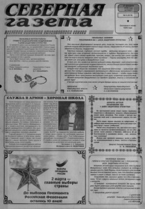 СЕВЕРНАЯ Г С 21 февраля 2008 года ЧЕТВЕРГ №8 (8218) Основана в июне 1935 года ' УВАЖАЕМЫЕ ЖИТЕЛИ РАЙОНА! ПРИМИТЕ НАШИ ИСКРЕННИЕ ПОЗДРАВЛЕНИЯ С ДНЕМ ЗАЩИТНИКА ОТЕЧЕСТВА! 23 февраля давно стал всенародным праздником России. В этот день мы чествуем тех, кто приумножает славные тради ции, верой и правдой служа Родине; тех, кто и сегодня стоит на защите государственных интересов и национальной безопас ности, с честью и мужеством выполняя свой долг. Пусть в этот светлый праздник объединяет нас всех свет лая надежда на мир и дружбу. Пусть будет мирным небо, крепким здоровье. Всех вам благ, счастья, успехов, дорогие земляки. ь С уважением Глава Северного района А. И. КОЗУБЕЦ. Председатель Совета депутатов В. Г. ИВАШКЕВИЧ. Ч ~ . X I .' ? УВАЖАЕМЫЕ ЗЕМЛЯКИ! ПОЗАРАВЛЯЕМ ВАС С АНЕМ ЗАЩИТНИКА ОТЕЧЕСТВА! Это поистине общенародный праздник день. когда мы чествует тех. к то своим ратным трудом обеспечивает мирный труд страны, нерушимость ее границ, крепит обороноспособность государства. Кадровые военные, служащие срочной службы, ветераны минувших войн — вам мы адресуем слова искренней признательности и глубокой благодарности. Аля всех вас армия стала школой мужества, героизма, отваги. Аля многих она стала судьбой. К т о - т о еще в юности определил своей призвание — Родину защищать, к т о - т о сде лал э т о т шаг. отслужив в Вооруженных Силах. В наши дни э та профессия военнослужащего вковь обретает свое исключитель ное значение для укрепления государственности, она все больше притягивает внима ние молодежи, выбирающей Жизненный путь. Сегодня наше общество понимает, ч то защитник Отечества — важнейшая про фессия. Она требуе т современного материального обеспечения, постоянного совер шенствования боевых навыков и мастерства. И самое главное — чтобы сердца воен нослужащих были преисполнены высочайшей силой духа, искренним патриотизмом. Желаем ветеранам Вооруженных Сил крепкого здоровья, энергии и оптимизма на долгие годы! Счастья и успехов всем, к т о несет сегодня боевую вахту по защите Отечества! Губернатор Новосибирской области В. А. ТОЛОКОНСКИЙ. Председатель Новосибирского областного Совета депутатов А. А. БЕСПАЛИКОВ. Ж СЛУЖБА В АРМИИ - ХОРОШАЯ ШКОЛА Около пятнадцати лет назад транспортное предприятие района возглавил А. А. Граждан- кин. К этому времени он обладал достаточны ми теоретическими знаниями и первым прак тическим опытом, чтобы взяться за такое от ветственное дело. Позади у Алексея Алексан дровича была учеба в Новосибирском авто транспортном техникуме по специальности тех ническое обслуживание и ремонт техники и служба в армии, причем в войсках, которые раньше называли «бог войны». Артиллерия, а несколько позже ПВО помогли сформировать ся у солдата качествам, пригодившихся в бу дущем руководителю в его работе. Это, преж де всего, дисциплина, умение оценивать обста новку и оперативно принимать решения. Старший сержант А. А. Гражданкин родом из Кочковского района, а свою жизнь, связан ную с Северным, начал с армии, где служил вместе с нашим земляком. Здесь друзья и встретились вновь после службы. Алексей Александрович вначале работал помощником механика, вскоре стал начальни ком колонны. А это значит: под его ру ководство были пе реданы 98 автомо билей и весь об служивающий пер сонал. Алексей А л е к с а н д р о в и ч справился с нагруз кой и со временем д