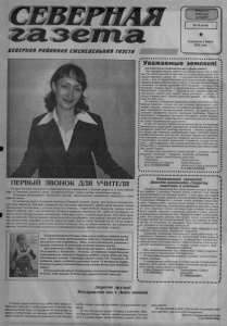 СЕВЕРНАЯ северн ая районная еженепеяьняя С 28 августа 2008 года ЧЕТВЕРГ №35 (8245) Основана в июне 1935 года первый звонок для учителя Сегодня молодой специалист в образовательных учреждениях - большая редкость. В этом учебном году в Северную среднюю школу на рабогу поступит новый учитель иностранных языков. Екатерина Вячеславовна Кислицына, окончив педагогический университет, вернулась в стены родной школы. - На четвертом курсе я проходила практику в Северной средней школе , уже тогда не сомневалась, что стану педагогом. Для меня примером того, как нужно преподносить знания детям является Галина Геннадьевна Соломатина, у которой когда-то я училась. Педагогическая выдержка, умение понять каждого ребенка, такт - это те качества, которые я старалась перенять у нее. Даже не сомневаюсь: ее школа жизни пригодится мне в дальнейшем, когда буду стоять с указкой возле доски. Хочу вести уроки так, как вела она. Пока же никаких новшеств вносить не собираюсь, ведь работа с детьми это серьезно, постепенно стану осваивать и вносить новые методики. Честно скажу, несмотря на то, что до первого звонка несколько недель испытываю сильное волнение. Все же новый коллектив, да и возрастная разница учащихся большая: со второго по одиннадцатый классы. Думаю, все будет хорошо! В Северномрайоне 16 школ. Семь из них средние и девять основ ных. Самая низкая наполняемость классов в Среднеичинском об разовательном учреждении. Здесь всего пятнадцать учеников и восемь педагогов. В этом году не будет пятого класса. Для сравнения: в Верх - Красноярской школе - 124 обучаемых и 30 учителей, в Биазиской - 76 детей, 22 педагога. Самая большая наполняемость классов в Северной средней школе. Здесь на тор жественную линейку 1 сентября придут около 700 учеников и 72 педагога, среди учителей в районной школе 15 ветеранов труда. В целом по району больше девяноста человек носят это почетное звание. В прошлом году общая численность учащихся в Северномрайо не была 1440 человек. В этом году учеников будет меньше. Уважаемые земляки! От всей души поздравляем вас сДнем знаний! Этот праздник всегда заметен на улицах наших сел и горо дов. Он в бесконечном потоке цветов в руках наших детей, спе шащих навстречу школе. Он - в приподнятом настроении уча щихся — все, от первоклассников до студентов вузов, радуются первой в новом учебном году встрече со своими наставниками- учителями, со своими друзьями. Этот праздник — в радостном волнении, которое звучит в приветственных словах педагогов. Взволнованы и взрослые — каждый из нас пережил свой пер вый звонок, первый урок, помнит своих учителей — строгих, но всегда справедливых, помнит школьных друзей... Это память с нами на всю жизнь. Но сегодня содержание праздника знаний наполняется осо бенным смыслом, потому что вся система образования пере живает подъем, направлена на реформирование, модерниза цию, проникнута инновационным началом. До уровня нацио нального приоритета подняты школьные проблемы. Развитие творческого потенциала молодежи объявлено делом государ ственной важности, нравственные и духовные ценности получа ют статус национального достояния. И тем, кто сегодня садится за школьные парты, кто начинает заниматься в аудиториях учреждений профессионального об разования, предстоит многому научиться — им жить и работать в стране, где главными требов