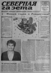 СЕВЕРНАЯ швшшвшшштшва® С1 января 2009 года ЧЕТВЕРГ № 1 (8263) Северная ЦБС НСО 63217023 Основана в июне 1935 года с Н о в ы м год.ол\ и Р о ж д е с т в о м ! у р Дорогие друзья! Поздравляю вас с Новым годом! Н о в о го д н и й п р а з д н и к - особенный. Он дарит нам надежду на счастье и удачу, на полнен добрым светом, несет радость новых начинаний и связан с ожиданием чуда. И чудо это может свершиться, если мы поверим в себя, в свои силы. Желаю всем крепкого здо ровья, счастья и оптимизма . Пусть всегда рядом с вами будут ваши родные и друзья, а в ваших домах царят благопо лучие, любовь и взаимопони мание . С уважением, депутат Государственной ДУМЬ1 I Ф \ Л. В. ПЕПЕЛЯЕВА. г ж Ш Дорогие женщины- ^ северянки! Тепло и сердечно поздравляем вас и ваших близких с Новым годом! Пусть в наступившем году исполнятся все ваши заветные желания, пусть ваша жизнь станет ярче, богаче и интереснее, пусть отступят прочь все невзгоды и печали. Здоровья, удачи, счастья, заливистого детского смеха, ясных и солнечных дней, тепла, уюта и достатка в ваших домах, красоты, нежности, обаяния, веры и надежды в лучш ее желаем вам, наши милые женщины! Пусть Новый год со счастьем $ НОВЫМ| • Под сказку сна к вам в дом войдет И вместе с запахом еловым Лишь только радость принесет! Ф С уважением , члены женсовета с. Северного. Д и п л о м л а у р е а т а Жюри в составе руководителя департамента информации администрации Новосибирской области А.В. Добровольского (председатель), руководителя ОГУ «Агентство по печати и массовым коммуникациям Новосибирской области» А.Б. Неунылова (заместитель председателя), начальника отдела по работе с районной печатью департамента информации А.А. Демченко, консультанта отдела по работе с районной печатью департамента информации Л.Н. Кислой, начальника отдела информационного обеспечения и взаимодействия со СМИ департамента инф ормации администрации Новосибирской области Д.В. Моралева, начальника отдела растениеводства управления сельского хозяйства администрации области В.В. Апанасенко, заведующего агропромышленным отделом газеты «Советская Сибирь» Н.П. Царева подвело итоги областного конкурса среди редакций и журналистов районных (городских) газет на лучшее освещение хода полевых работ «Урожай-2008». На конкурс «Урожай-2008» поступило почти 500 публикаций от 23 редакций районных газет. Анализируя жанровое разнообразие представленных работ, жюри отметило, что журналисты активно использовали всю жанровую палитру. Большинство представленных на конкурс работ отличается ярко выраженной социальной значимостью, глубоким анализом ситуации, конструктивным подходом к раскрытию проблем, неординарностью журналистских решений, высокой действенностью и эффективностью. Подавляющее число публикаций написано по итогам рабочих командировок и непосредственного общения с героями полевых работ. Жюри пришло к выводу, что основой творческого стиля многих районных изданий при освещении всего комплекса сельскохозяйственных работ стали яркие, хорошо продуманные постоянные тематические рубрики, посвященные трудовым победам и будням комбайнеров, механизаторов, руководителей хозяйств, в целом ходу полевых работ. Журналистский поиск и а ктив ность всех журналистов редакции позволяют газетам приковывать внимание читательской аудитории ко многим своим публикациям, вызывать широкий о