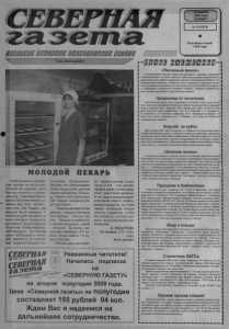МОЛОДОЙ ПЕКАРЬ Хлебопекарное мастерство похоже на искусство, которое не каждому дано быстро постичь в совершенстве. Светлана Викторовна Соболева начала узнавать азы этой профессии в пос. Коб. Кордон, где раньше была пекарня. А теперь ее рабочее место в мини-пекарне Северного дочернего акционерного общества «Новосибирскх- лебопродукт». Коллектив здесь небольшой и молодой, вместе с С. В. Соболевой трудится Наталья Николаевна Бобровская. Вдвоем они обеспечивают своей продукцией детские садики райцентра, больницу. Увозят хлеб и булочки в Коб. Кордон, иногда его берут вахтовики. - Тогда мы делаем по три замеса, - говорит Светлана Викторовна, - обычно летом больше потребность в нашей продукции, зимой - меньше. За месяц выпускаем примерно 3-4 тысячи булок хлеба и 1,5 тысячи булочек. Рабочий день начинается самым ранним утром, часов в 5-6. Они делают первый замес, потом предстоит расстойка, выпечка. И по округе распространяется запах самого необходимого продукта на столе наших сограждан. Специалисты стараются, чтобы его качество соответствовало технологическим требованиям. О. ФЕДОРОВА. На снимке: С.В. Соболева. Фото автора. СЕВЕРНАЯ п ( " M» . \ ' { ! я ■гвззз шваая т - ... Уважаемые читатели! Началась подписка на «СЕВЕРНУЮ ГАЗЕТУ» на второе полугодие 2009 года. Цена «Северной газеты» на полугодие составляет 155 рублей 04 коп. Ждем Вас и надеемся на дальнейшее сотрудничество. «Песенный венок» В Новосибирске прошел областной фестиваль с красивым названием «Песенный венок». На него съехались работники культуры, вокально-инструментальные ансамбли из двадцати районов Новосибирской области. Номинаций было несколько, прозвучало много прекрасных лирических песен. Свои способности показали участники фольклорного ансамбля из Северного «Добродея» и вокального ансамбля «Лирика». Северяне привезли домой хорошее настроение и два Диплома лауреата. Читателям от читателей Библиотечный фонд села Новотроицк составляет около семи тысяч книг самой разнообразной литературы. Жители с удовольствием приходят сюда в надежде взять хорошую книгу. Однако есть такие читатели, которые сами несут книги в библиотеку. Это А. В. Туболева, Т. П. Изюрова, Е. В. Ковалева, Л. В. Клименко. Например, В. В. Кочерешко подарила 15 книг, в том числе и журналы, а Н. Н. Павлова - 30, к тому же множество периодических изданий. Борьба за кубок Две команды КВН «Дети Косяково» из Северного и «Семь часов езды» из Верх-Красноярки сошлись в борьбе за кубок на сцене КДЦ. Объектами юношеских шуток стали учеба и развлечения. Коснулись темы ЕГЭ. Шуток было много, больше всего зрители аплодировали тем, в которых отражалась наша повседневность. Жюри присудило первое место команде «Семь часов езды», и ученики из Верх-Красноярки увезли домой награду. «Зеленая волна» В районном конкурсе «Зеленая волна» участвовали ребята из восьми образовательных учреждений. В нескольких номинациях ученики померились силами на знание правил дорожного движения. Для начала на суд жюри были представлены видеоролики на темы «Вышел школьник на дорогу. », «Уважаемые родители, стать примером не хотите ли?». А на последнем конкурсном этапе каждая команда показывала свою сценку на тему «Водитель и пешеход, давайте жить дружно!». Победителями стали воспитанники Дома детского творчества. Они примут участие в зональном этапе, который сост