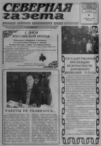 с 9 июля 2009 года ЧЕТВЕРГ № 28 (8290) I I Основана в июне 1935 года С праздником! с ДНЕМ РОССИЙСКОЙ ПОЧТЫ! Уважаемые сотрудники и ветераны почтовой связи Северного района! Поздравляю вас с Днем Российской почты! Благодарю вас за ответственный и нелегкий труд и за ваше добросовестное отношение к своим обязанностям. Желаю вам и вашим близким здоровья, благополучия, успехов во всех делах, семейного счастья и прекрасного настроения! Пусть каждый день ваш будет светлым, Пусть ваше сердце будет щедрым, От всей души желаю счастья, В работе - радостных побед, Пусть обойдут вас все ненастья, Как будто их в природе нет! Руководитель Северного участка Куйбышевского почтамта Р. X. РАБОТЫ НЕ УБАВИЛОСЬ . . . В нынешний век компьютерных технологий и мобильной связи письма и газеты для отдельных людей отошли на второй план. Всему этому нашлась замена в виде электронной почты, мобильного телефона и так далее. Но и, тем не менее, многие до сих пор остаются верны печатной прессе. Да и работы на сельской почте не убавилось. Например, заведующая почтовым отделением в поселке Коб-Кордон В. П. Иваницкая одновременно в течение рабочего дня должна выполнить ряд обязанностей по приему оплаты за электроэнергию и переговоры. Также многие клиенты часто заказывают изготовление фотографий через почту, плюс ко всему действует магазин в здании почтамта, и все это, ^----------------------------------------------------------------- конечно же, требует внимания и ответственности. И так изо дня в день более тридцати лет Валентина Петровна терпеливо выполняет привычную и непривычную для нее работу. Трудностей и проблем, по словам В. П. Иваницкой, предостаточно и их можно насчитать много. Но, несмотря на некоторые сложности в работе, да к тому же, обладая добрым и уравновешенным характером, она прекрасно общается со всеми своими клиентами. И, надо отметить, что это взаимно. Валентину Петровну Иваницкую уважает жители поселка, потому что в такое отделение почтовой связи всегда хочется приходить. Ведь не зря же появилось изречение о том, что не место красит человека... |ГОСУДАРСТВЕННОИ| ИНСПЕКЦИИ БЕЗОПАСНОСТИ ДОРОЖНОГО "ДВИЖЕНИЯ - 73 ГОДА Государственная инспекция безопасности дорожного движения перелистнула очередную страницу своей истории. В этом году ГИБДД исполняется 73 года. Сделано немало, но еще больше предстоит сделать. На протяжении многих лет ГАИ выполняет ведущую роль в обеспечении безопасности на дорогах. Принимаемые отделением ГИБДД меры по предупреждению дорожно-транспортных происшествий, с годами дает ощутимые результаты. Отрадно осознавать, что, в первую очередь, это связано с сохранением жизни и здоровья людей. На сегодняшний день в отделении ГИБДД ОВД по Северному району служит 7 человек. Все они с честью выполняют свой долг - по обеспечению безопасности дорожного движения. Хотелось бы поздравить всех сотрудников отделения ГИБДД и всех, кто, так или иначе, связан с этой профессией. Вы повседневно находитесь на переднем крае борьбы с преступностью, успешно решаете другие милицейские задачи, защищая жизнь и здоровье граждан, нередко ценой собственной жизни. Желаю вам успехов в профессиональной деятельности, крепкого здоровья, счастья и благополучия вам и вашим семьям! Поменьше аварий на дорогах и на вашем жизненном пути. Начальник ОГИБДД ОВД по Северному району ст. лейтенант милиции Е.Н. ДОВЫДЕ